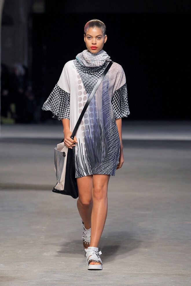 Com uma forte influência desportiva, a coleção de Buchinho assenta em ilustrações e grafismos, onde os círculos, as manchas de cor as silhuetas riscadas sugerem padrões decorativos dos anos 60 e 70.