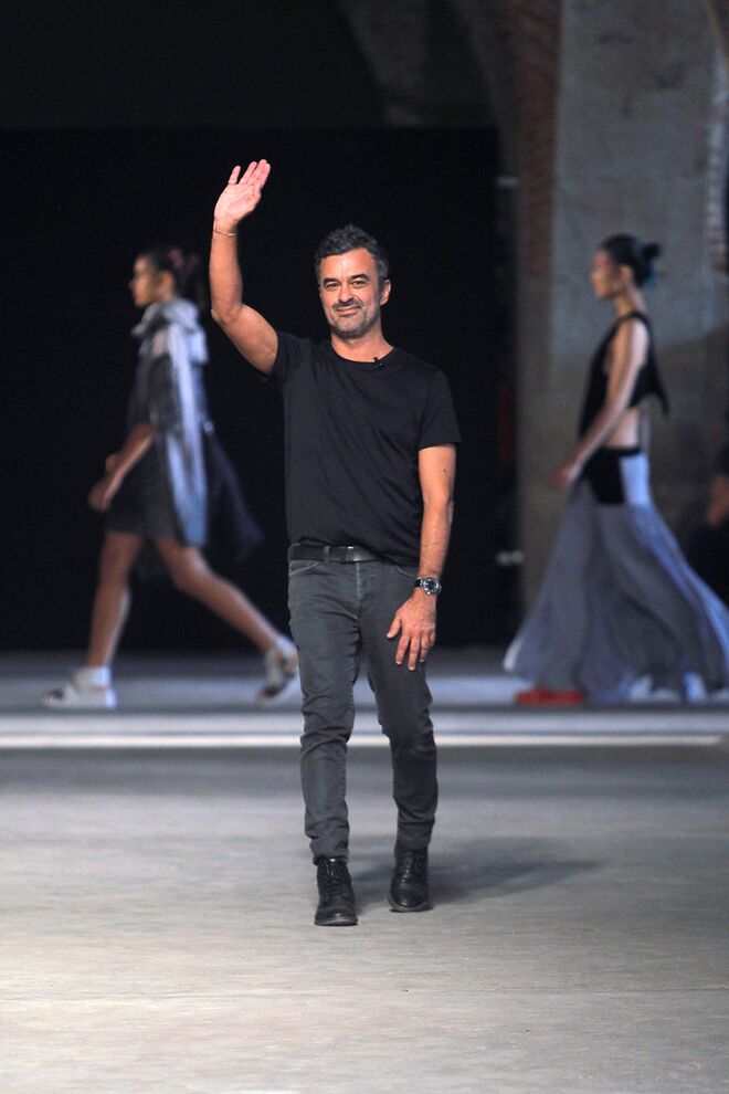 O designer português assinala os dez anos da marca que assina com vestidos hiperfemininos em cetim e tule, criados para as mulheres que mais o têm inspirado. Na passerelle vimos volume, brilho e tudo o que queremos usar à noite na próxima primavera.