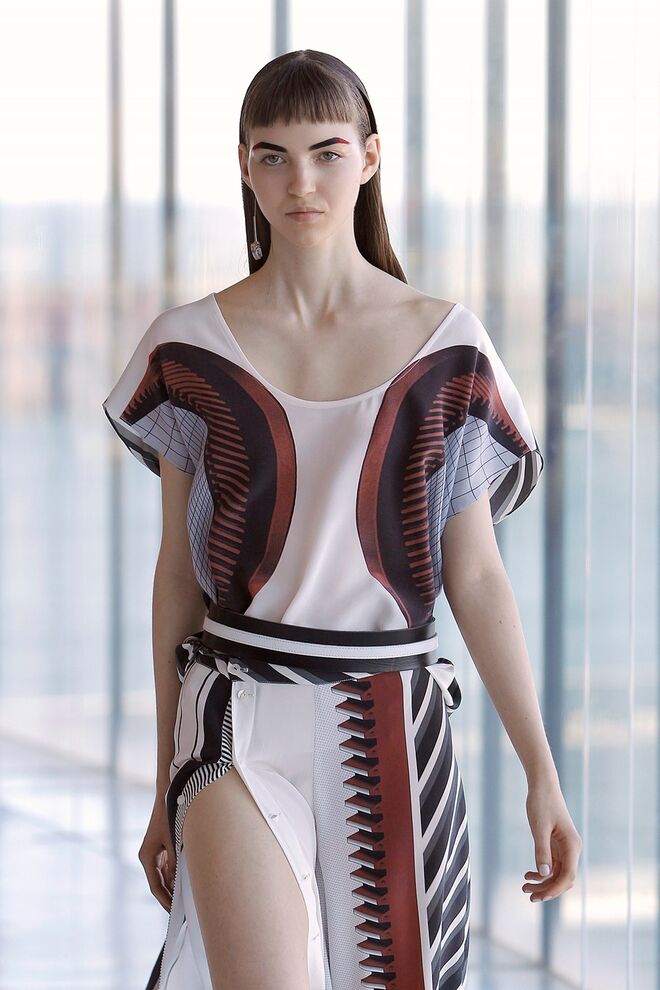 Os grafismos lúdicos acompanham e contornam a silhueta feminina numa proposta sport sexy para a próxima estação quente, em que o preto e o branco dominam a coleção, sendo depois combinados com cores primárias, como o vermelho, roxo e amarelo e com detalhes em tons metálicos, como cobre e níquel.