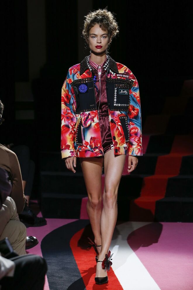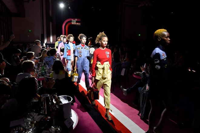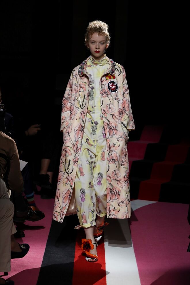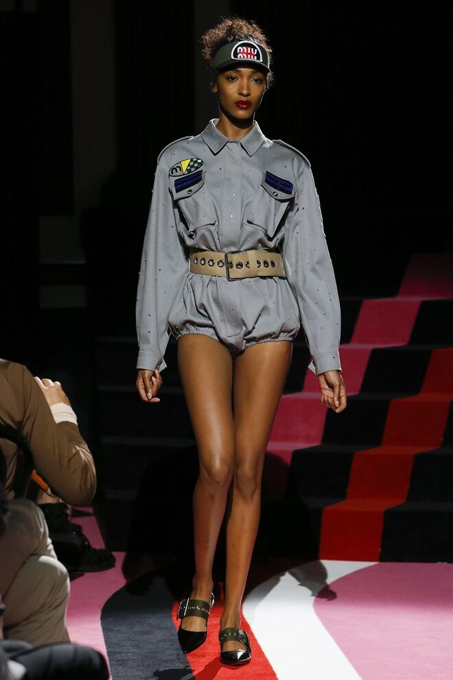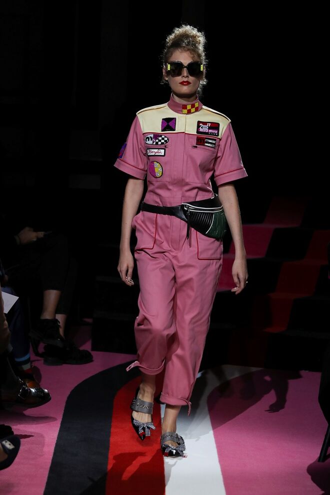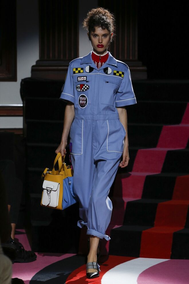 Elle Fanning e Milla Jovovich estiveram entre as convidadas de honra de Miuccia Prada, na apresentação da nova coleção, cujo desfile aproveitou o buzz da Semana de Alta-Costura de Paris. Kendall Jenner, Bella Hadid, Joan Smalls e Jourdan Dunn foram algumas das modelos que desfilaram. Os macacões estiveram em grande destaque, bem como os padrões e os bonés de basebol, um dos acessórios-chave do desfile.