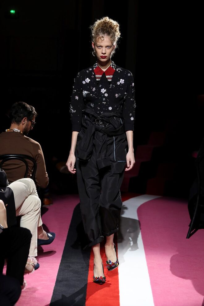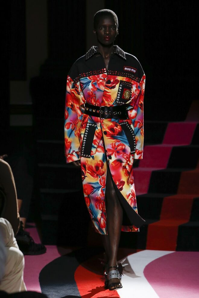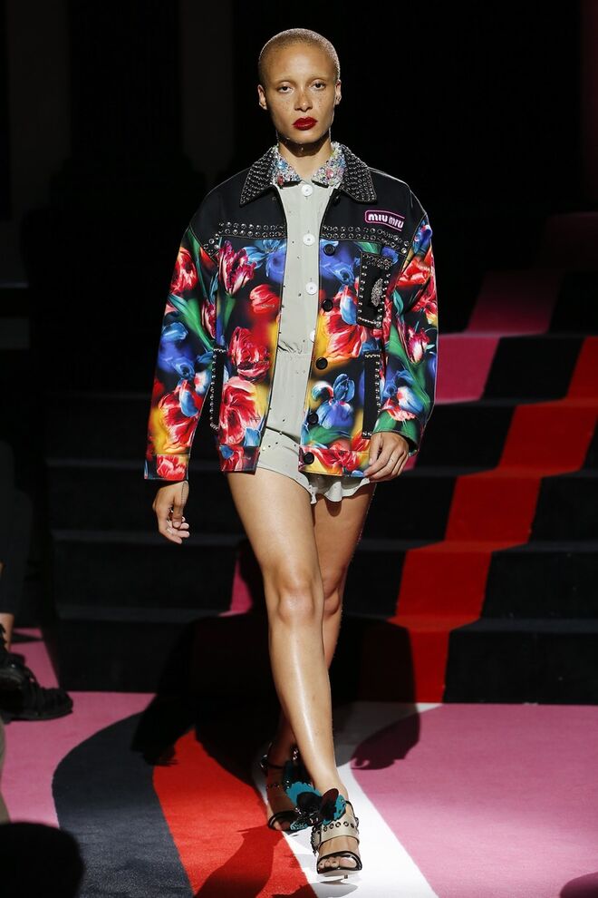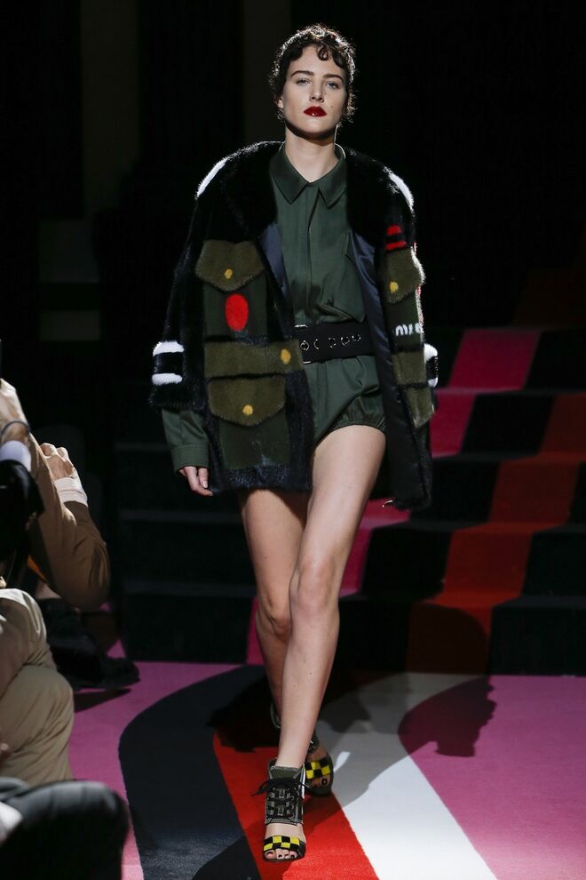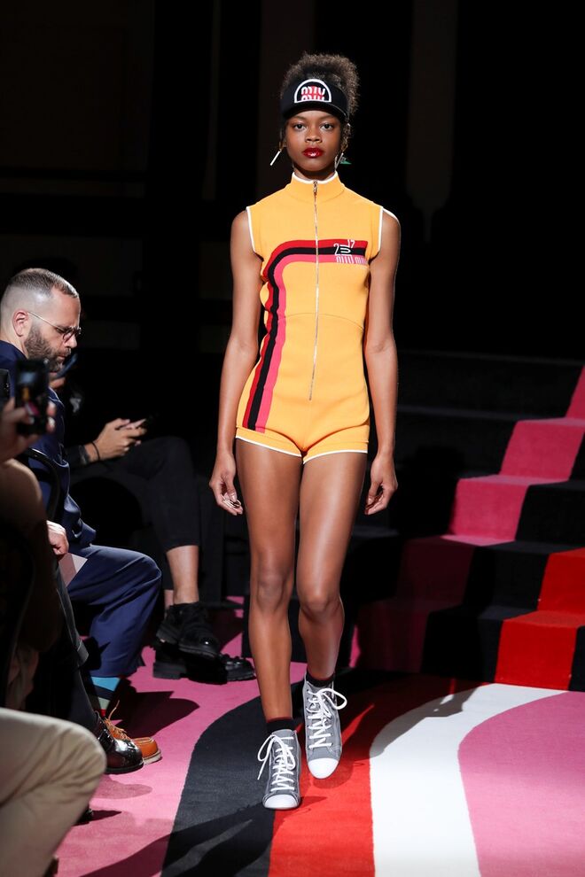 Elle Fanning e Milla Jovovich estiveram entre as convidadas de honra de Miuccia Prada, na apresentação da nova coleção, cujo desfile aproveitou o buzz da Semana de Alta-Costura de Paris. Kendall Jenner, Bella Hadid, Joan Smalls e Jourdan Dunn foram algumas das modelos que desfilaram. Os macacões estiveram em grande destaque, bem como os padrões e os bonés de basebol, um dos acessórios-chave do desfile.