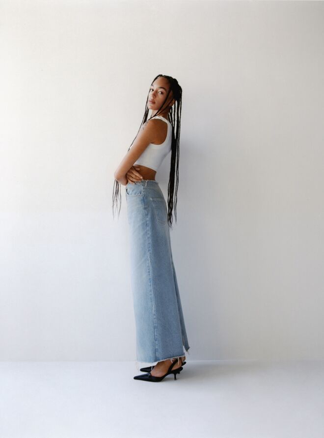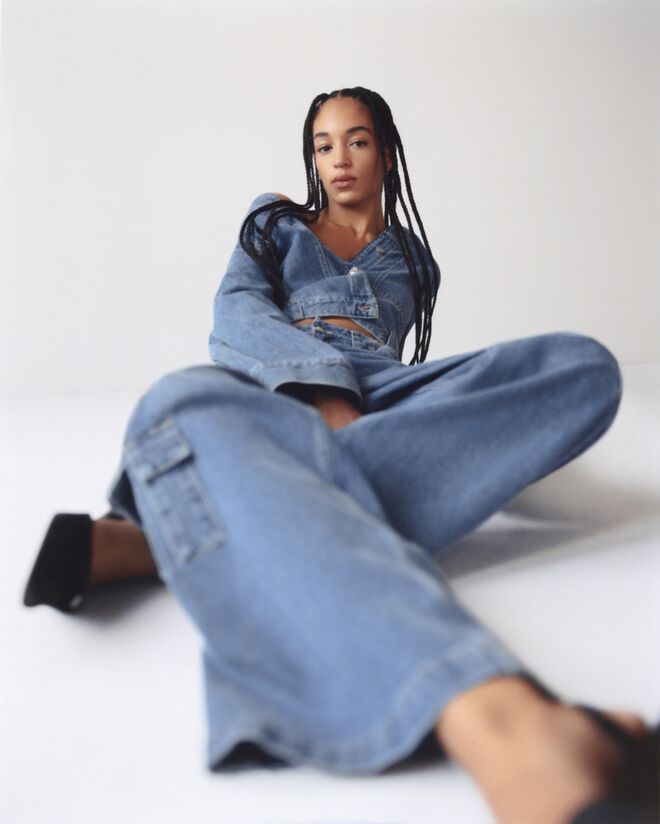 A nova coleção, em formato de cápsula, aposta em peças com efeito de lavagens desgastadas (como calças, saias, macacões, coletes e blusões cropped) nas cores índigo e preto, que apresentam cortes atuais com inspiração nos inícios dos anos 2000. Voltamos à cintura baixa, às silhuetas mais largas e ao efeito "desfiado". Adianta Andrés: "No mínimo, 20% do algodão utilizado é de origem reciclada e sem etiquetas. Além disso, para se conseguir um mínimo de resíduos no processo de desenvolvimento do produto, as peças foram criadas com tecnologia de desenho digital 3D."