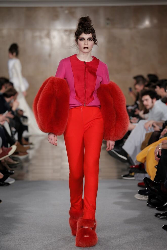 Quanto aos materiais, há uma predominância da lã bordada à mão, reforçada com varetas e conjugada com pelo de coelho e carneiro do Tibete, cujo pelo é penteado e esticado manualmente, o que influencia a volumetria das peças, criando novas silhuetas. O uso de tule e folhos influenciam igualmente a volumetria das peças. O cetim duplo é trabalhado de forma a criar um visual forte e uma textura na coleção.