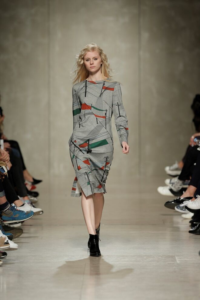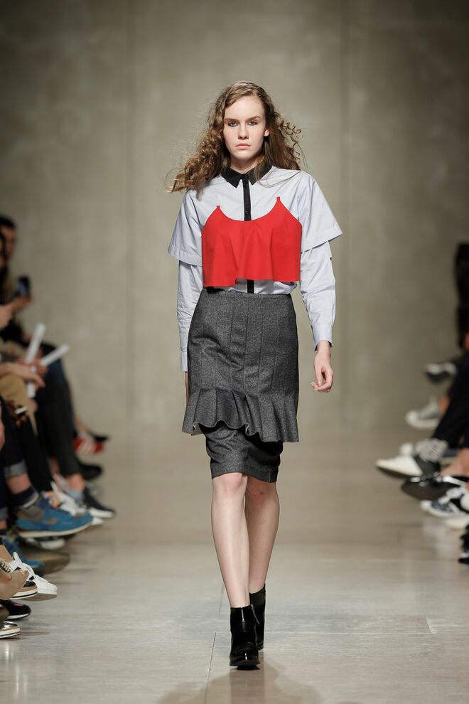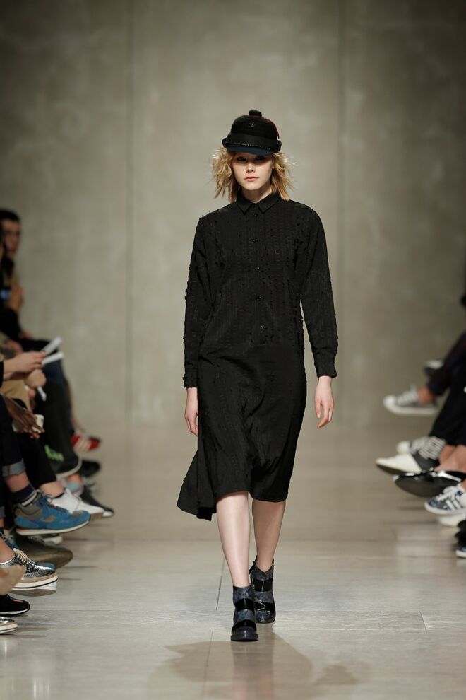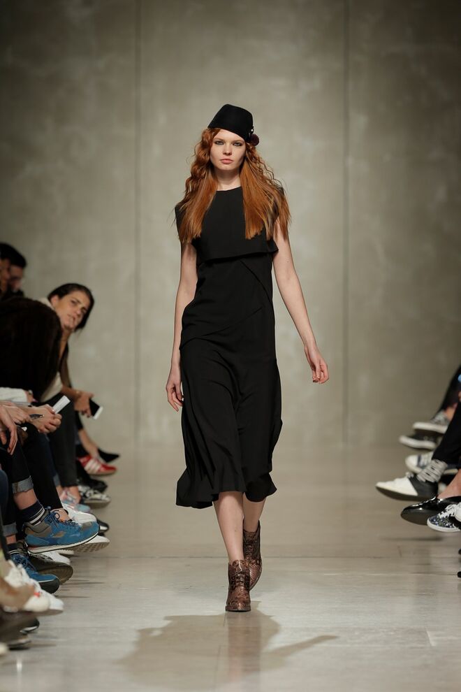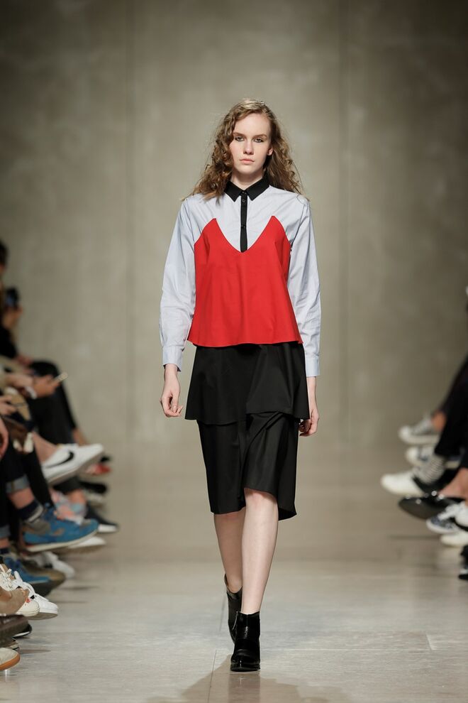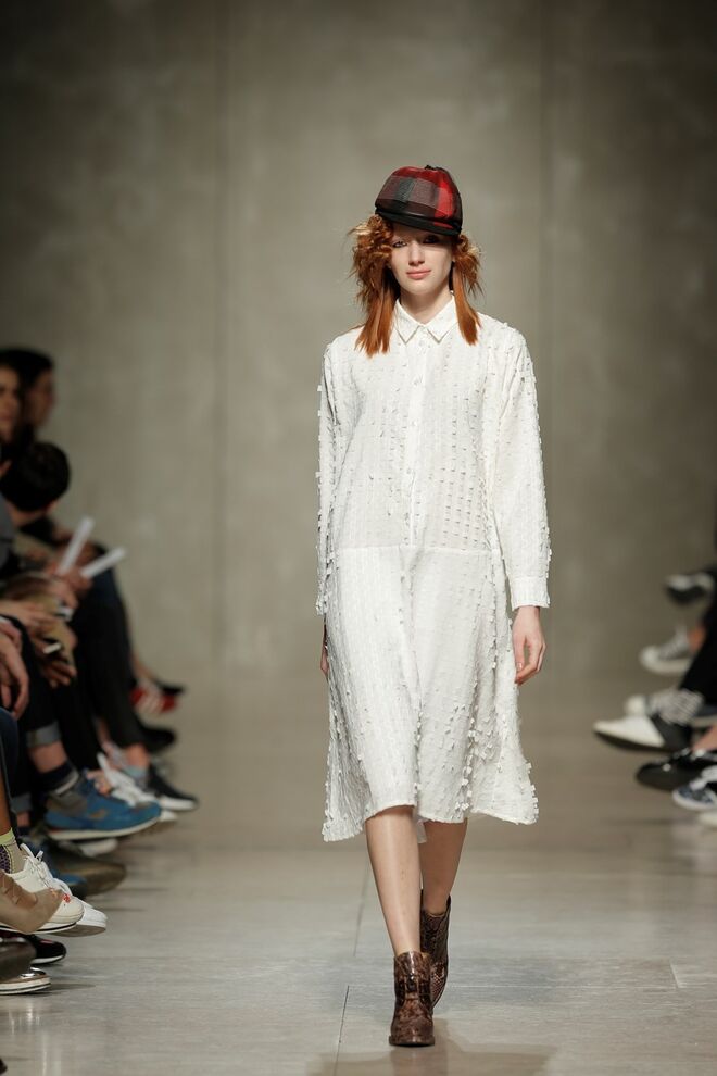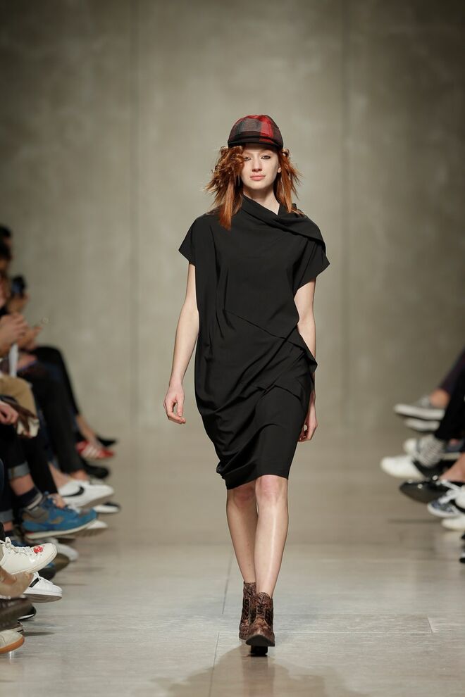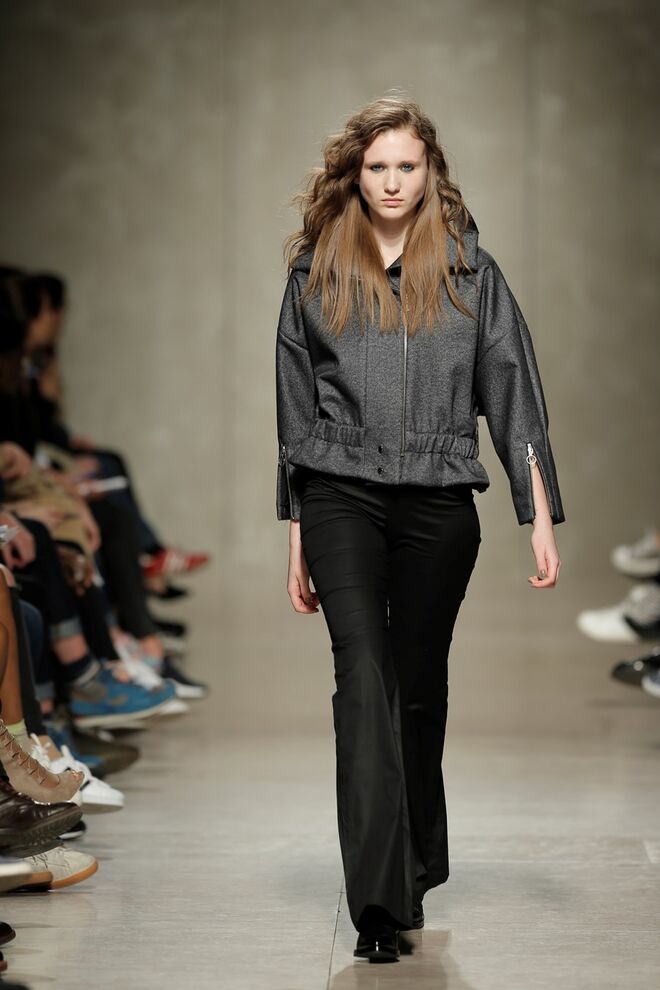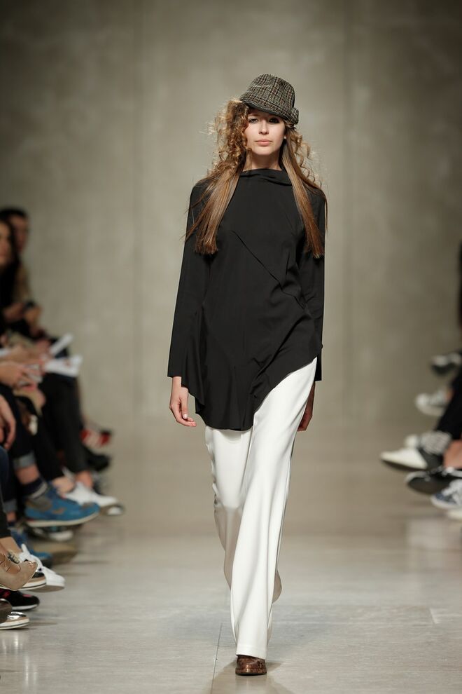Algumas ideias da coleção de verão 2016 são revisitadas e aplicadas nesta coleção, como os godés que saem de pregas, criando volumes simétricos desta vez usados também nos casacos e sweats.