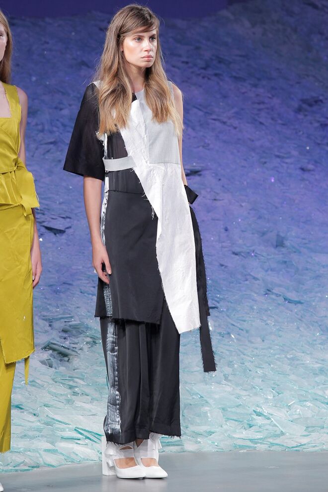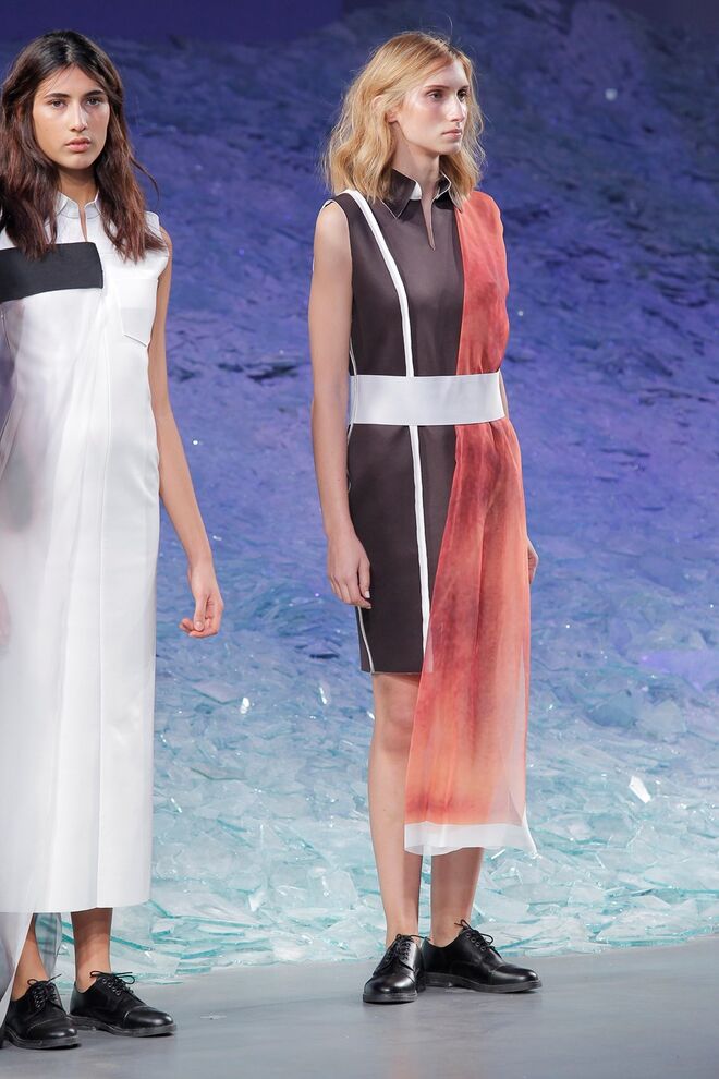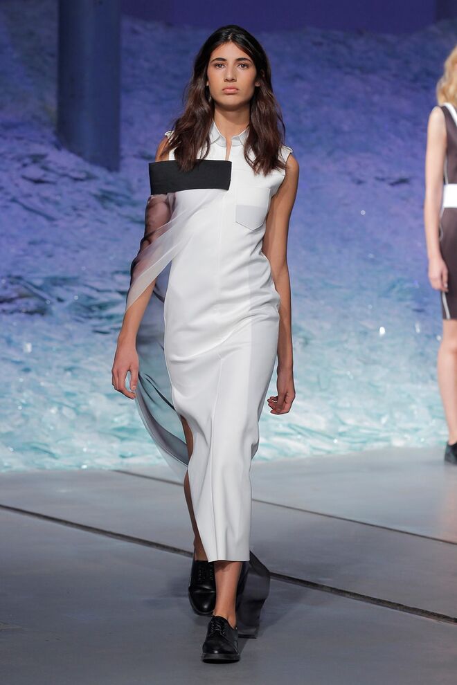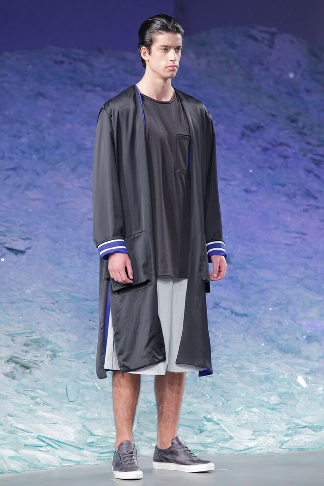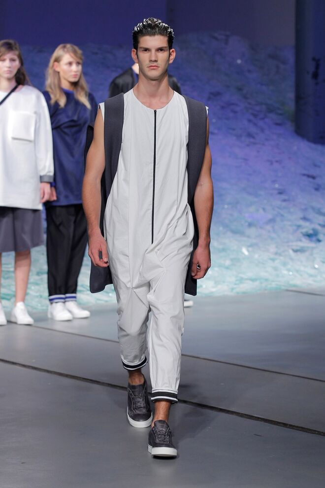 ÁREA 8 – SÉRGIO SOUSA "DODECAPHONISM" A música minimal instrumental nasce do experimentalismo, do processo onde as repetições não são percetíveis e do serialismo dodecafónico, ou seja um método de composição baseado numa escala de doze tons cromáticos criada por Schoenberg. Daqui surge Dodecaphonism, uma coleção unisexo que adapta o conceito de Schoenberg através da sobreposição de layers em tons neutros, e de uma construção retangular, que por vezes se torna impercetível com a fluidez de alguns materiais nas peças e nos pormenores.