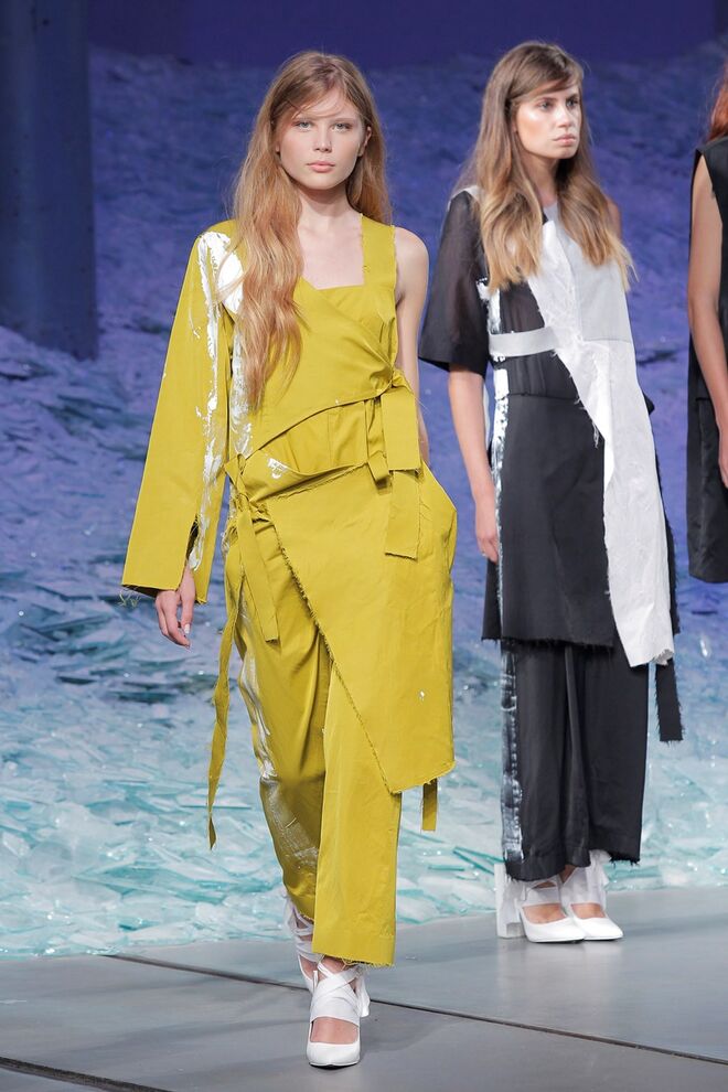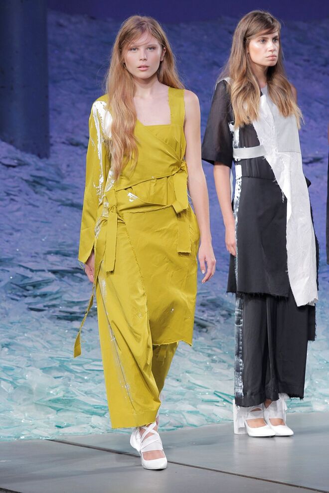 JOANA VIEIRA "PROTOTYPE" O protótipo de coleção. O conceito aplicado desenvolve temas que são o protótipo de uma futura geração. O protótipo pressupõe a individualidade das peças de vestuário e, posteriormente, da coleção. O próprio autor é o protótipo de criador numa incessante busca de significados. Os seus erros são a maior oportunidade de descoberta, a aprendizagem retirada é limitada. Somos nós e as coisas. A utilização de lavagens resulta de imediato numa destruição única e irrepetível, uma variação permanente de resultados. O mesmo espírito de singularidade é mantido na criação do estampado manual, não se repete exatamente - depende do ângulo, foça e densidade aplicados.