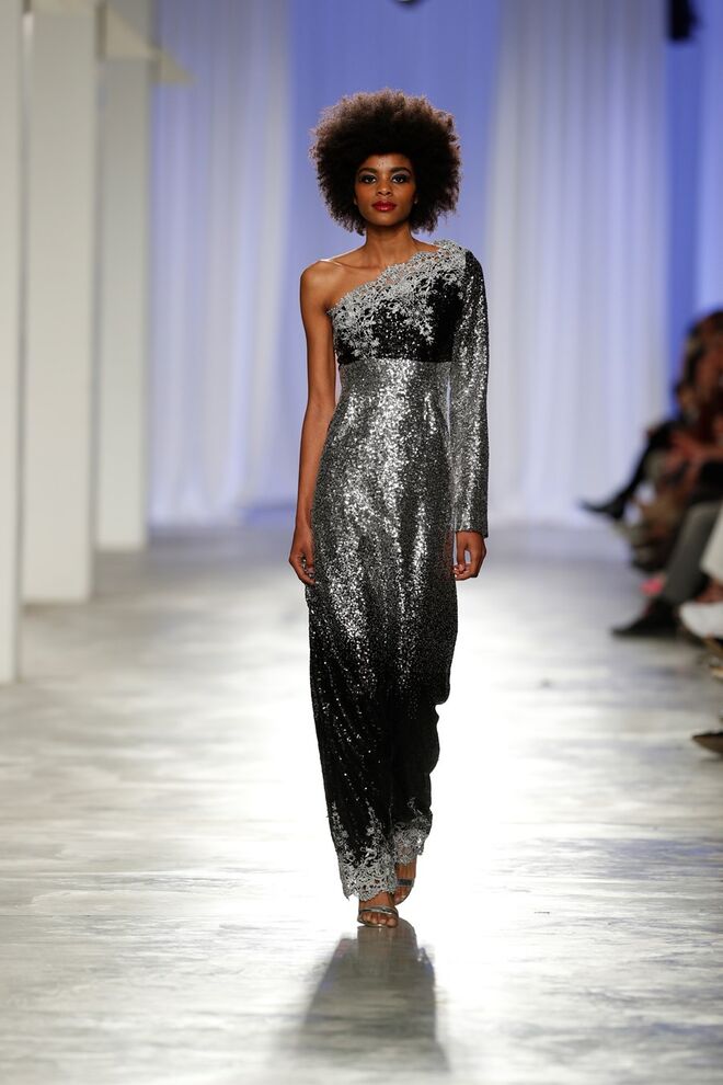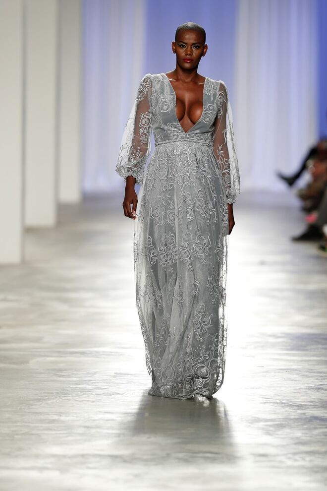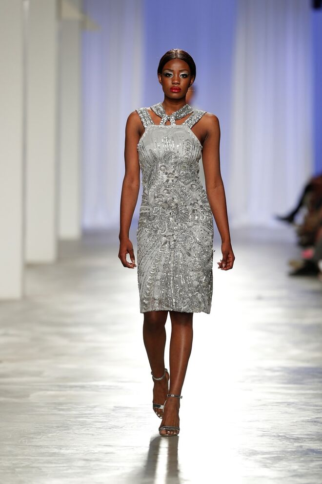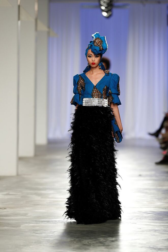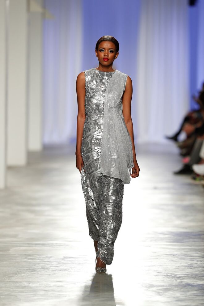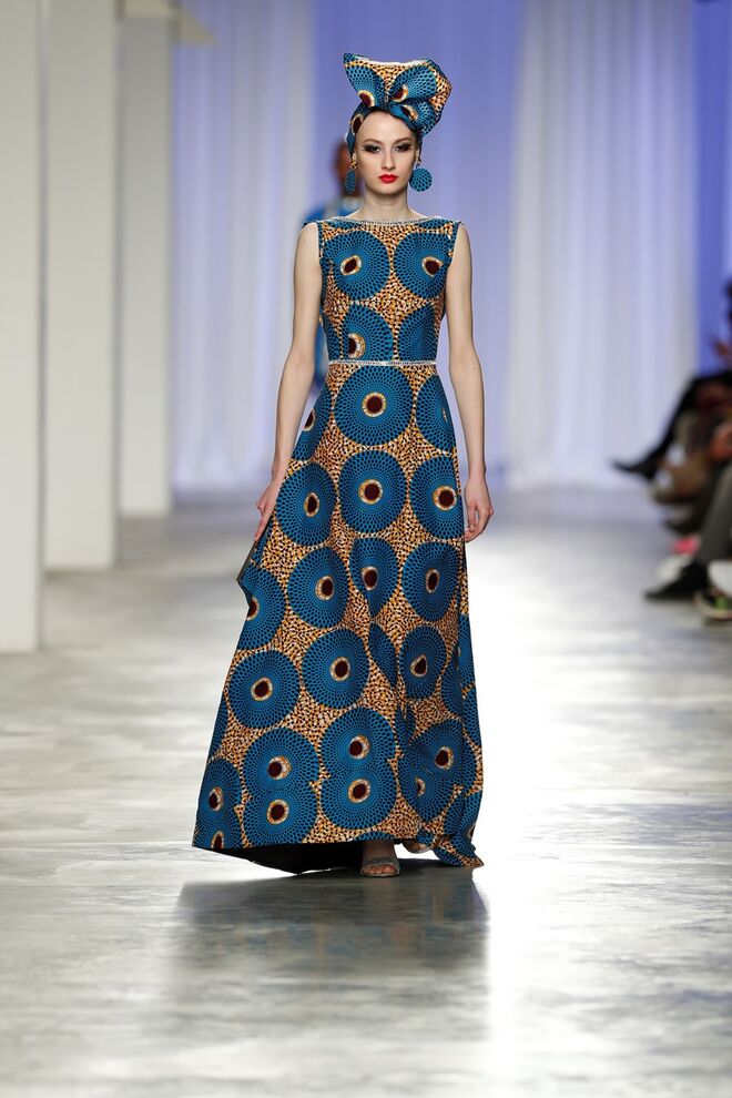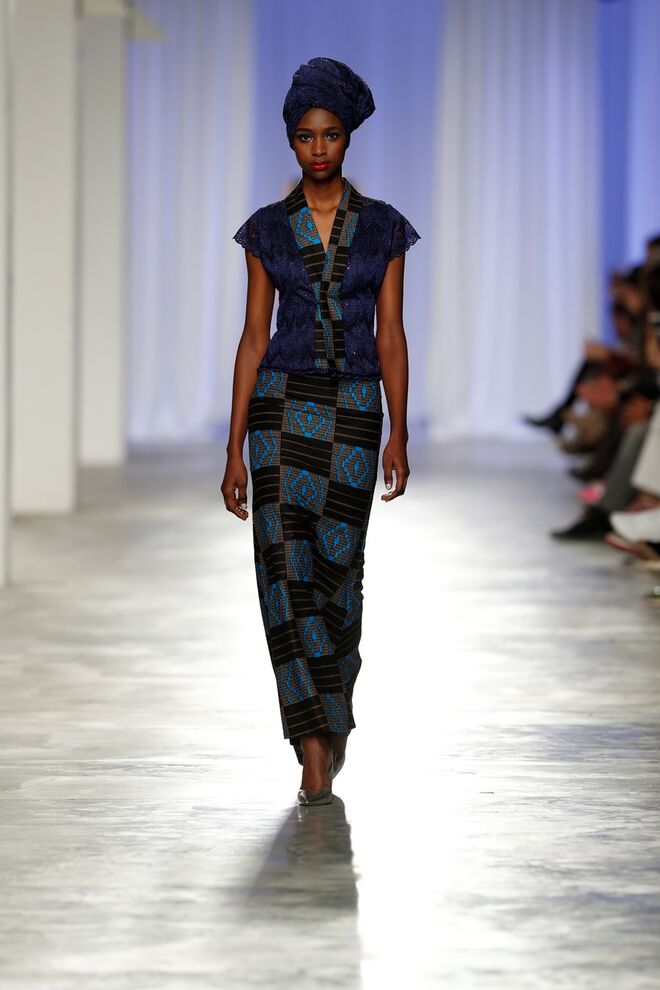 Os materiais passam principalmente pelas sedas, organzas, lantejoulas e rendas, numa clássica terminação de tecidos africanos.