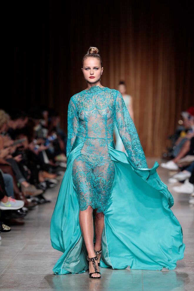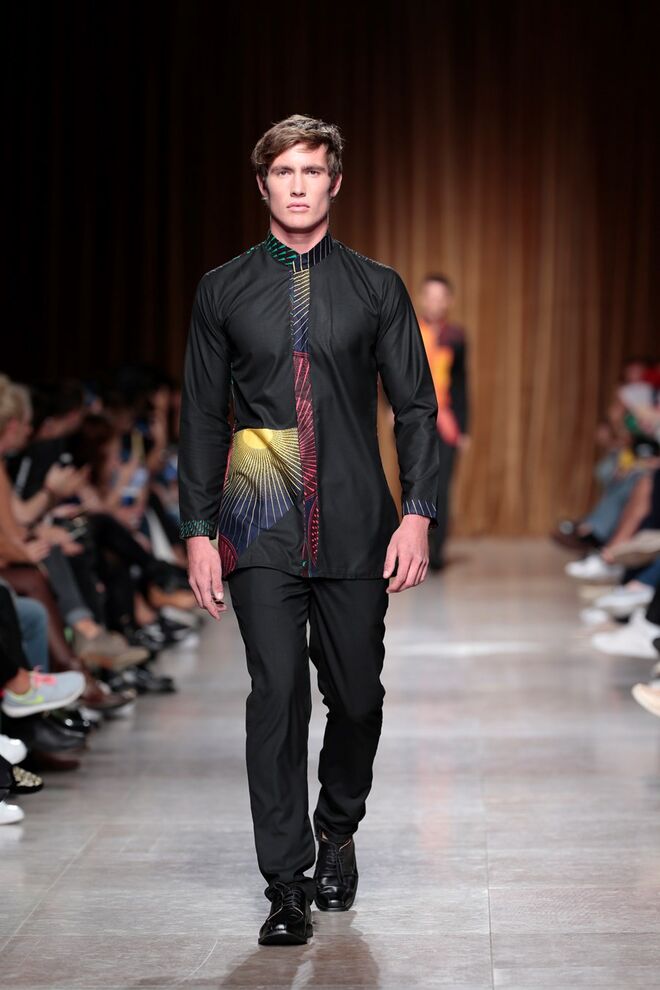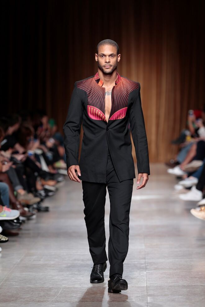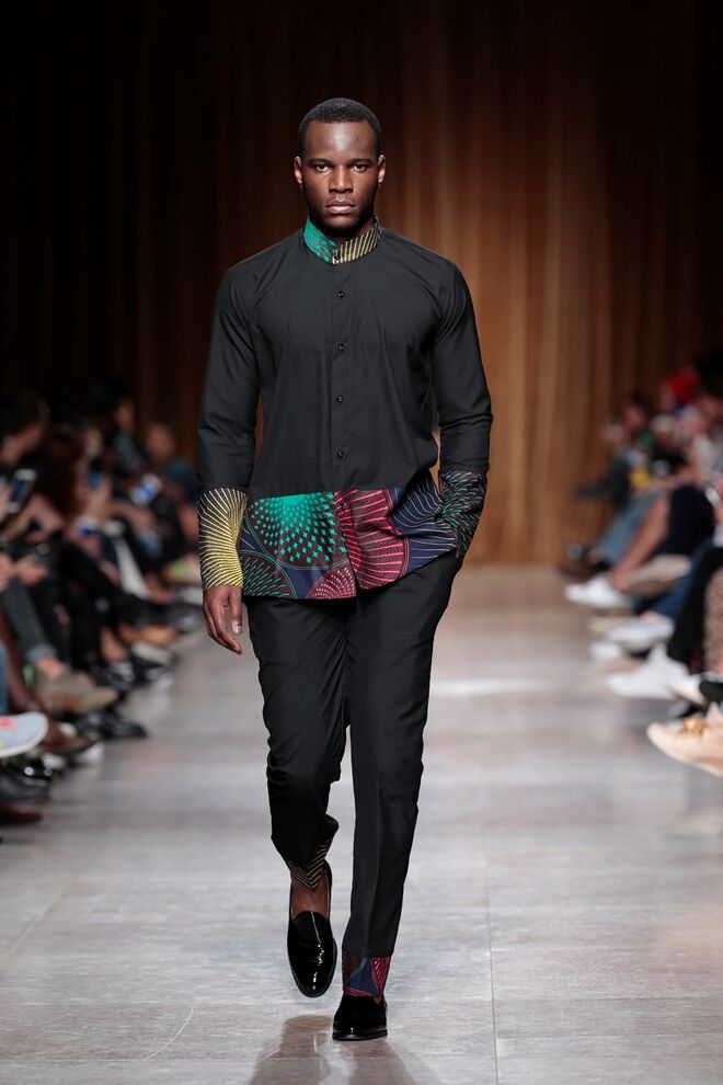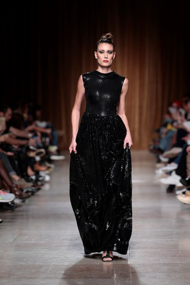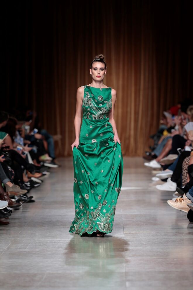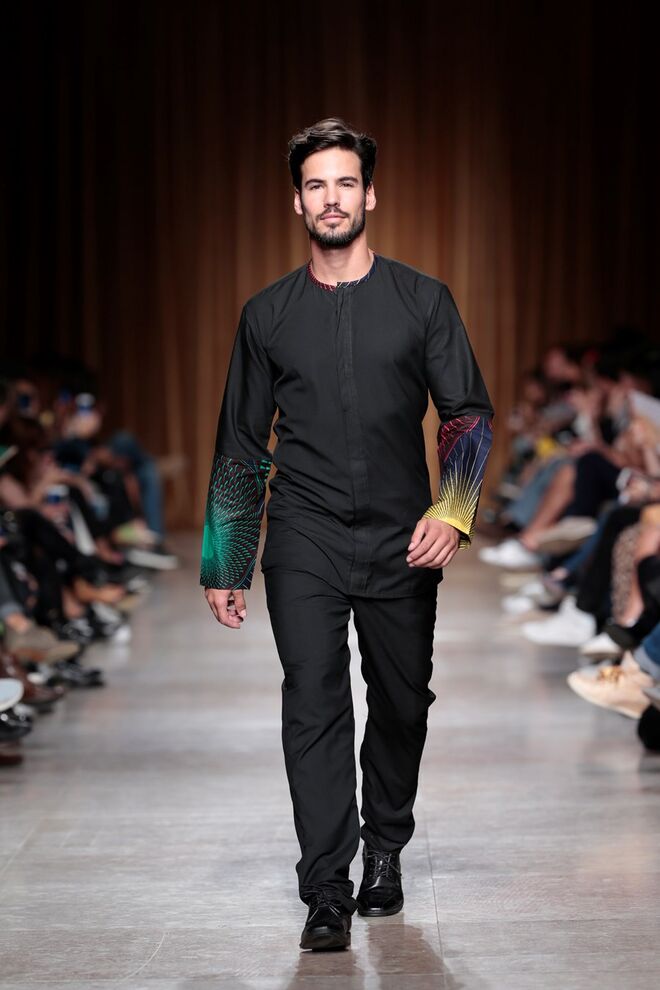 "Almas de África" é o nome da coleção apresentada por Nadir Tati, um dos maiores nomes da Alta Costura africana. A criadora apostou em linhas simples e em fusões de tecidos e texturas para vestidos pretos, vermelhos e dourados com bordados e pedras adicionadas à mão. Rendas, organzas, sedas e o tradicional super wax africano completam a coleção.
