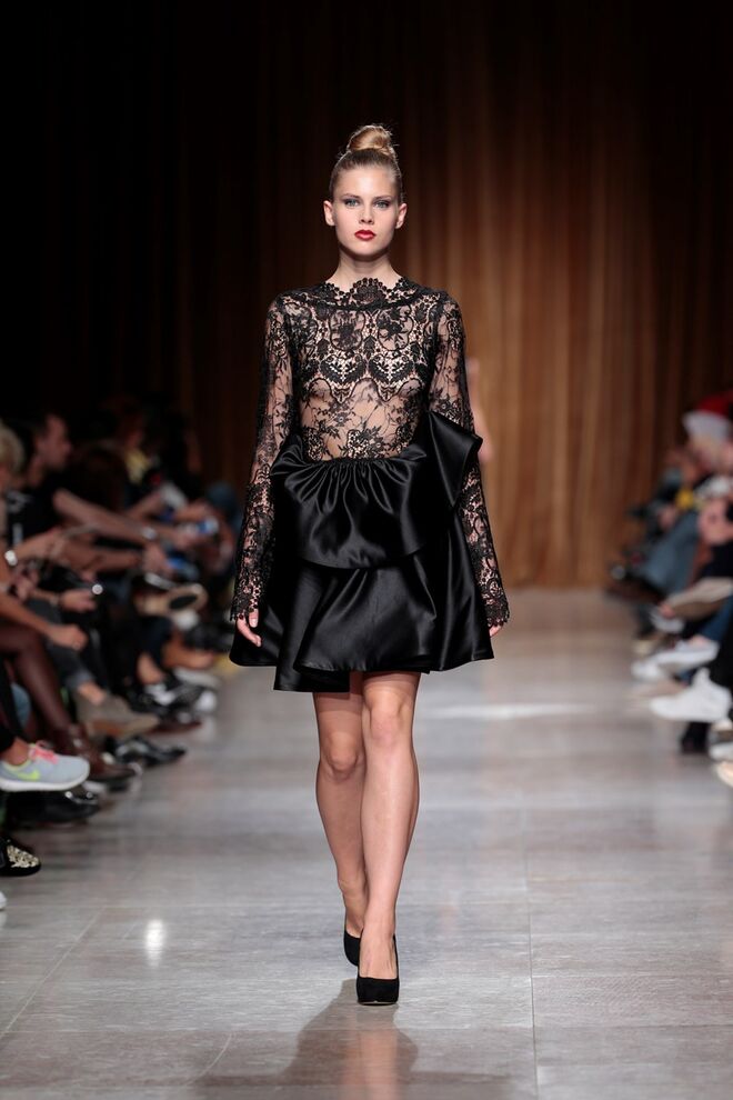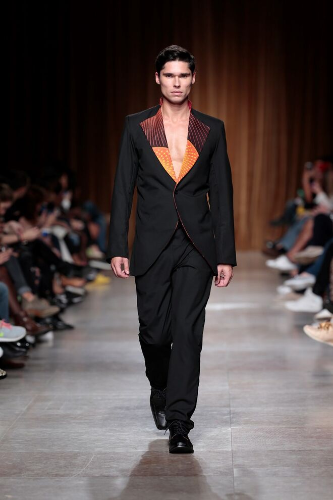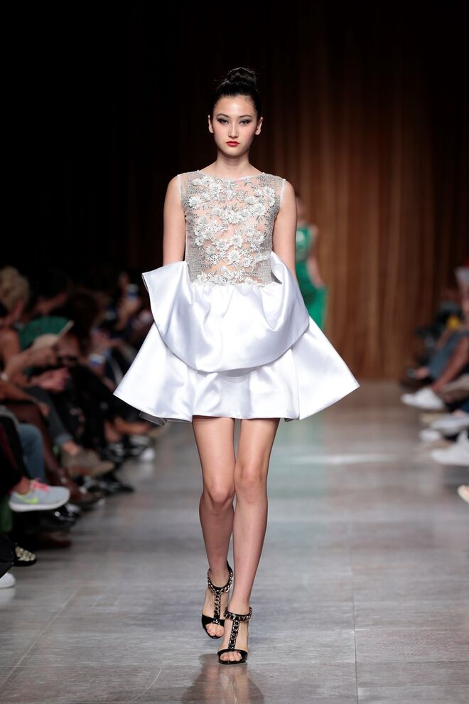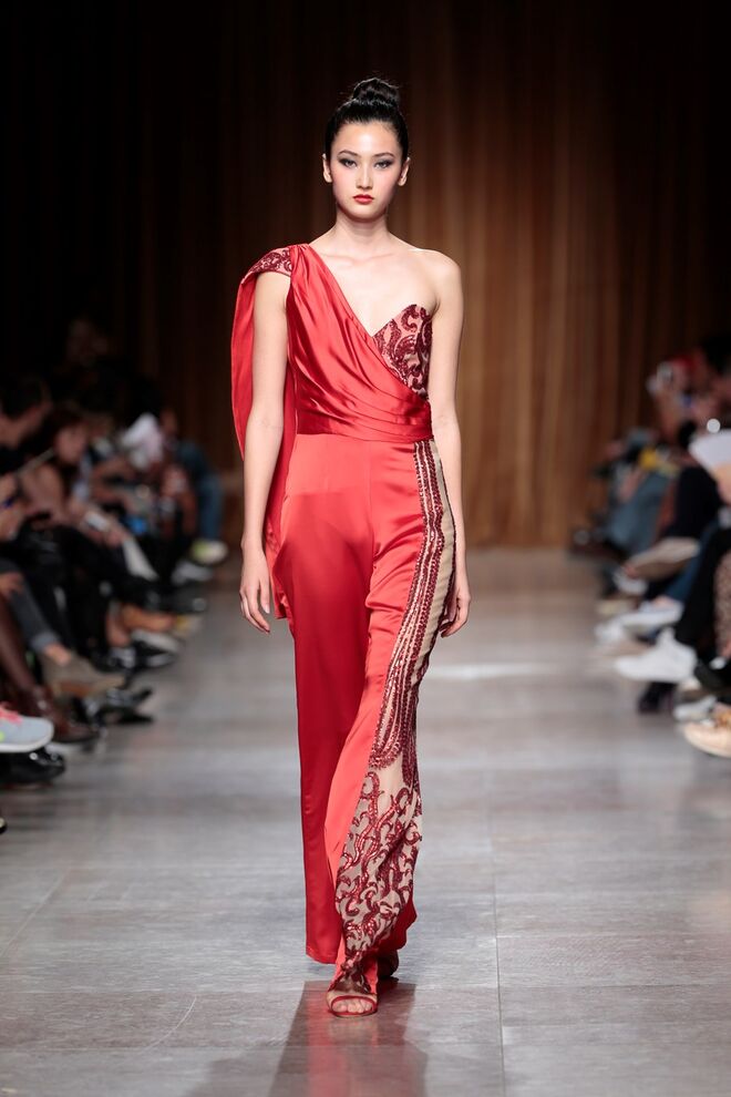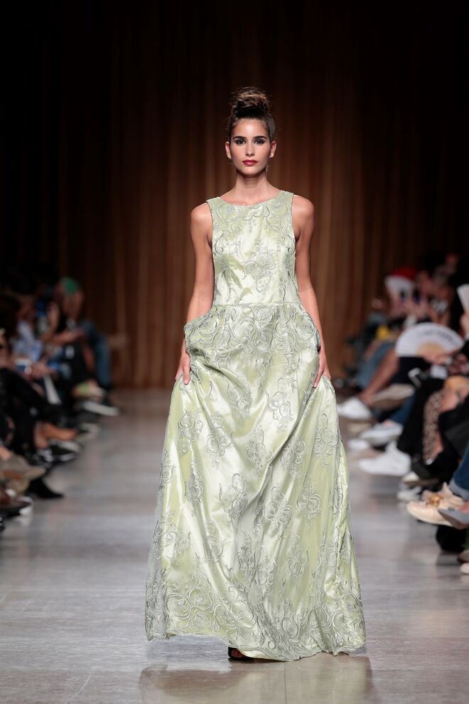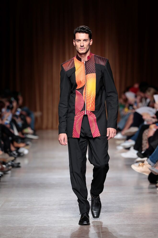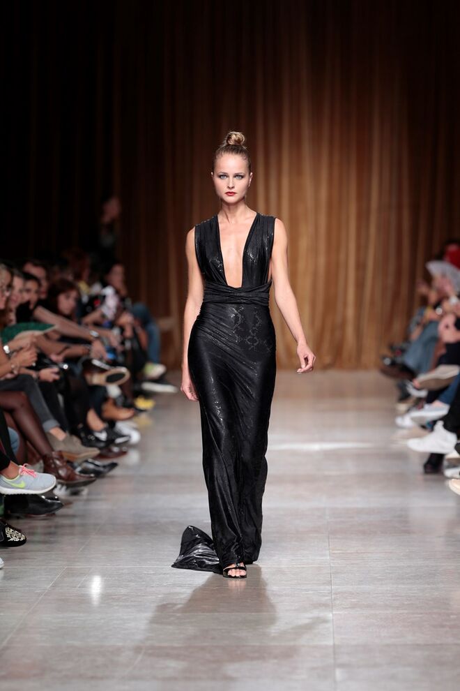 "Almas de África" é o nome da coleção apresentada por Nadir Tati, um dos maiores nomes da Alta Costura africana. A criadora apostou em linhas simples e em fusões de tecidos e texturas para vestidos pretos, vermelhos e dourados com bordados e pedras adicionadas à mão. Rendas, organzas, sedas e o tradicional super wax africano completam a coleção.