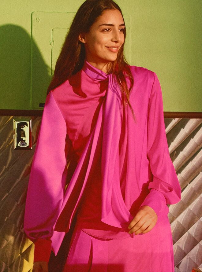 Muitos elementos da equipa da H&M Studio estavam a assistir à série e sentimo-nos particularmente inspirados pelos looks icónicos das personagens femininas. Elas vestem-se com uma certa nostalgia suave: a série passa-se no final dos anos 80 e início dos anos 90, mas cada look tem as suas origens numa estética dos anos 50. Isso resultou numa vontade de fazer uma visão contemporânea de um visual dos anos 50 – algo ultrafeminino, mas com elementos roubados ao guarda-roupa masculino.