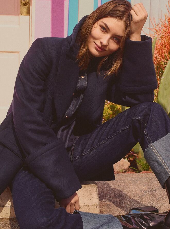 Para a rapariga da H&M Studio, falamos sempre sobre a ideia de "cool feminino" – resultante do choque entre uma aparência superfeminina, mas com numerosos elementos masculinos. O trench coat é um bom exemplo de uma peça que joga dos dois lados: um trench é um item bastante masculino, mas encurtamos as mangas, diminuímos a cintura e aplicámos um leve revestimento de forma a torná-lo mais atual, conseguindo um resultado bem mais feminino.