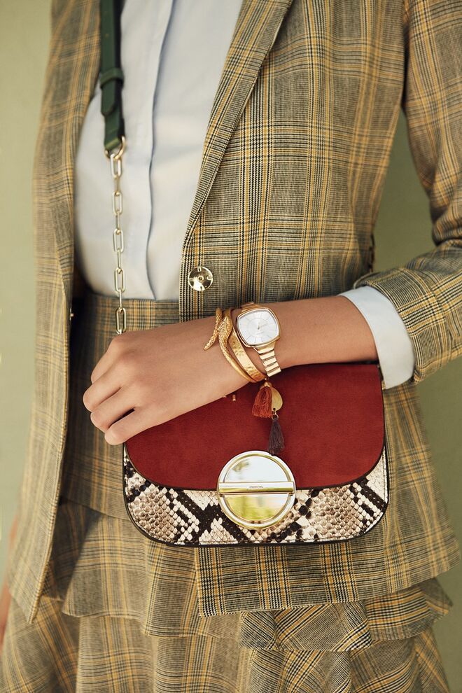 Exposta numa ampla sala transformada em showroom, a coleção divide-se por diferentes inspirações e todas as peças têm espaço para brilhar. Além dos acessórios, a marca continua a apostar na criação de peças de vestuário, mas neste caso as roupas são "os acessórios dos acessórios". Os estampados réptil e xadrez campestre destacam-se nos cabides, enquanto ao fundo uma linha mais festiva reúne roupas e acessórios cheios de brilhos. Uma outra sala, quase como um cofre, está reservada a uma linha de acessórios muito especial, onde as carteiras e a bijutaria gozam de um trabalho criativo feito com metais.