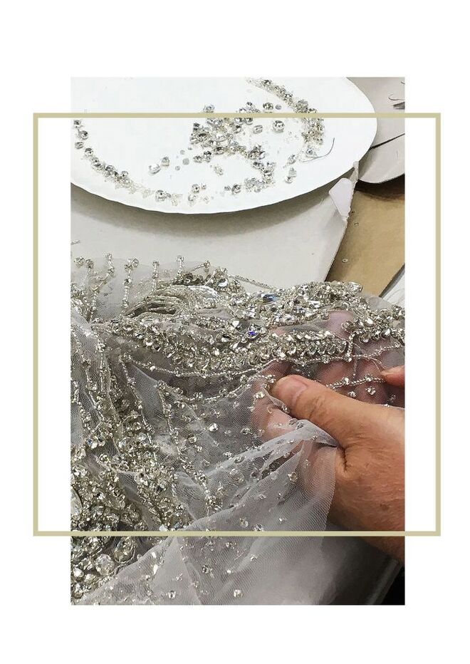 Foram precisas mais de 60 pessoas a trabalhar em todo o processo e cerca de 5 quilos de pedrinhas de cristal para que este vestido se tornasse real.