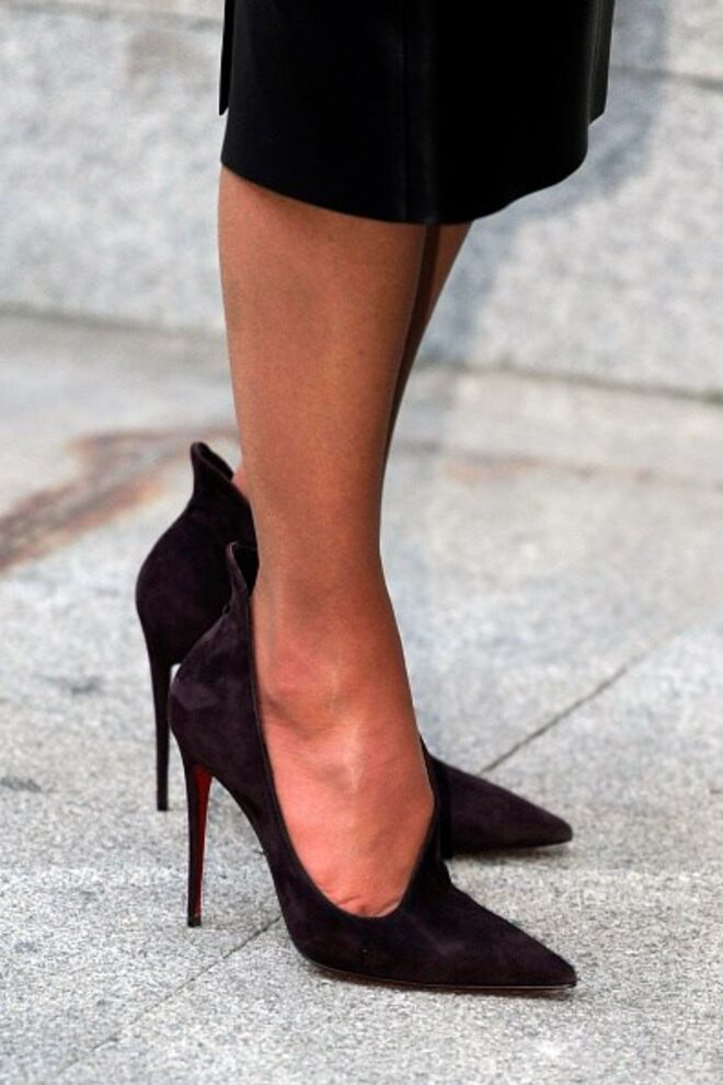 Só durante esta visita a Espanha já usou uns Louboutins pretos, outros em pele de serpente de tom creme, outros da mesma marca mas da linha 'Vampydoly' (outono-inverno 2016), e uns botins abertos Balenciaga.