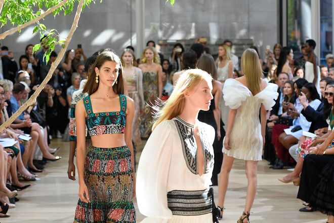 A marca Oscar de la Renta está a passar por um período de transição, uma vez que o designer nomeado pelo próprio de la Renta, Peter Copping, está de saída para ser substituído por Laura Kim e Fernando Garcia. Esta amálgama traduziu-se na passerelle da semana da moda de Nova Iorque, numa coleção muito diversificada.