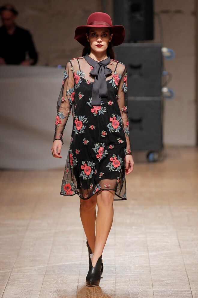 Peças inspiradas no movimento de art nouveau, onde a delicadeza de linhas sinuosas e formas orgânicas são complementadas com a presença de elementos naturais como folhas, flores e libélulas. Pormenores como golas altas, folhos e laços remetem-nos para um clássico luxuoso, longe da fantasia mas com um pequeno vislumbre de opulência. Por outro lado, surgem propostas sedutoras em renda e napa, realçadas com pontos de brilho, peças que revelam o corpo em silhuetas justas, coordenadas com peças relaxadas e descomprometidas, para uma menina-mulher com uma inocência delicada, mas com uma rebeldia contida.