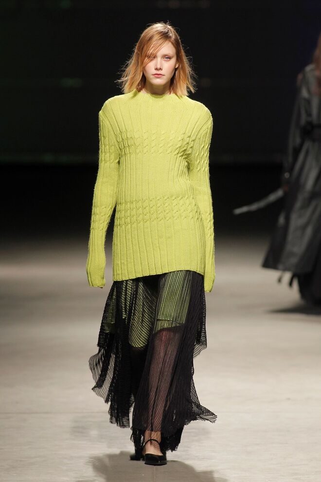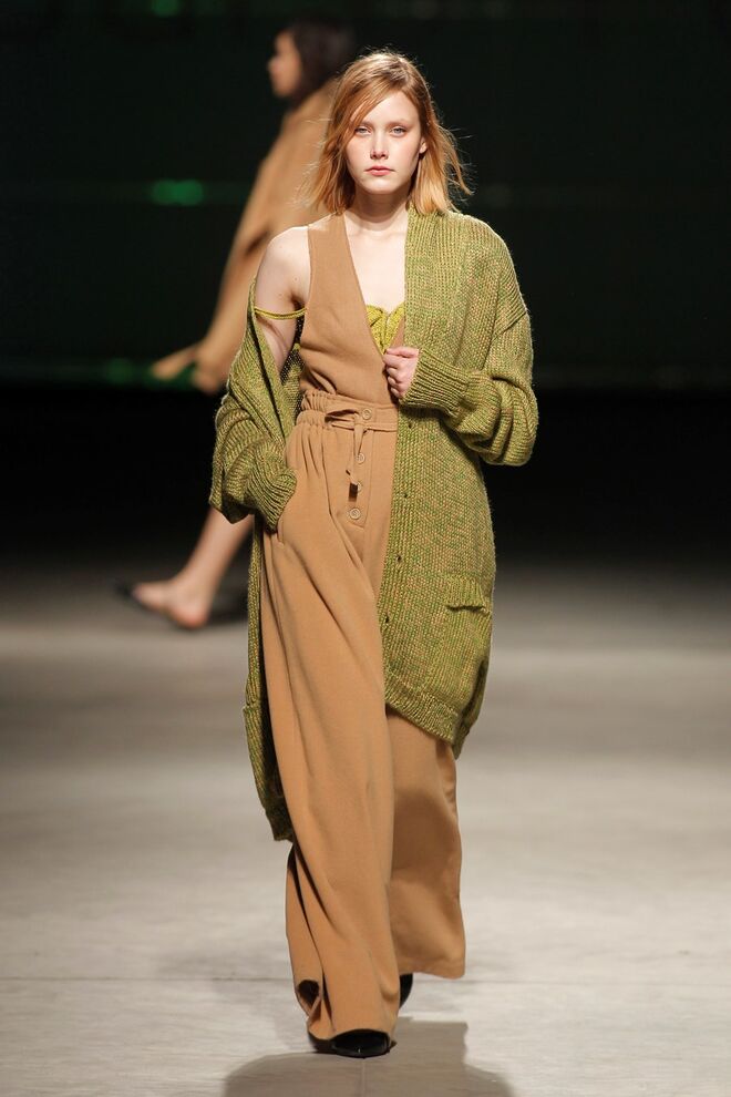 Brutalismo. Desleixo. Proteção urbana. Um manifesto anti-glam. A roupa como casulo. A forma como liberdade do corpo. O corpo como interioridade. Silhuetas agigantadas, volumetrias generosas, cortes assimétricos, sobreposições de peças e bizarrias. Influência do vestuário masculino/ militar nos sobretudos e blusões. Malhas femininas de decotes generosos. Calças largas de linhas sport. Comprimentos exagerados. Materiais de agasalho e confortáveis. Lãs, feltros, acolchoados encerados e gabardines encerados que se conjugam com algodões e linhos rudes. Tricots grossos e jerseys de lã.