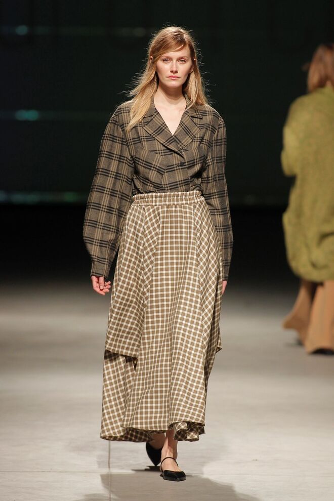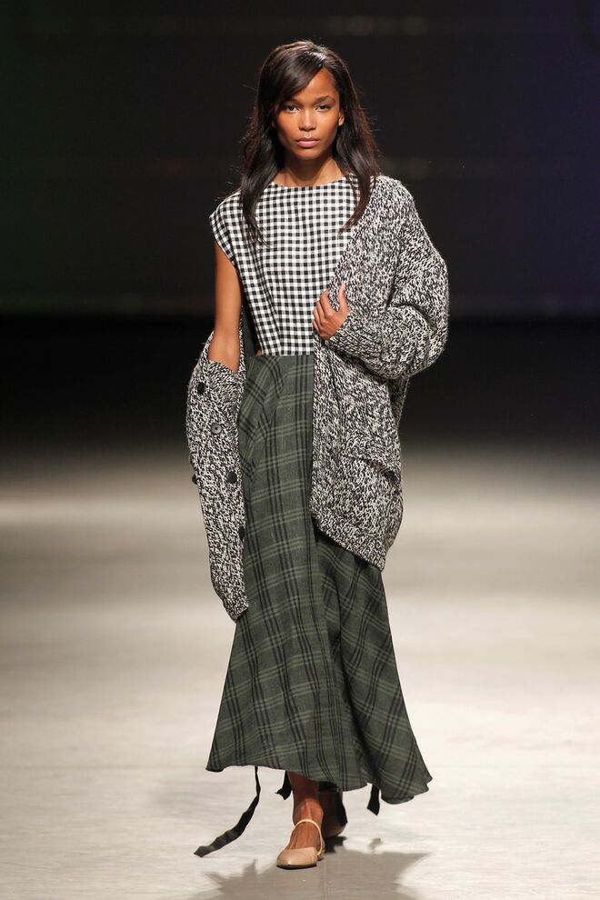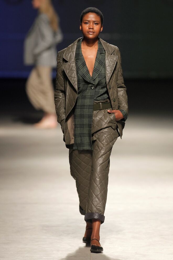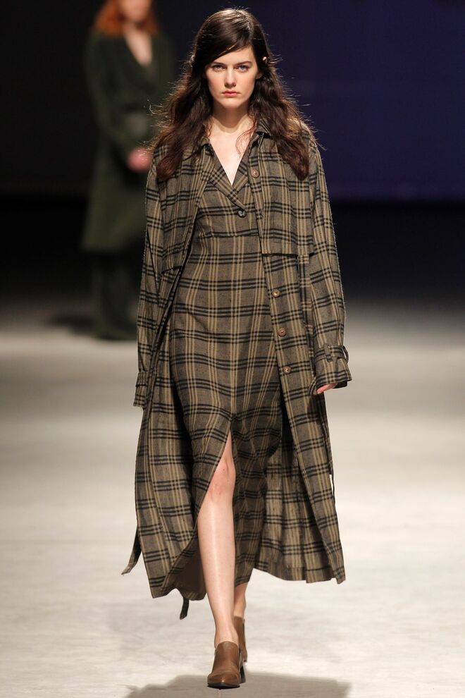 Vichys e axadrezados marcam os motivos da coleção. Cores invernosas, terra e sóbrias. Do cinza ao beije e ao camel, passando pelo preto, caqui, verde, verdes néon e oliva.