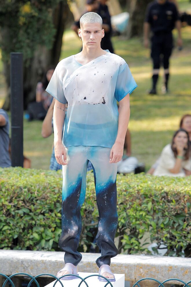 A nova coleção de Valentim Quaresma esteve repleta de símbolos de luta e força, entre eles os calções plissados com detalhes metalizados que nos trazem à memória as armaduras e os uniformes dos gladiadores romanos. As luvas de boxe, os casacos de inspiração japonesa e as peças de joalharia que cobriram alguns dos rostos foram outros elementos que completaram a estética destemida para a próxima estação.