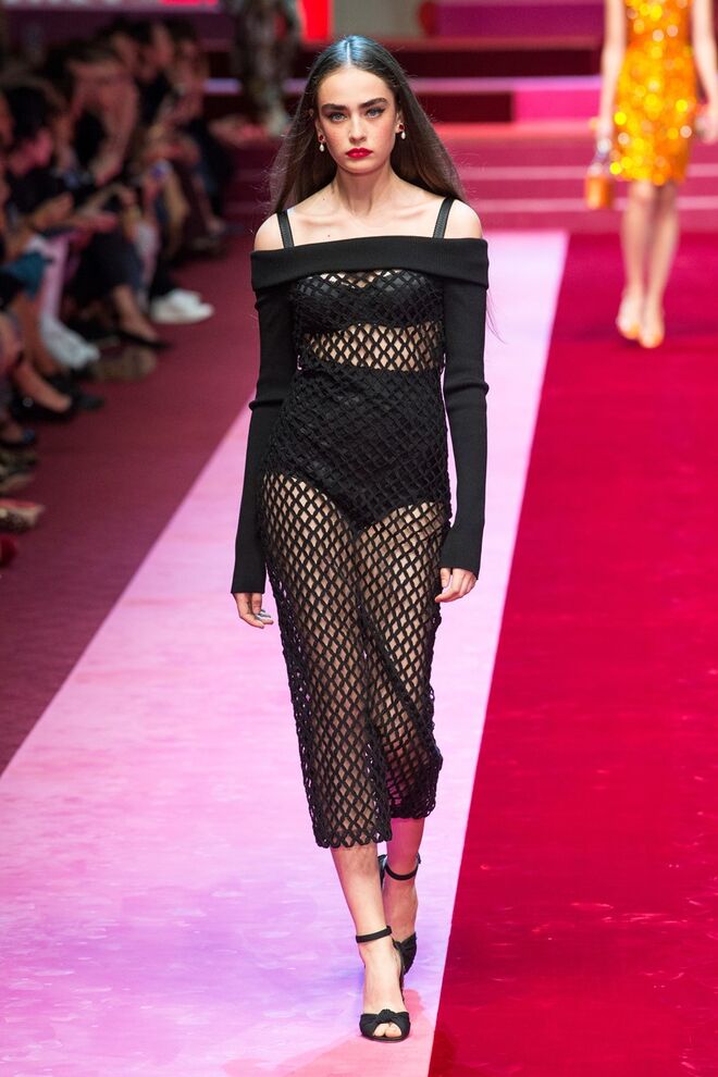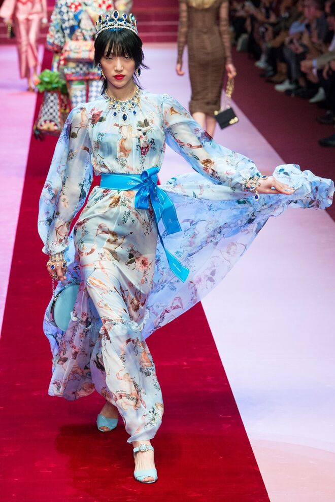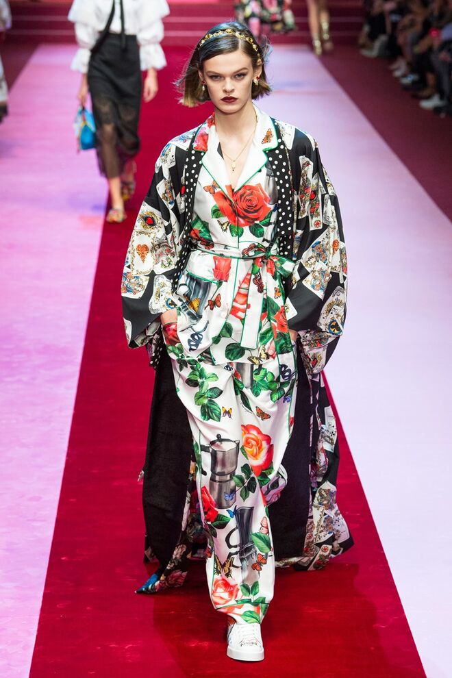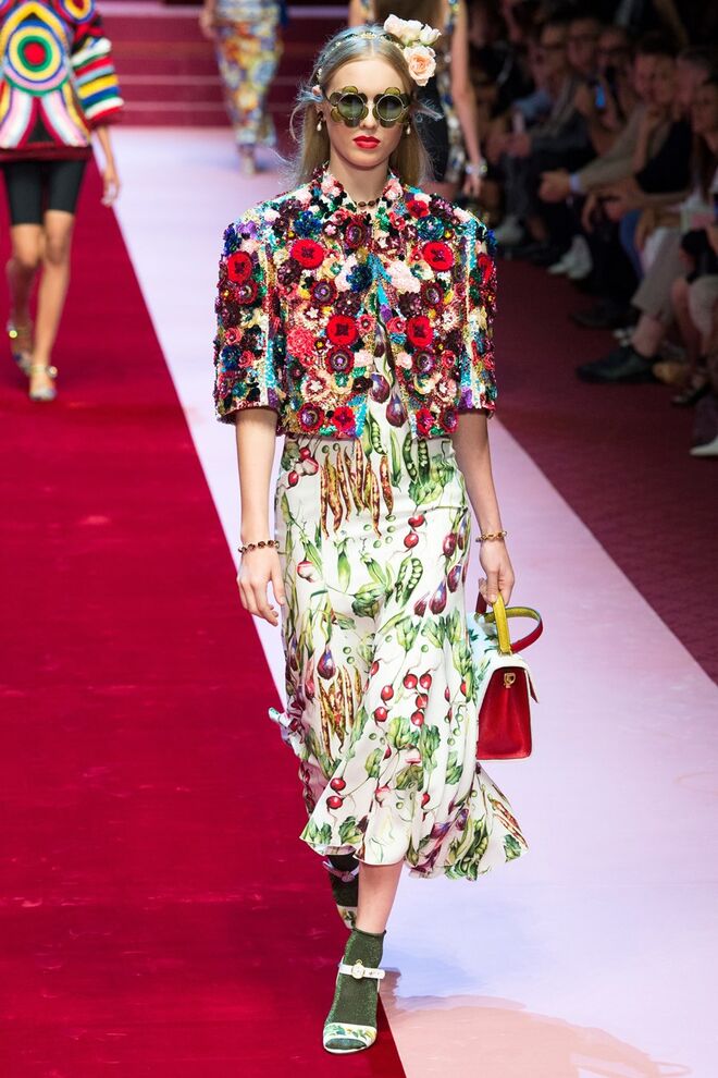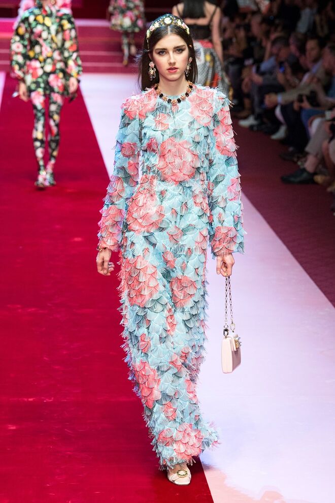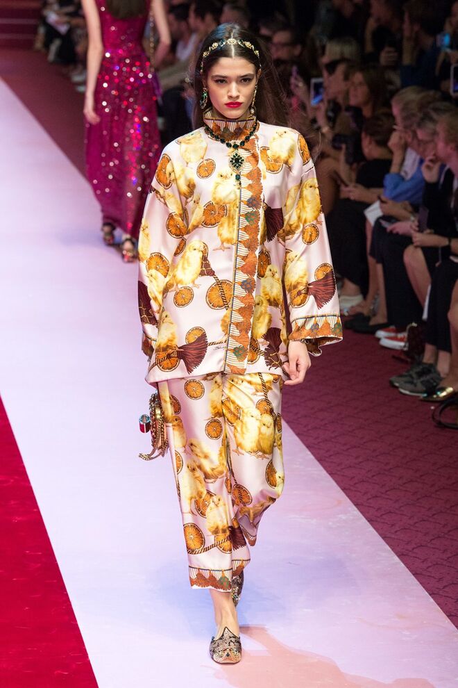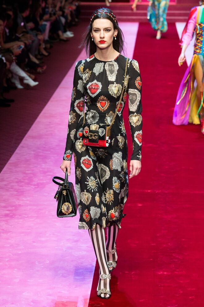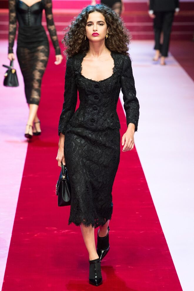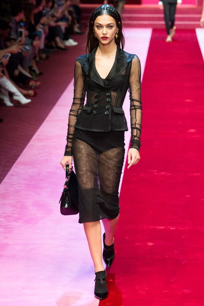 A Rainha de Copas foi a inspiração da última coleção da Dolce & Gabbana, entre penas, brilhos e muitas franjas. As transparências e a lingerie serviram de contraste a vestidos estampados e volumosos numa coleção carregada de glamour.