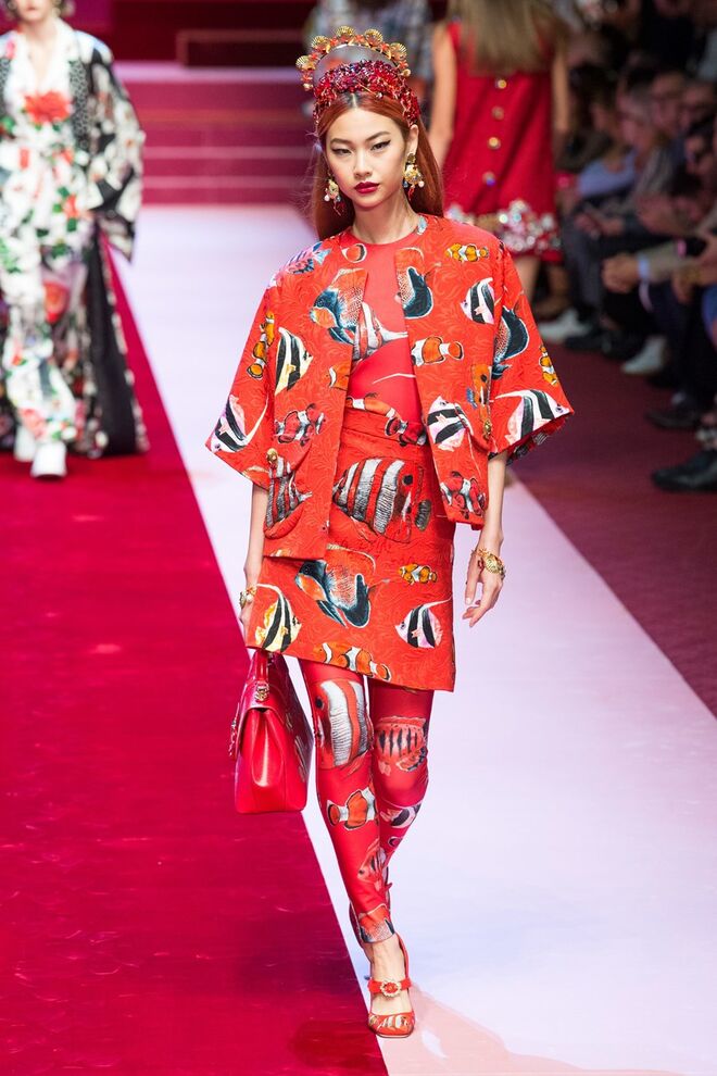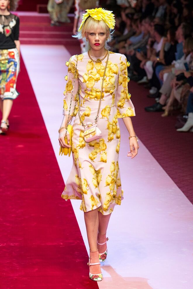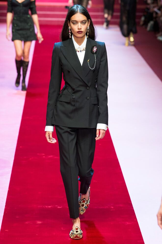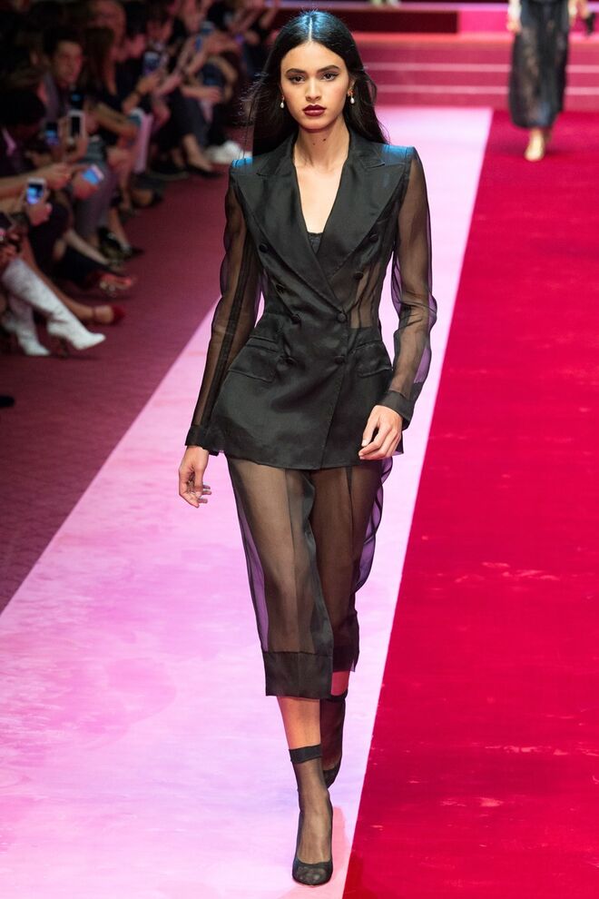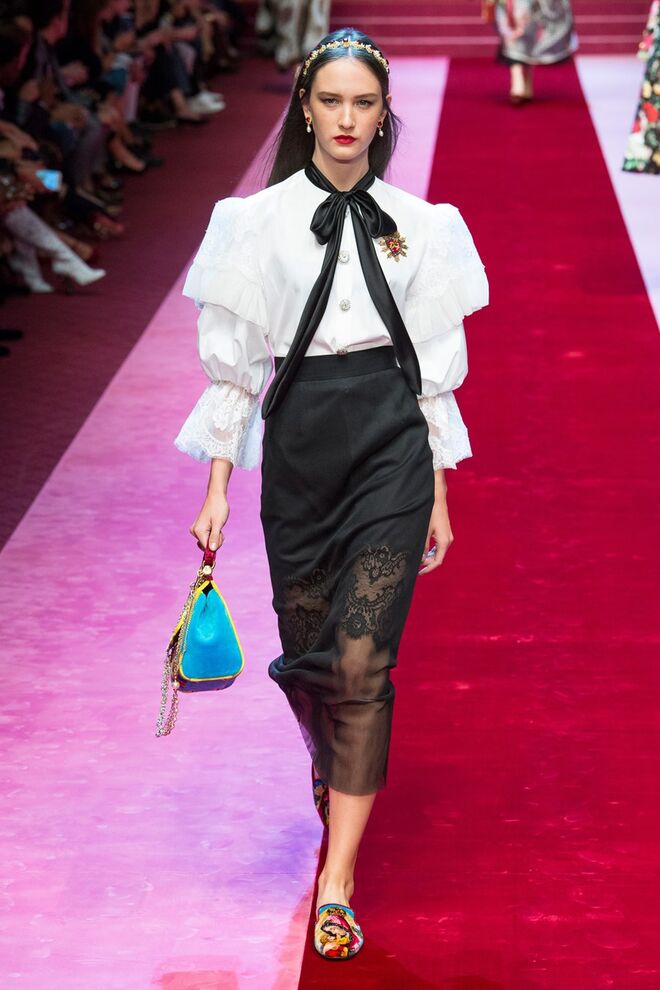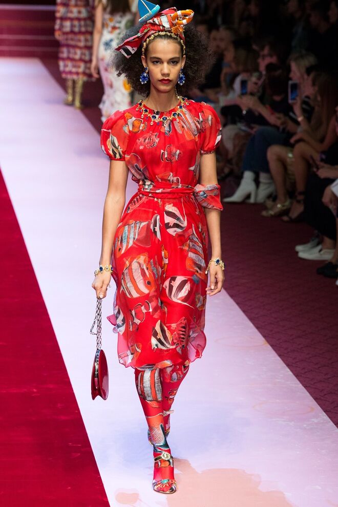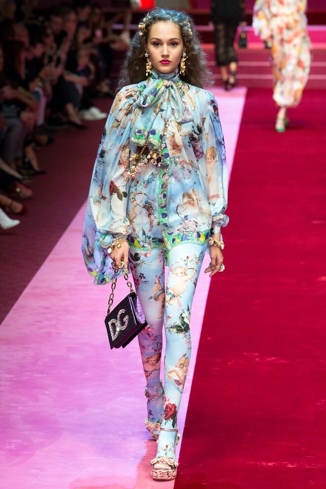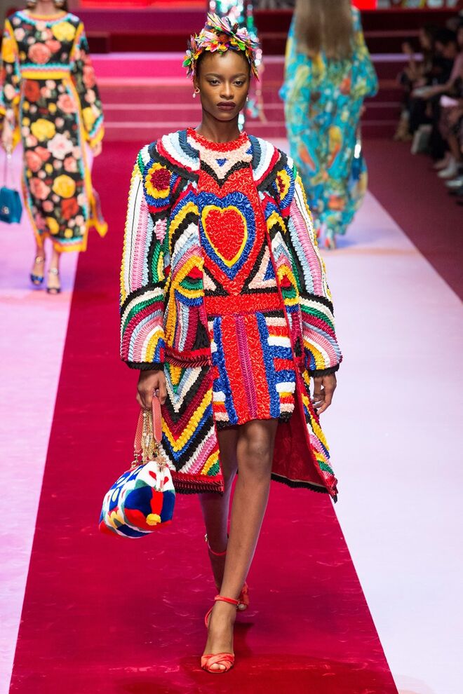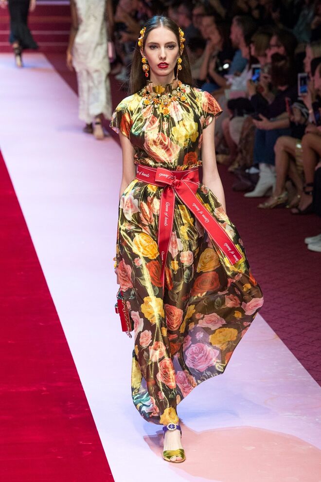 A Rainha de Copas foi a inspiração da última coleção da Dolce & Gabbana, entre penas, brilhos e muitas franjas. As transparências e a lingerie serviram de contraste a vestidos estampados e volumosos numa coleção carregada de glamour.