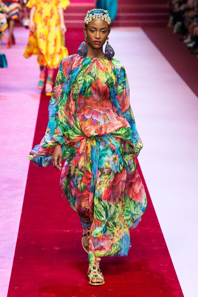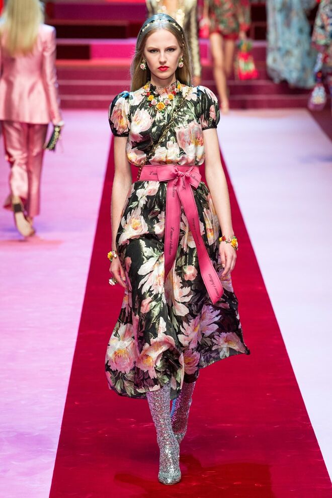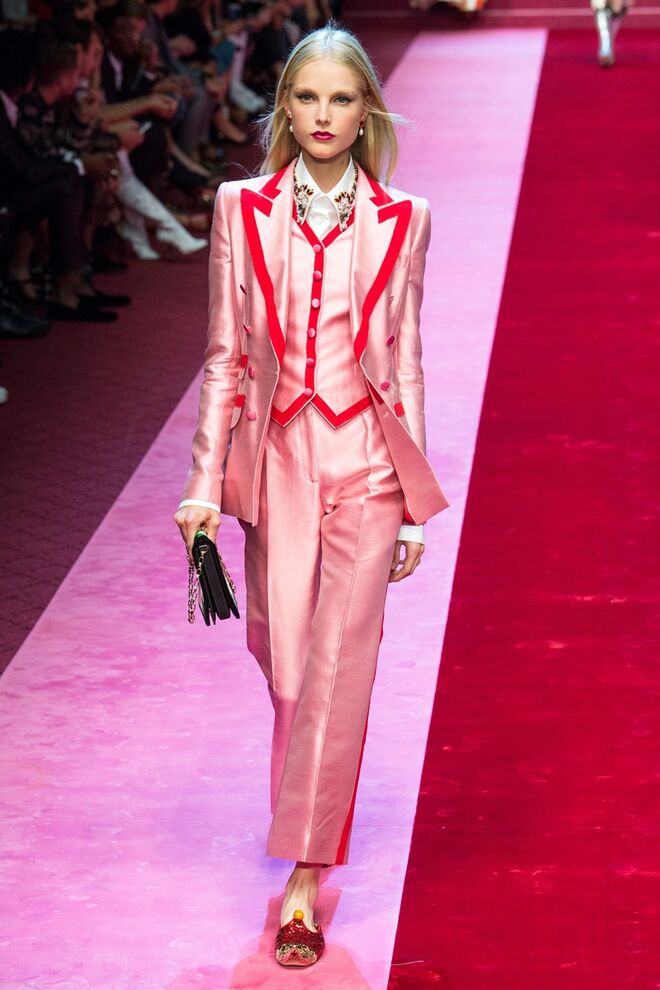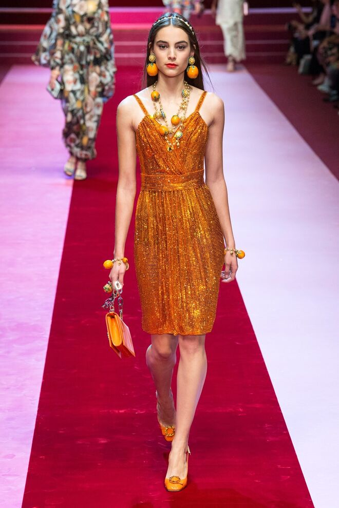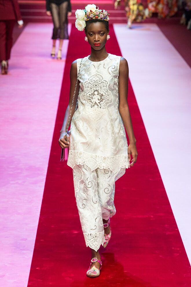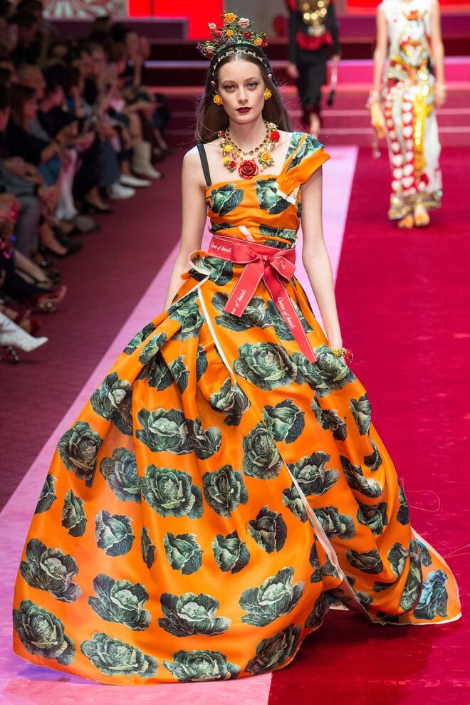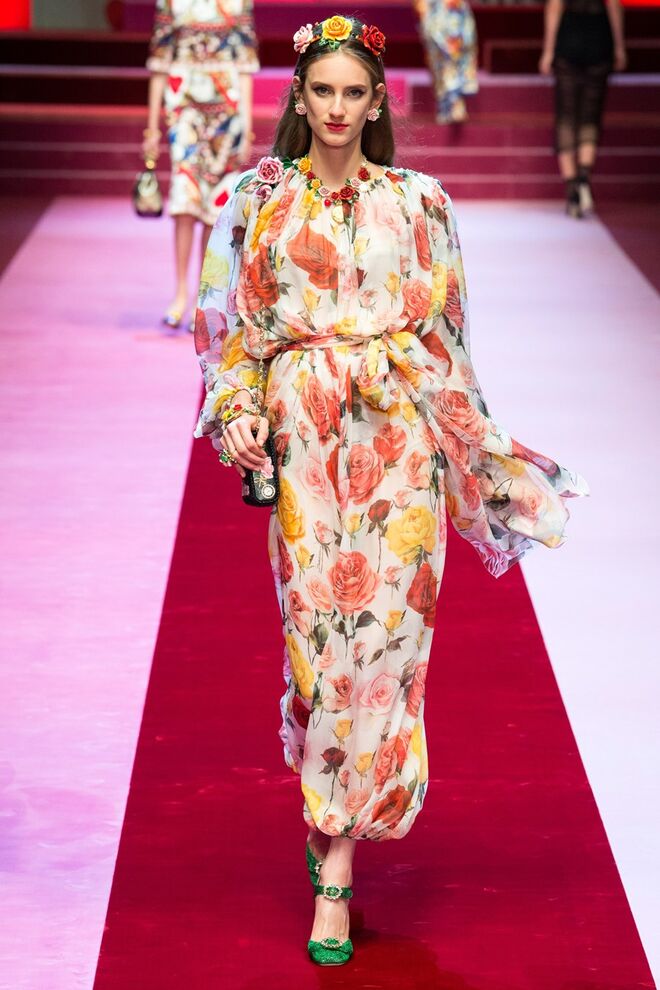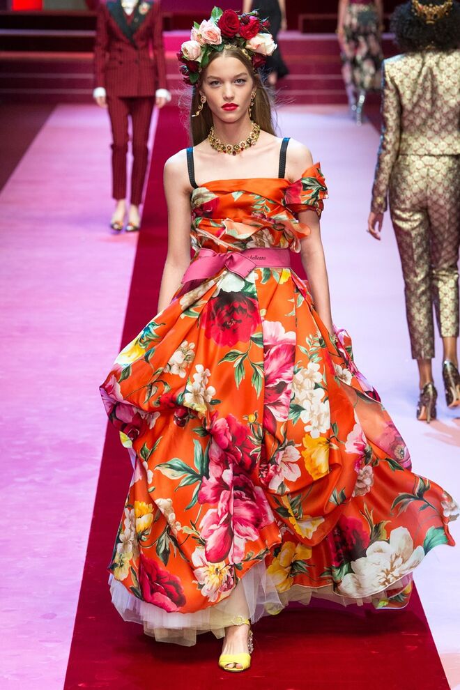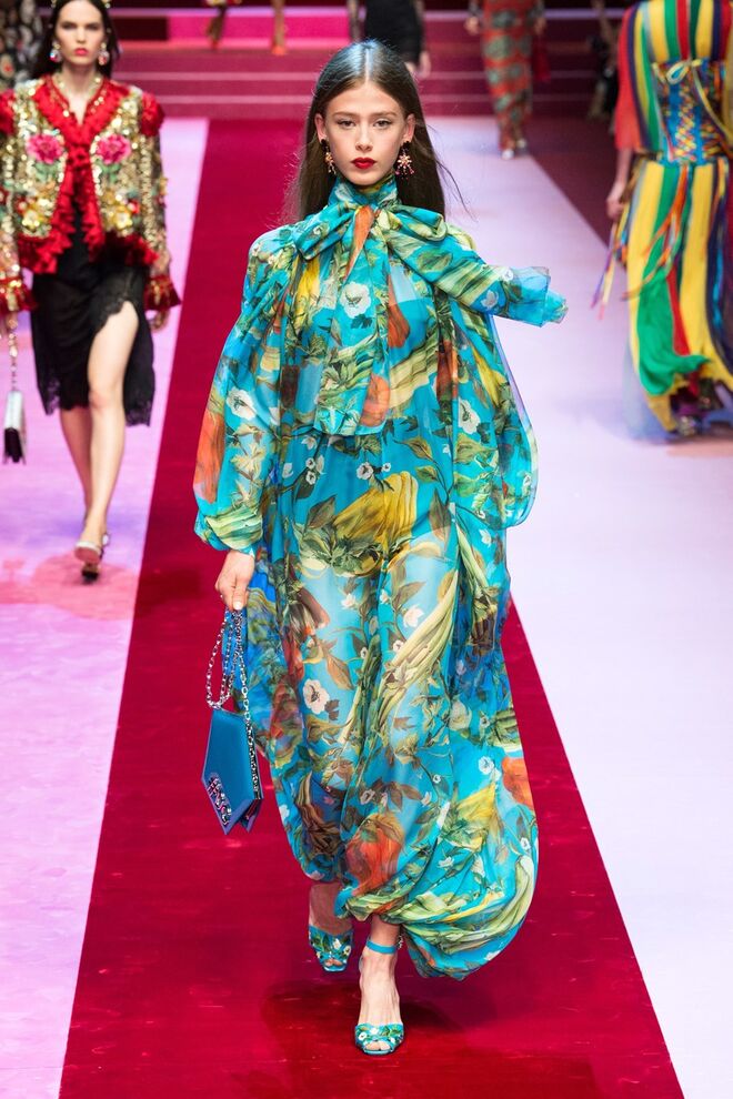 A Rainha de Copas foi a inspiração da última coleção da Dolce & Gabbana, entre penas, brilhos e muitas franjas. As transparências e a lingerie serviram de contraste a vestidos estampados e volumosos numa coleção carregada de glamour.