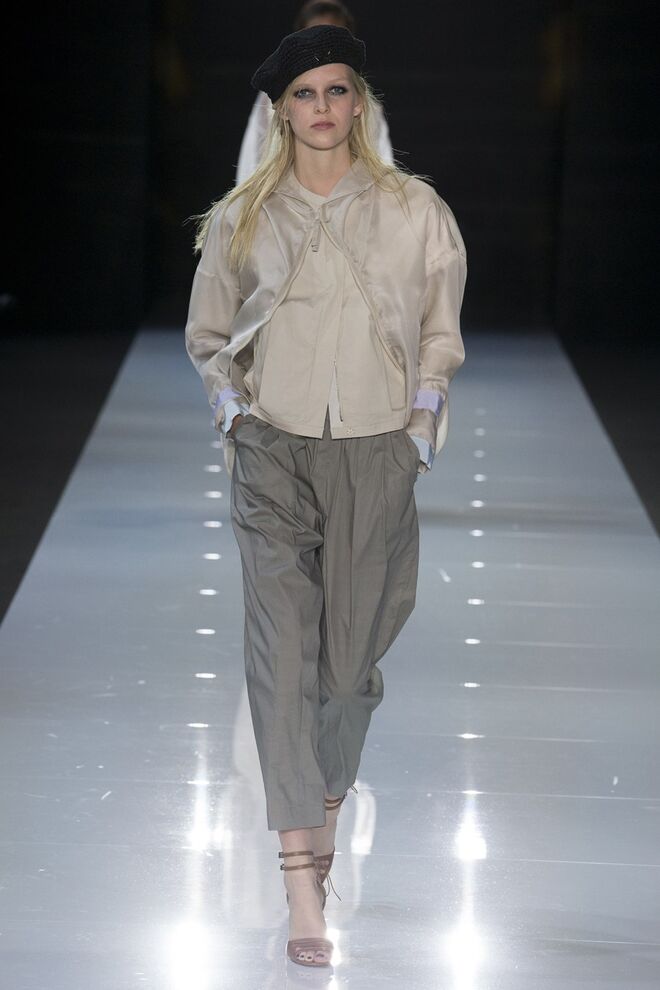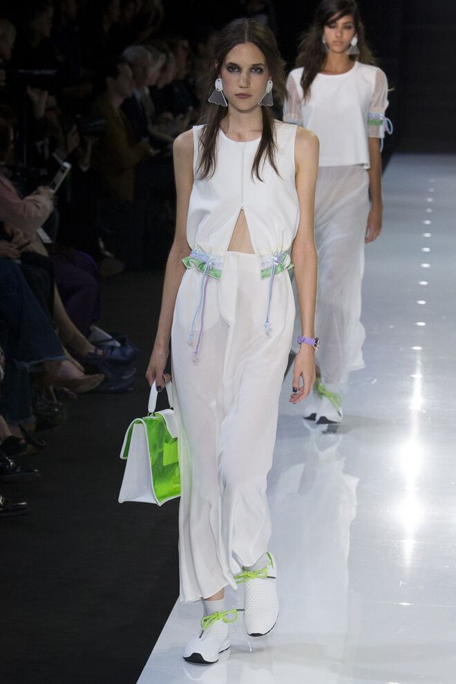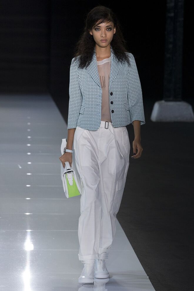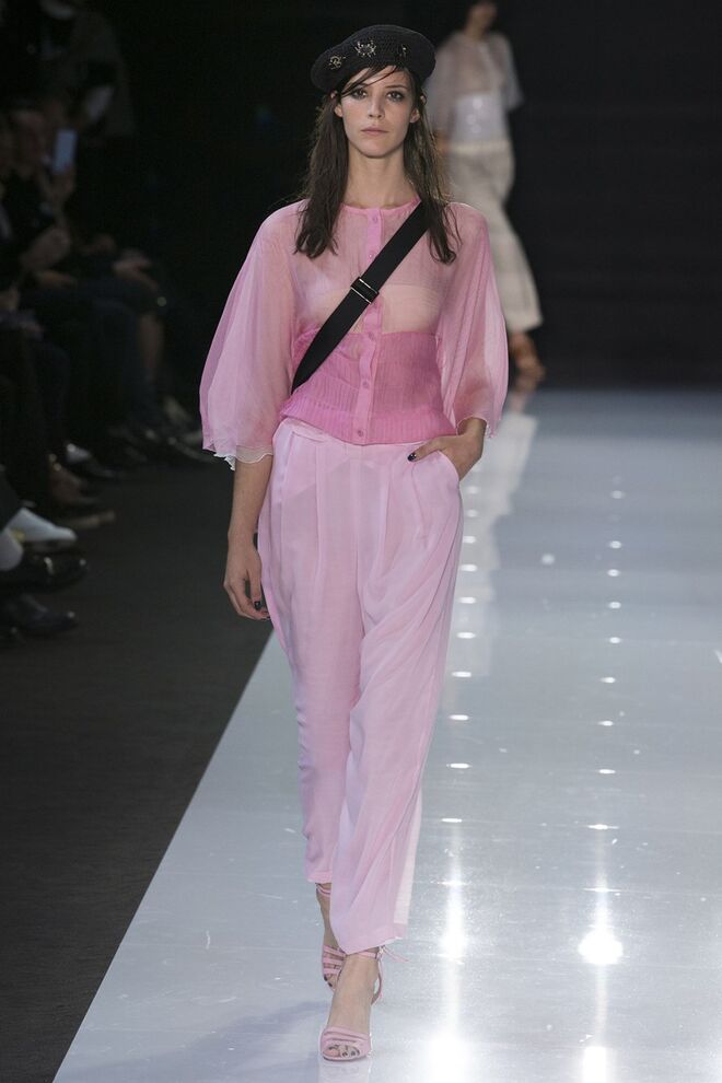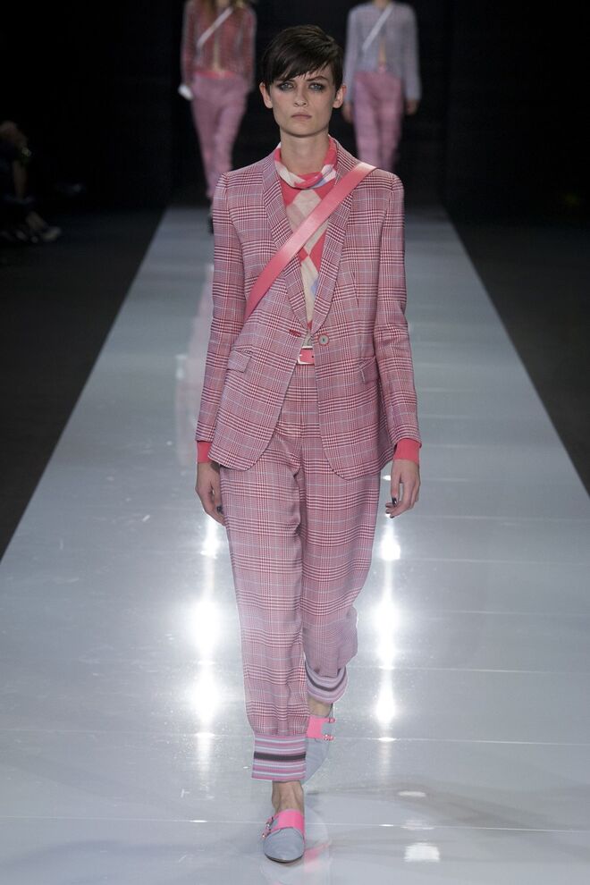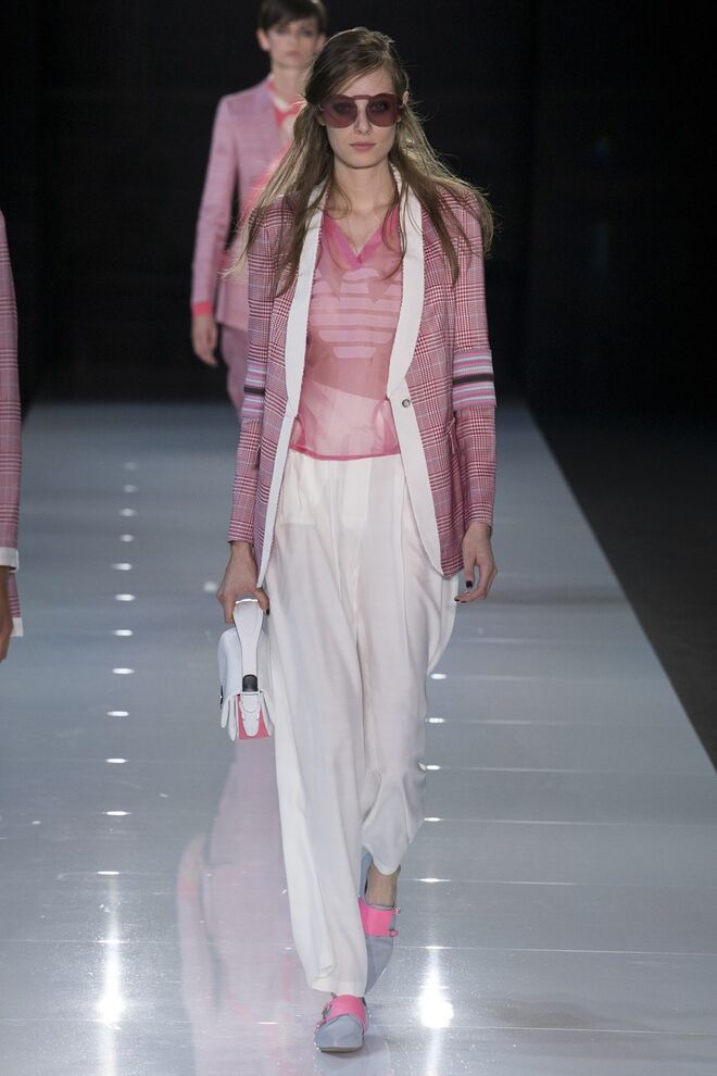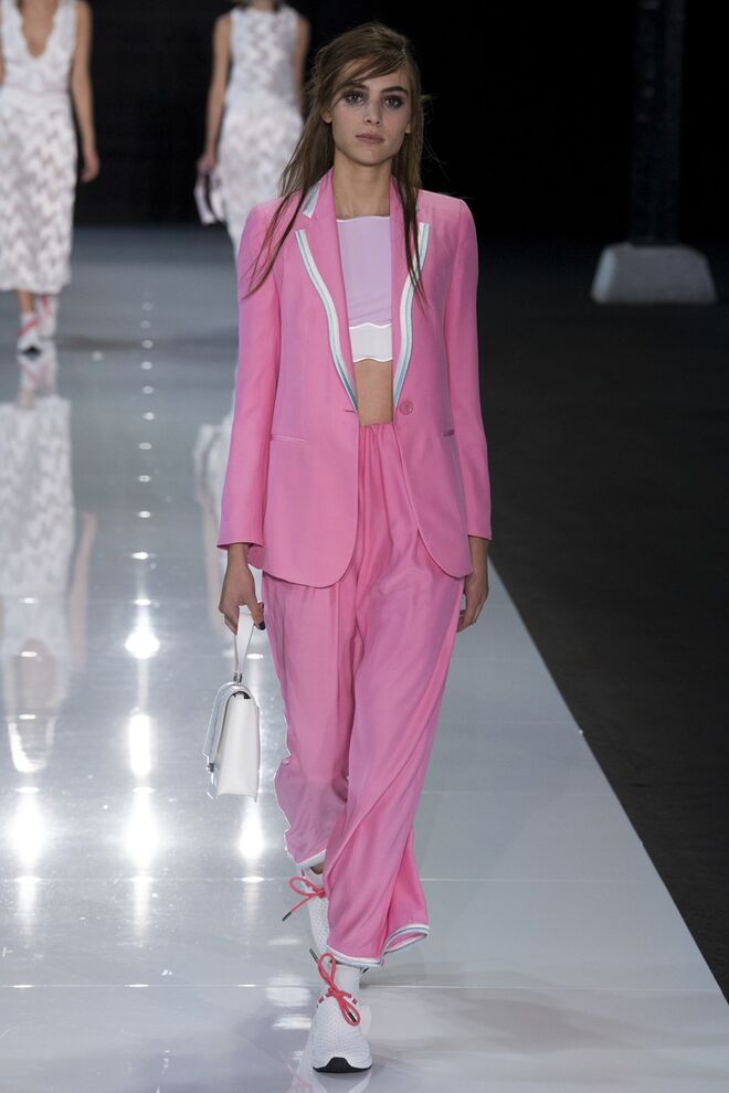 A nova coleção Emporio Armani, apresentada em Londres, apostou nos tons pastel, nos cortes fluídos e nos apontamentos desportivos, mostrando uma mulher doce e com um lado mais descontraído.