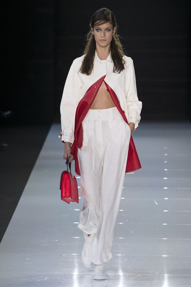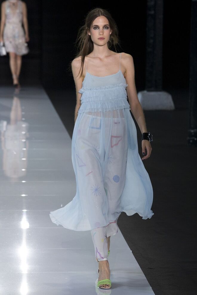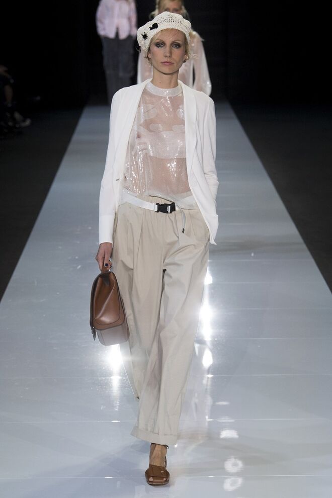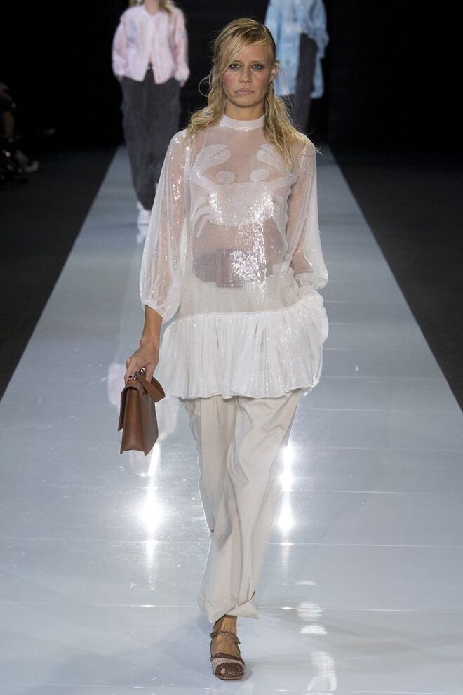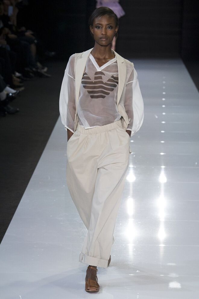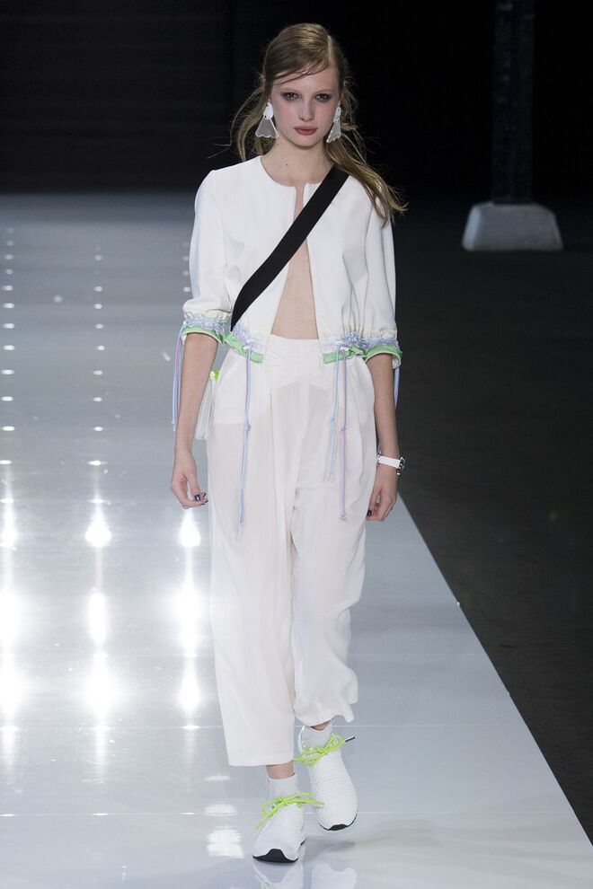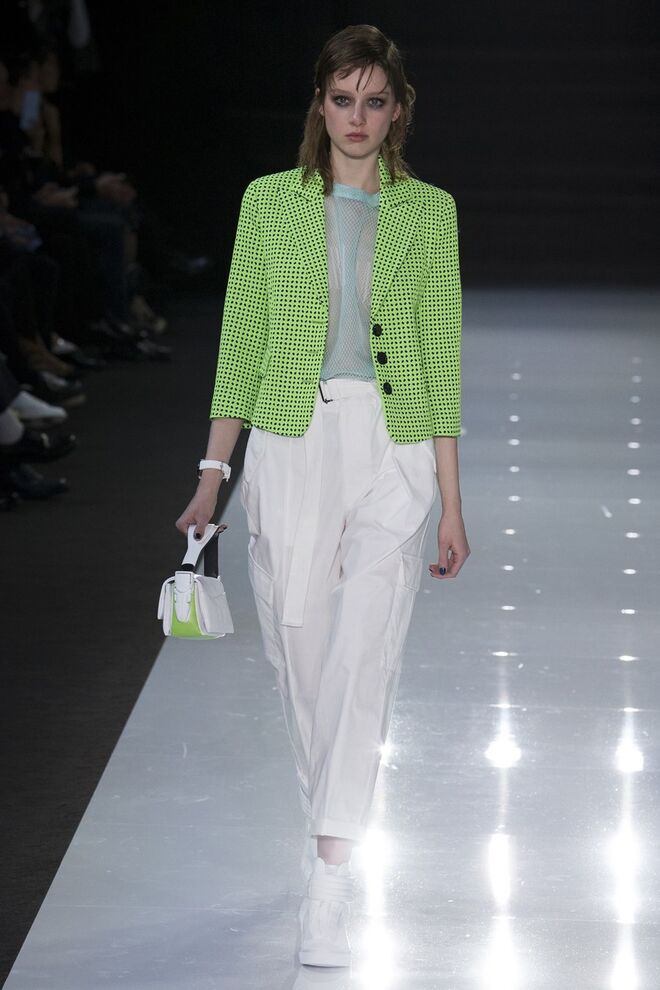 A nova coleção Emporio Armani, apresentada em Londres, apostou nos tons pastel, nos cortes fluídos e nos apontamentos desportivos, mostrando uma mulher doce e com um lado mais descontraído.
