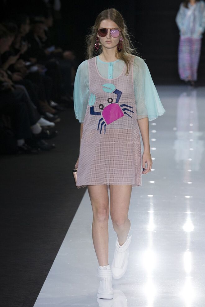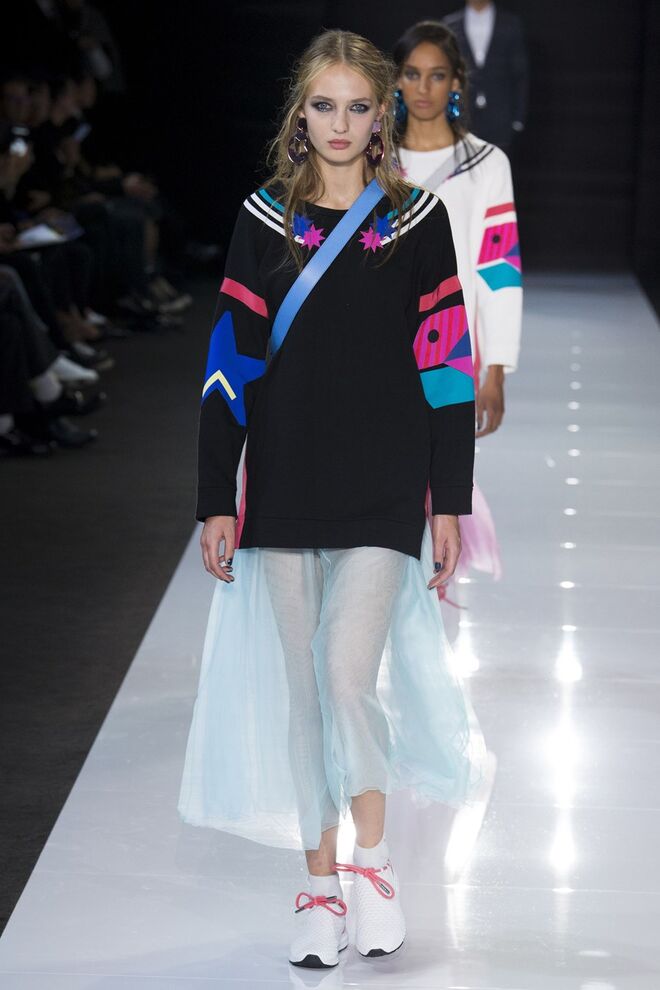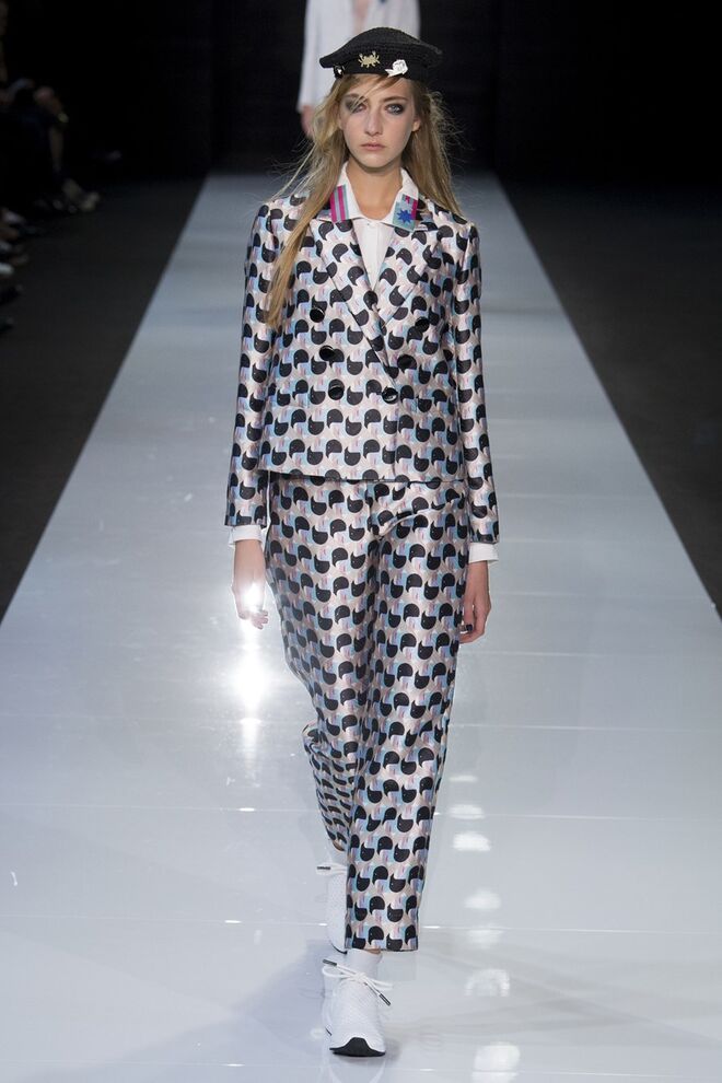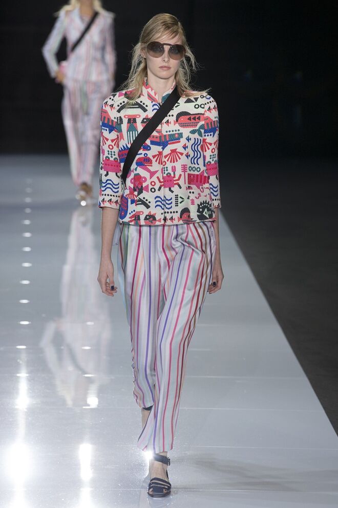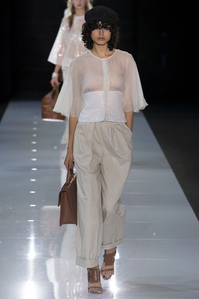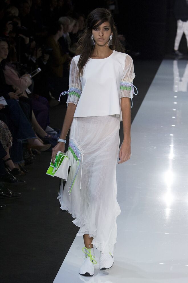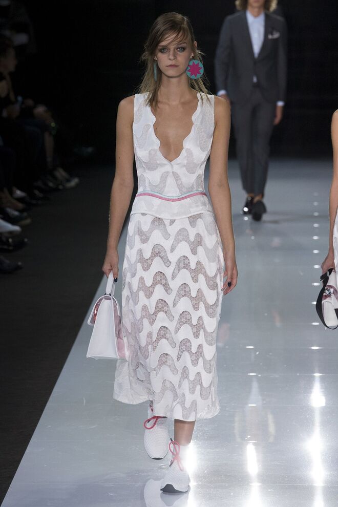 A nova coleção Emporio Armani, apresentada em Londres, apostou nos tons pastel, nos cortes fluídos e nos apontamentos desportivos, mostrando uma mulher doce e com um lado mais descontraído.