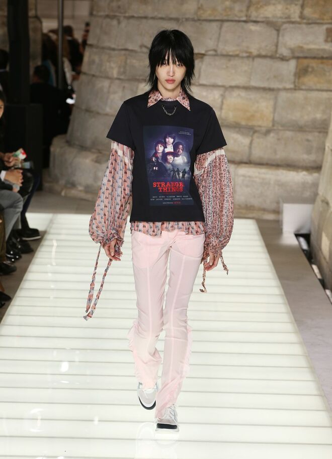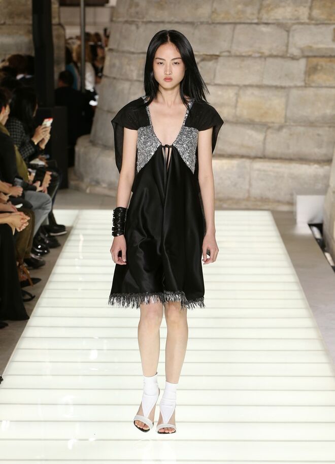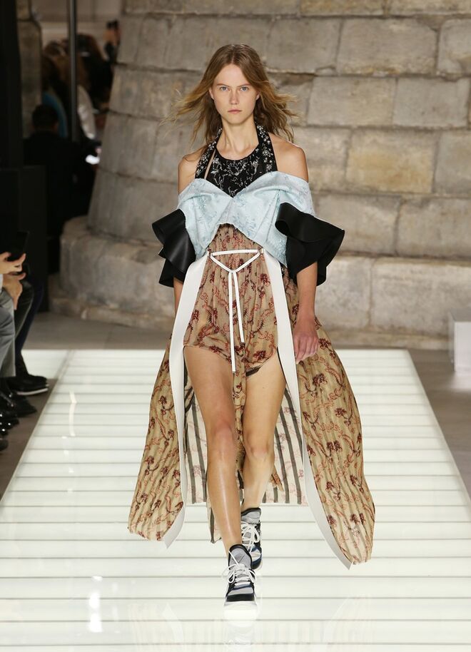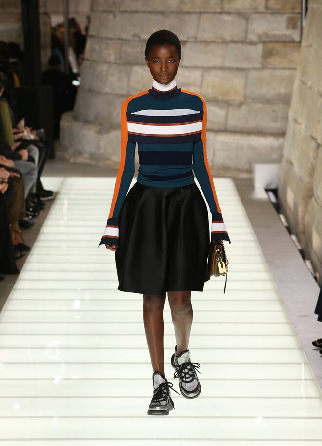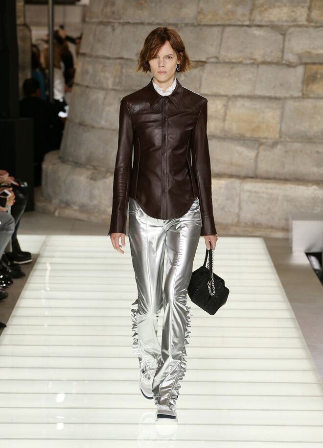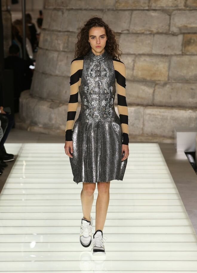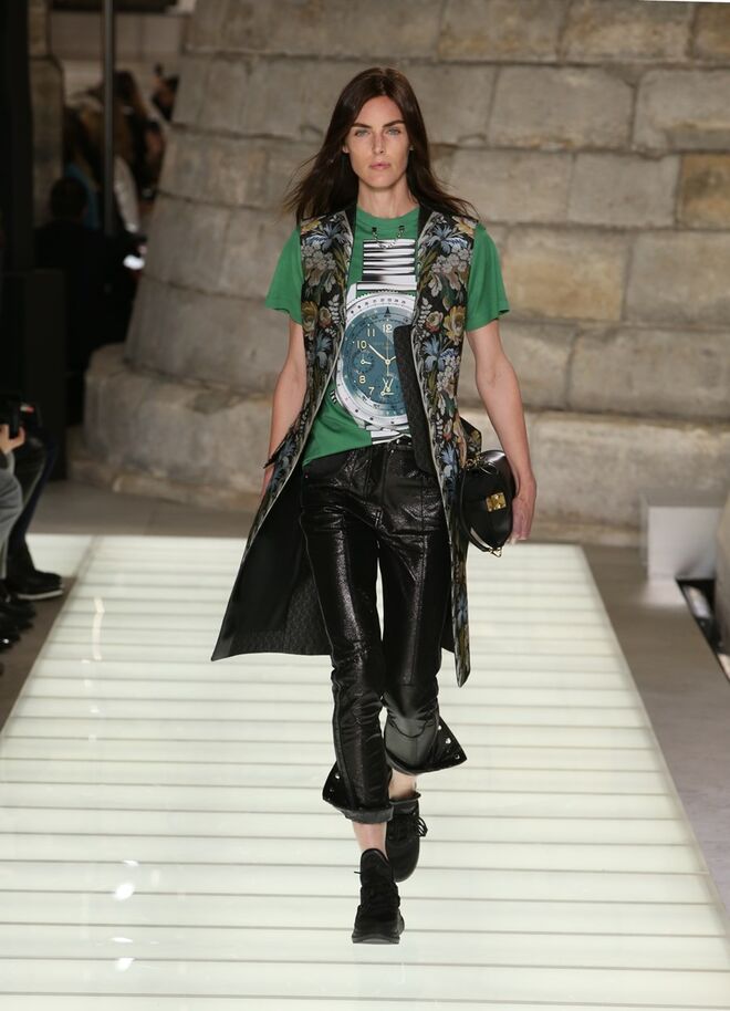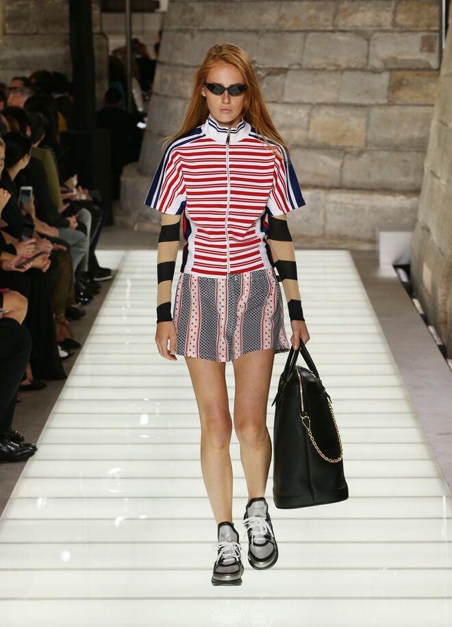 Nicolas Ghesquière trouxe à passerelle referências históricas do século XVIII, mas reinterpretou-as, cruzando-as com influências do sportswear. O resultado? Casacos estruturados com brocados metalizados conjugados com calções desportivos em seda e ténis. A coleção da Louis Vuitton recria a harmonia perfeita entre dois conceitos opostos.