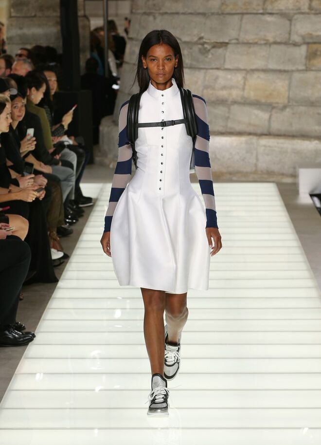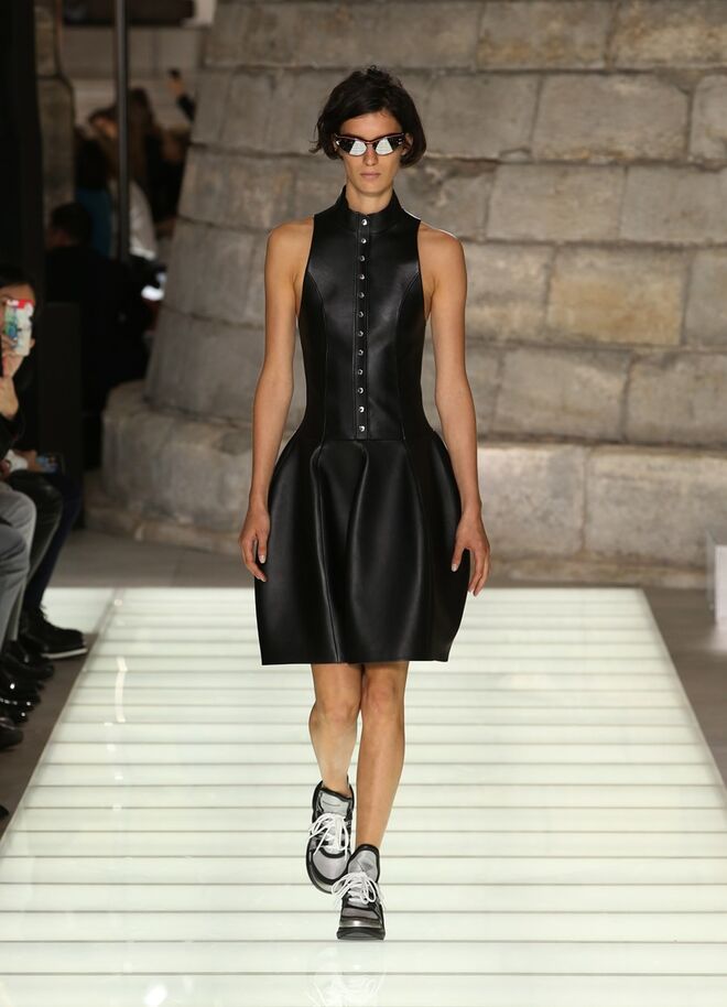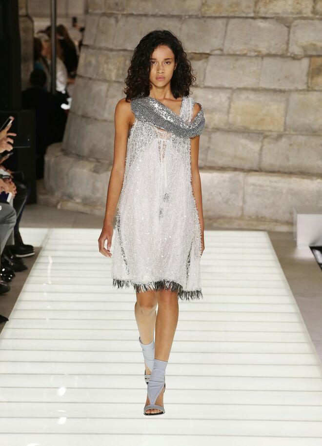 Uma coleção futurista, onde se destacou o plástico transparente, os tops em lantejoulas coloridas e os casacos oversized repletos de bolsos, que fizeram lembrar uma versão feminina e glamourosa dos fatos de astronautas.