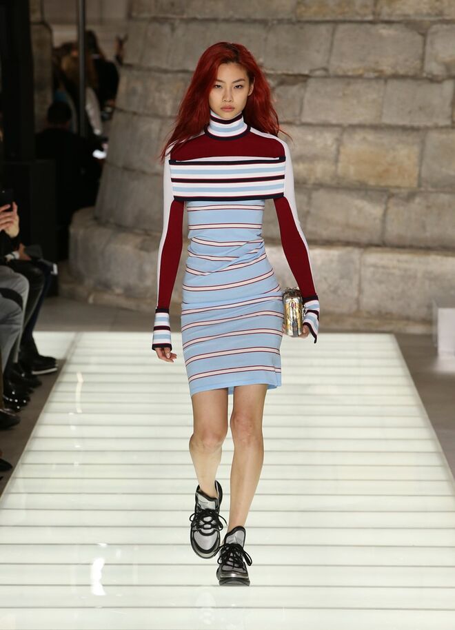 Este foi o primeiro desfile de Claire Waight Keller para a casa e mostrou a vontade de seguir um novo rumo criativo. Elegância, sex appeal, peças coleantes em vermelho, azul escuro e bordeaux deram forma a uma coleção de peças estruturadas e padrões gráficos.