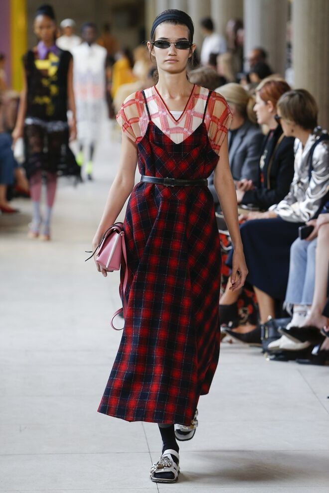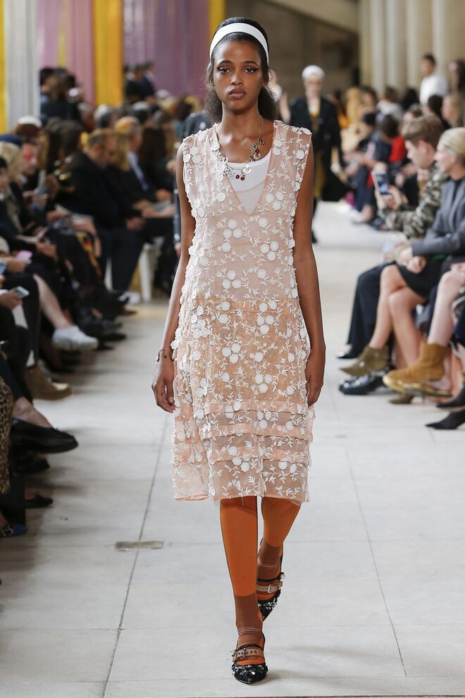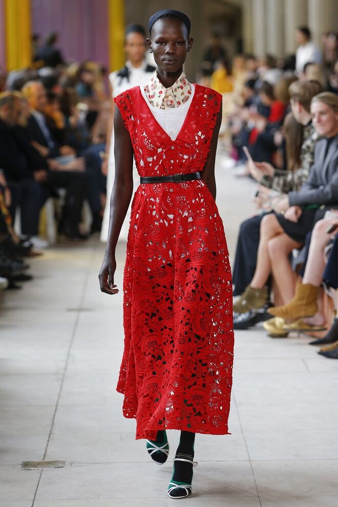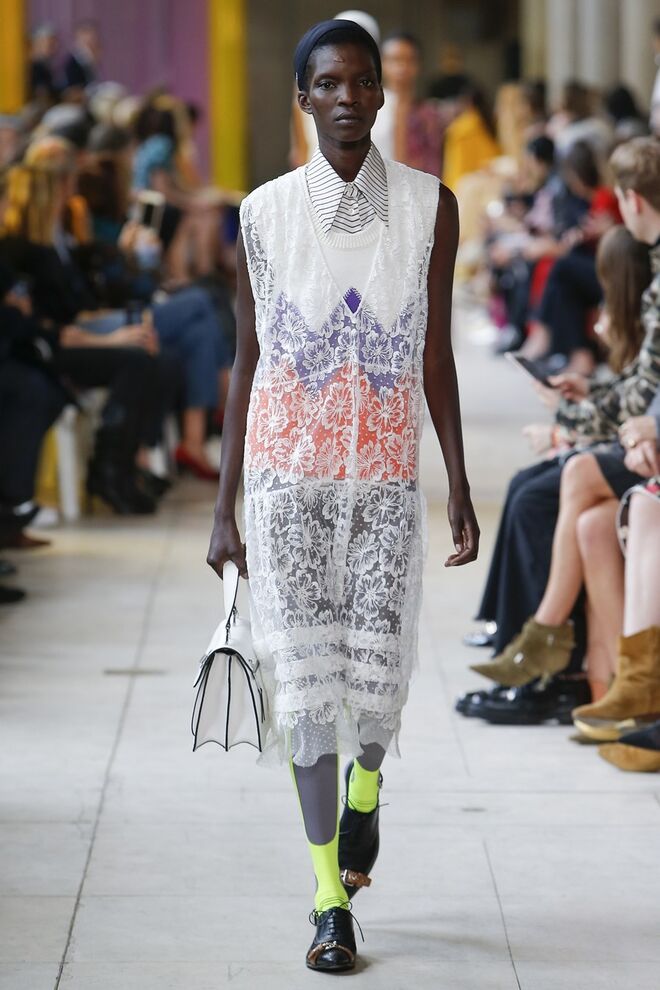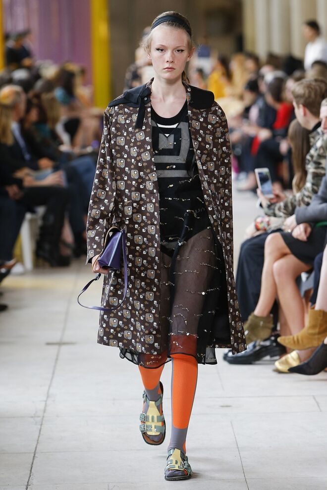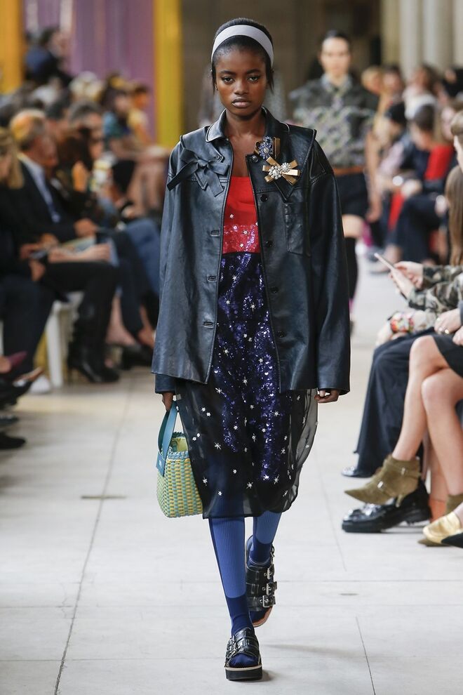 Vestidos com padrões africanos, blusões em ganga oversized e saias de baile combinadas com t-shirts largas fazem parte do universo de Stella McCartney para a primavera/verão de 2018. As linhas simplificadas já caraterísticas da estética da marca são agora pintadas em vermelho e magenta, cores que se destacam entre os tradicionais tons terra e o azul escuro neutro de alguns looks mais sóbrios da coleção.
