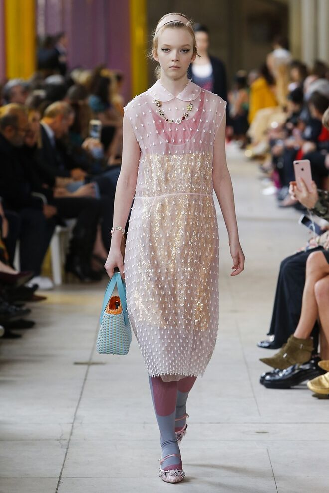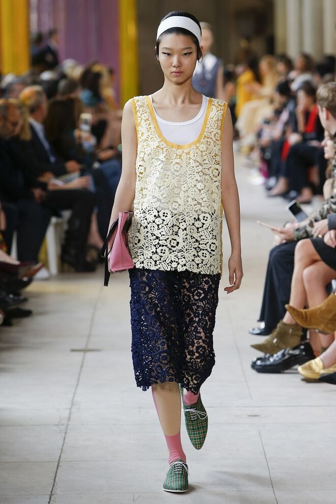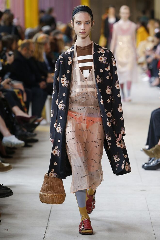 Os padrões, sejam florais ou geométricos, marcaram a nova coleção da Miu Miu, mais um elogio da feminilidade, cortesia de Miuccia Prada.