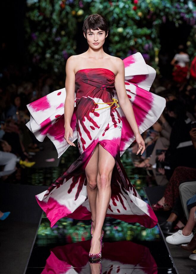 Inspirada no Norte de África e na mistura entre as culturas europeias e africanas, a Schiaparelli criou uma coleção em que silhuetas fortes jogam com texturas infinitas e padrões étnicos e vibrantes. O resultado é leveza e transparência e transporta-nos para as margens do Nilo e para terras longínquas.