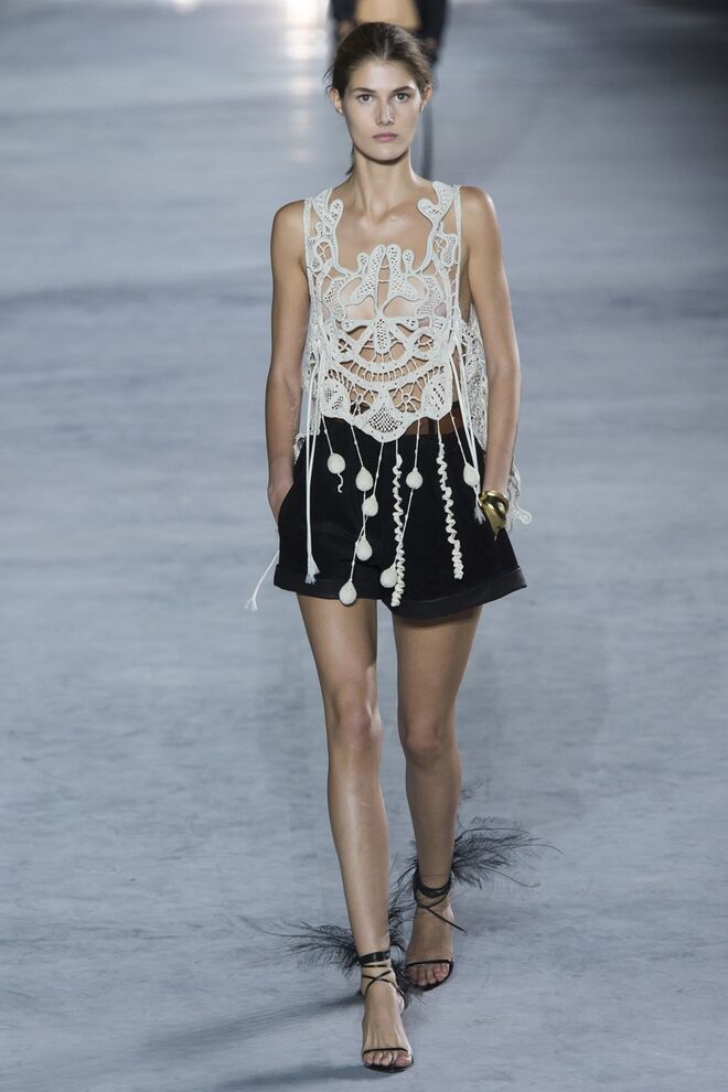 O desfile de Isabel Marant foi uma celebração do effortless chic. Repleta de tecidos metálicos, peças em crochet e tops assimétricos, a coleção leva-nos de regresso às noites de disco e às praias nos anos 60.