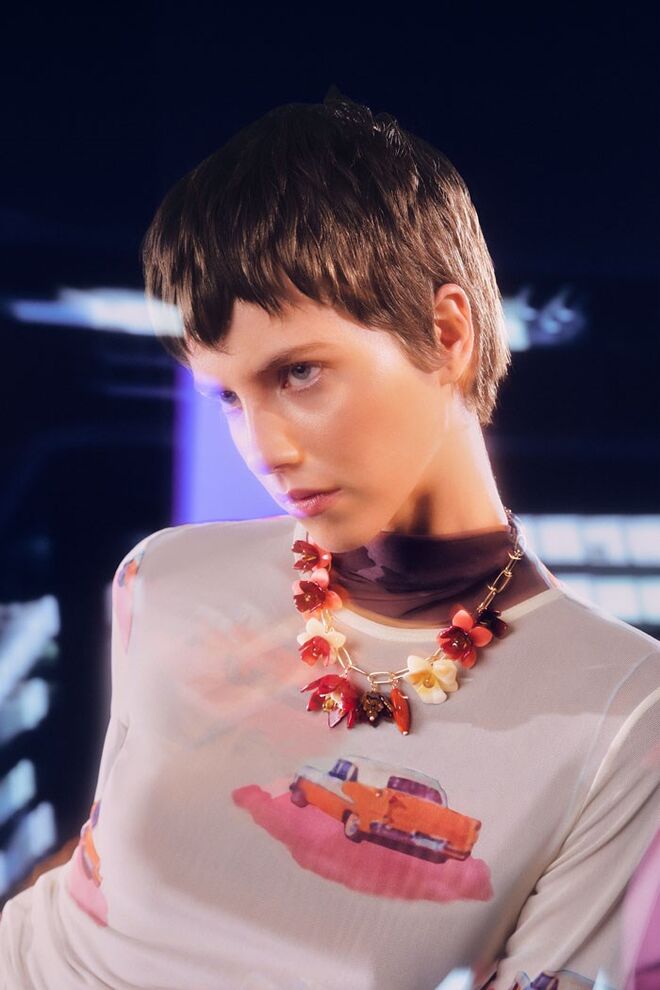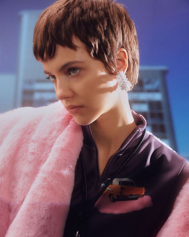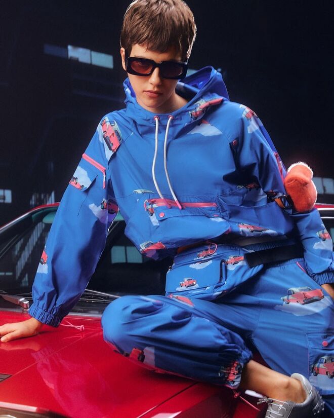 A protagonista - a modelo Olivia Martin - explora um imaginário que tem tanto de Regresso ao Futuro como de Blade Runner - pela lente do fotógrafo Gerard Mena e do videógrafo Joaquín Luna. Dos acessórios à roupa, a vibe é um streetwear chic, em materais como strass, nylon ou neoprene, e em cores como o azul, o amarelo, o rosa ou o roxo. O estampado estrela - que surge em várias peças, dos macacões aos vestidos, passando pelas carteiras e bonés - é um carro sobre as nuvens.