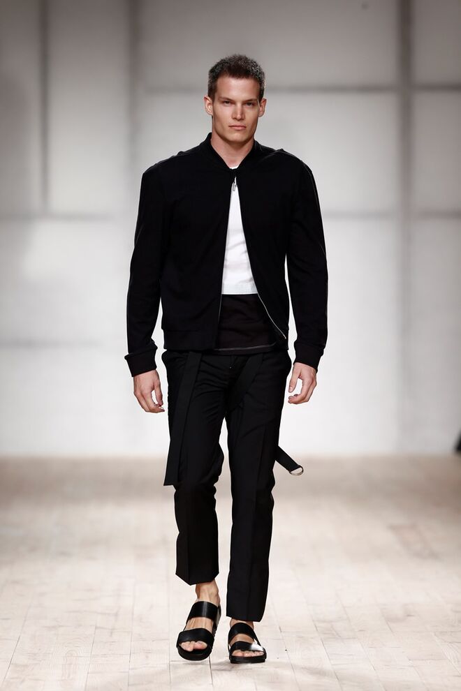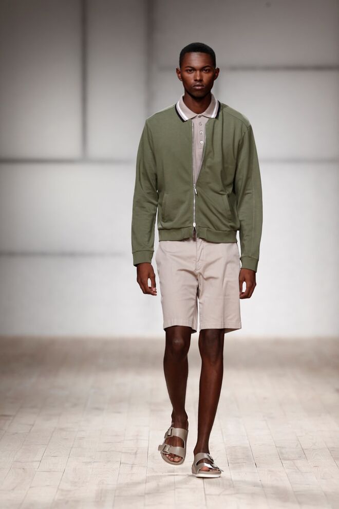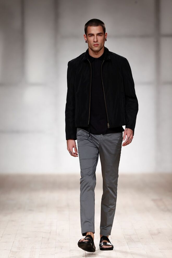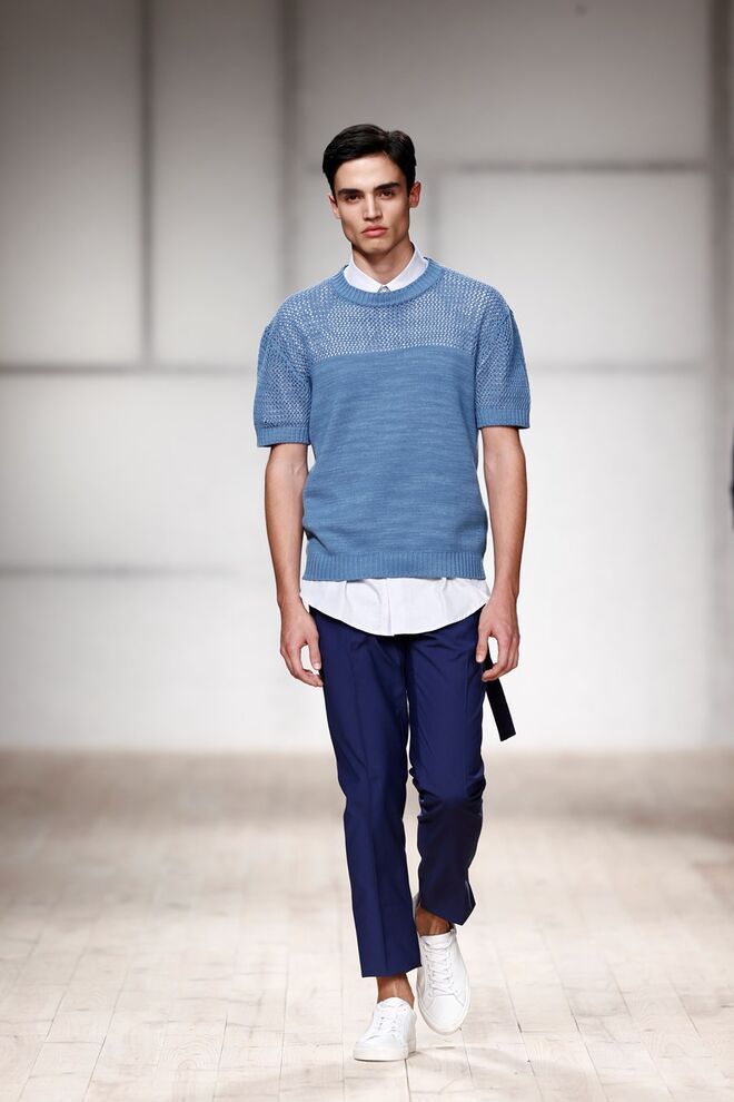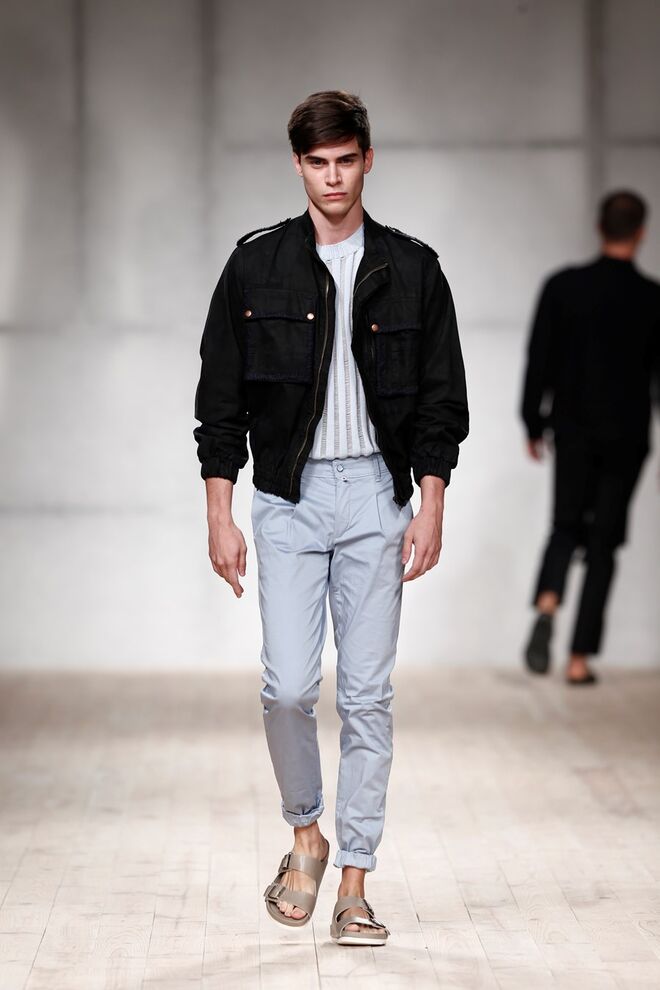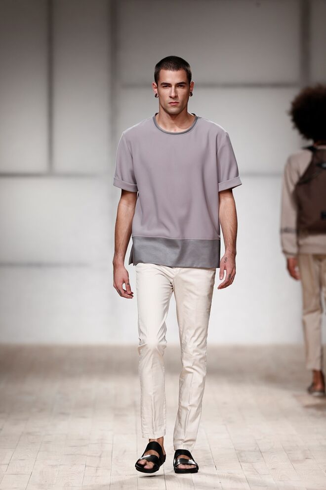 Inspirada na necessidade de se sentir seguro e confortável na sua própria pele, o homem urbano encontra nesta coleção a facilidade de um guarda-roupa adaptável a qualquer situação. É desta ideia que parte a coleção de Ricardo Preto desenhada apenas para Homem, que se compõe assim por peças funcionais, em tons de azul e verdes, preto e branco, feitas para serem usadas por pessoas que querem sentir-se como elas