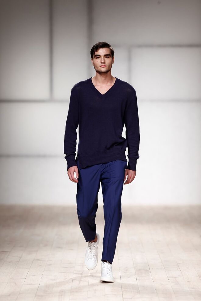 A primeira coleção de Ricardo Preto desenhada apenas para homem chama-se Walk On by e inspira-se na necessidade de conforto ao vestir uma peça de roupa.