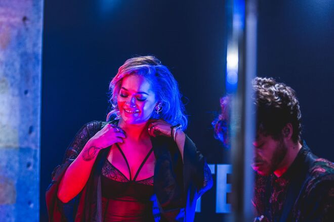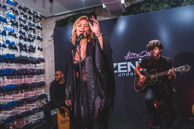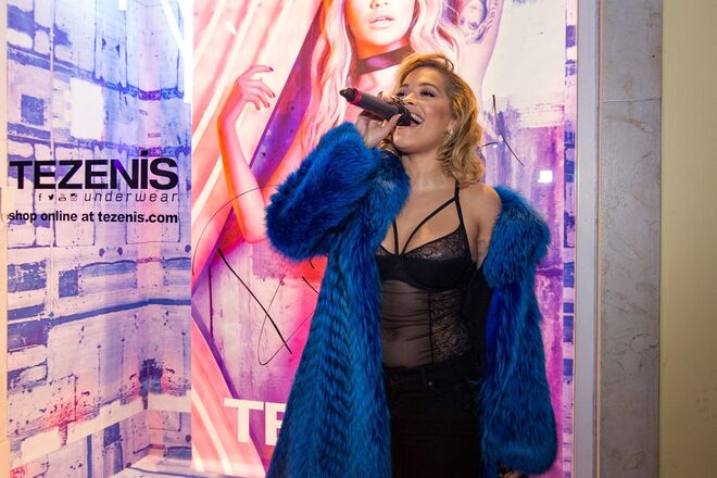 Depois de chegar à passadeira vermelha como uma verdadeira estrela - com direito a todos os flashes que vinham das câmaras, dos telemóveis e dos holofotes - assinar a montra da Tezenis e surpreender alguns fãs (que a chamavam) com selfies e autógrafos, Ora entrou na loja para uma breve conversa com jornalistas e convidados sobre as peças da coleção (duas das quais tinha vestidas, o body e o quimono) e, logo de seguida, arrancou para o palco onde durante 15 minutos cantou os temas 'Body On Me', 'Poison' e 'R.I.P', subindo depois à varanda que a Tezenis montou no primeiro andar da loja, para estar mais próxima dos fãs ao cantar 'Hot Right Now' e 'Black Widow'. Mas não deixou o palco nem os fãs sem antes surpreender tudo e todos ao lançar o quimono que tinha vestido pela varanda, para felicidade dos que a assistiam. Depois do concerto, Ora concedeu uns minutos de entrevista à Máxima, e não só nos revelou alguns dos seus episódios e gostos pessoais acerca de lingerie, como contou alguns dos seus momentos preferidos durante toda a colaboração, da inspiração no corpo feminino ao processo de fabrico. Veja o vídeo, abaixo.