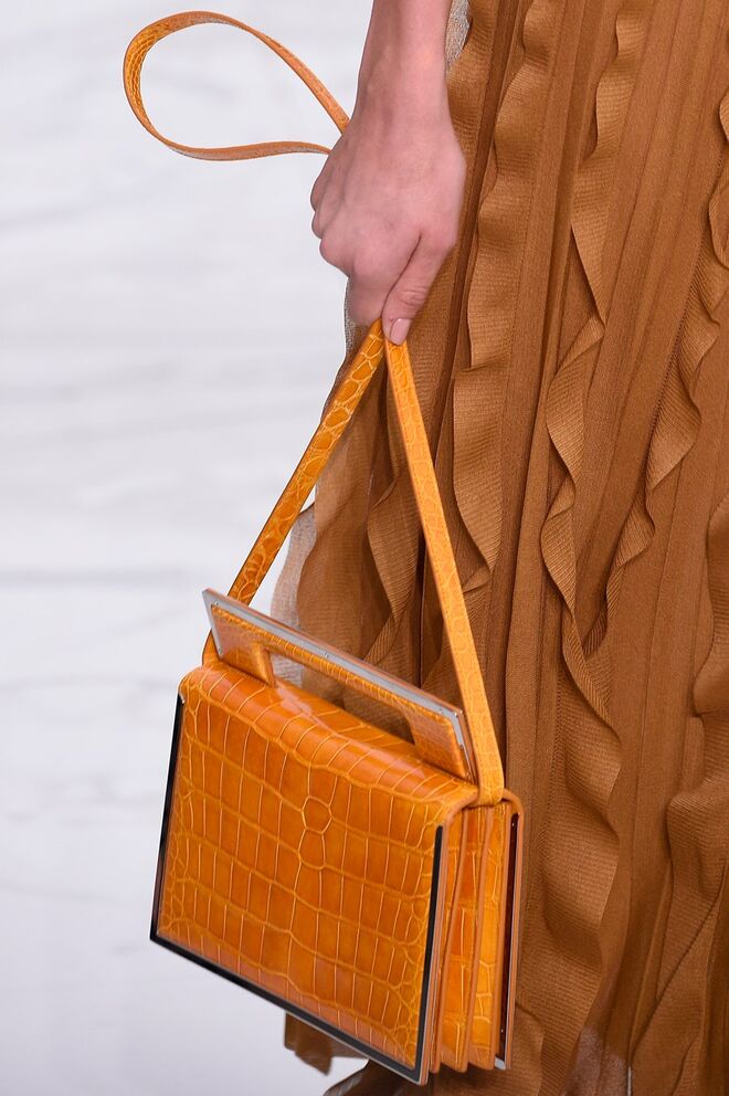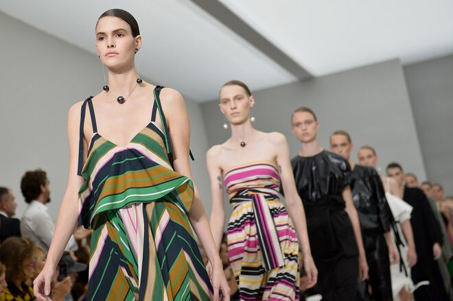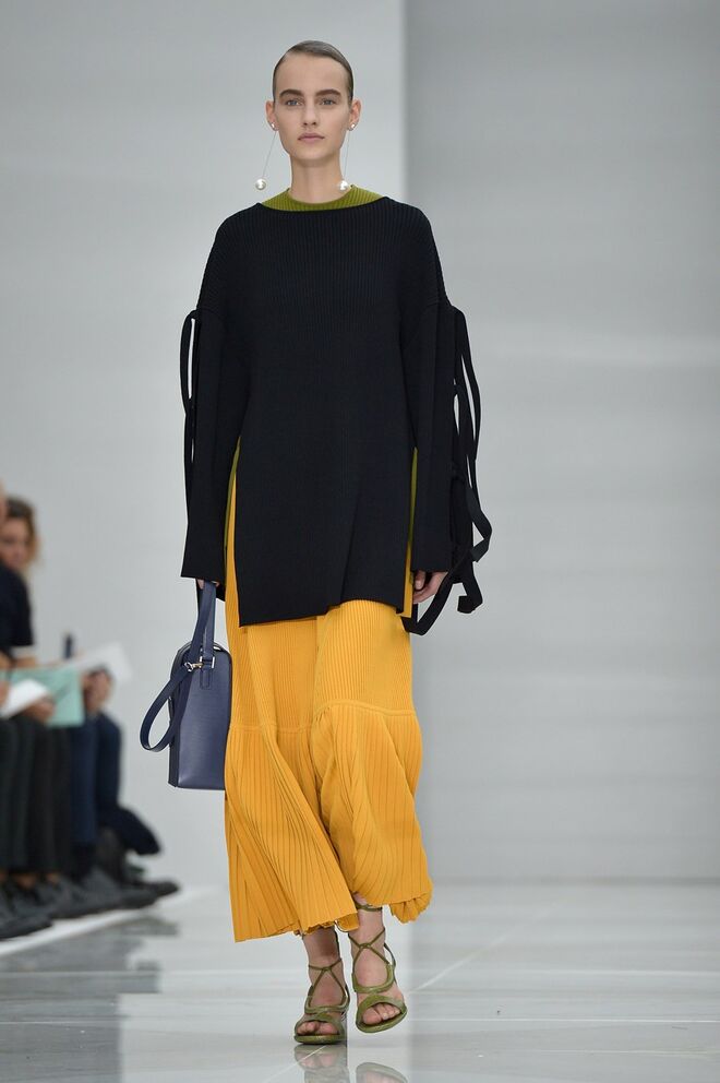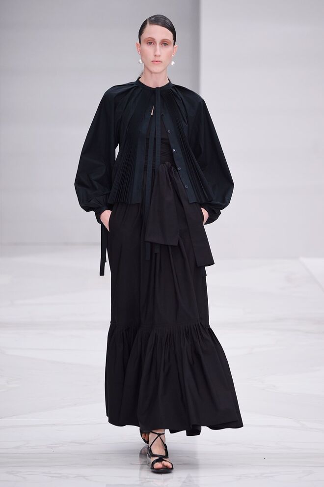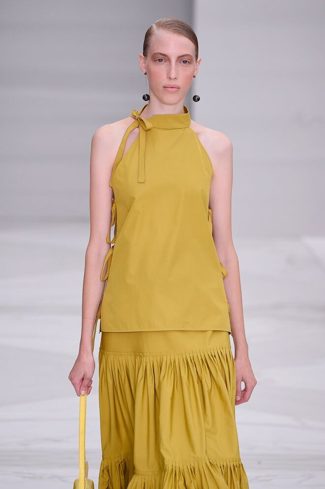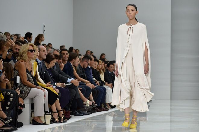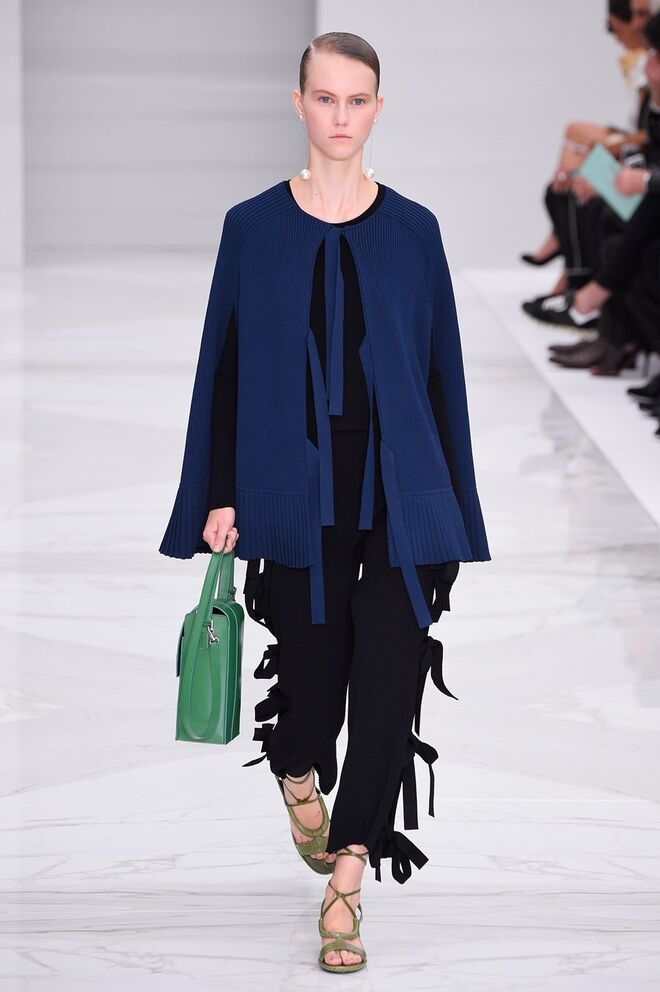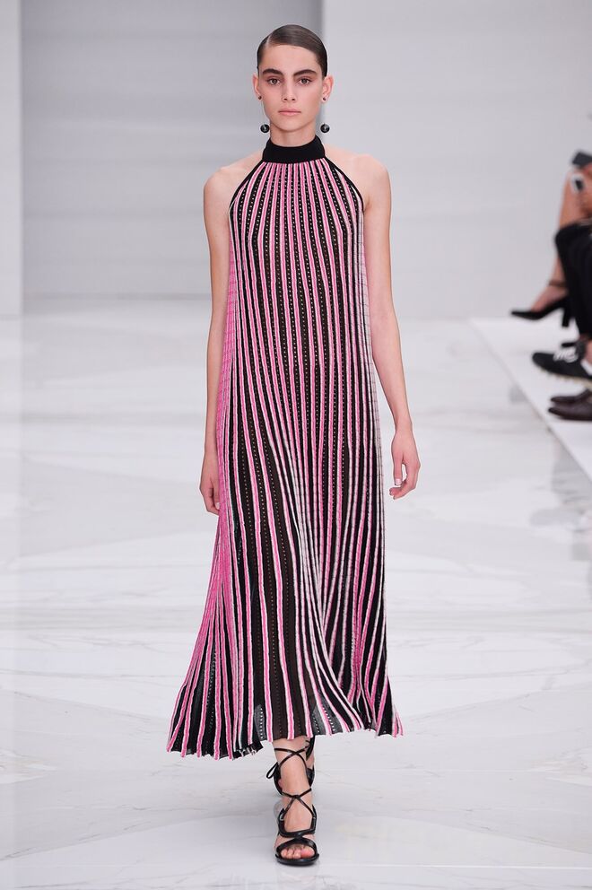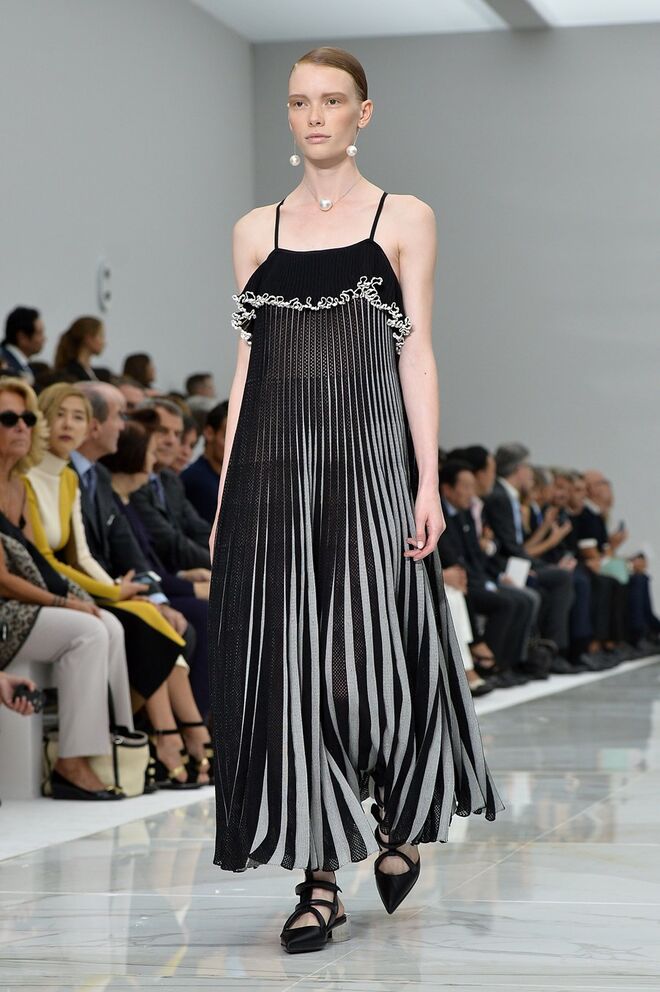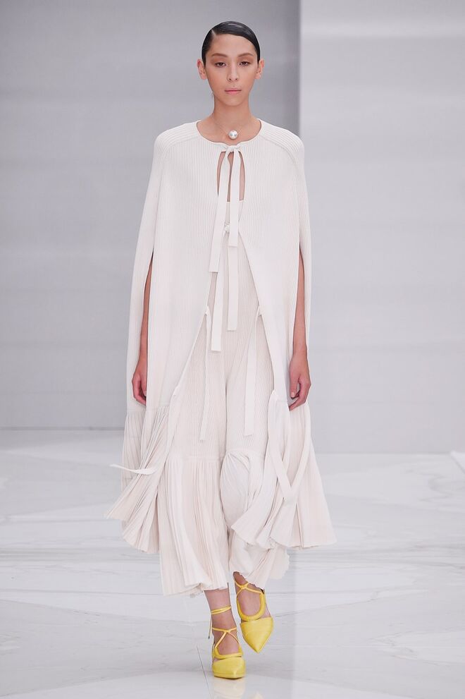 Feminina e romântica, a coleção de Ferragamo faz uso dos plissados e das riscas, introduzindo volume e atitude.