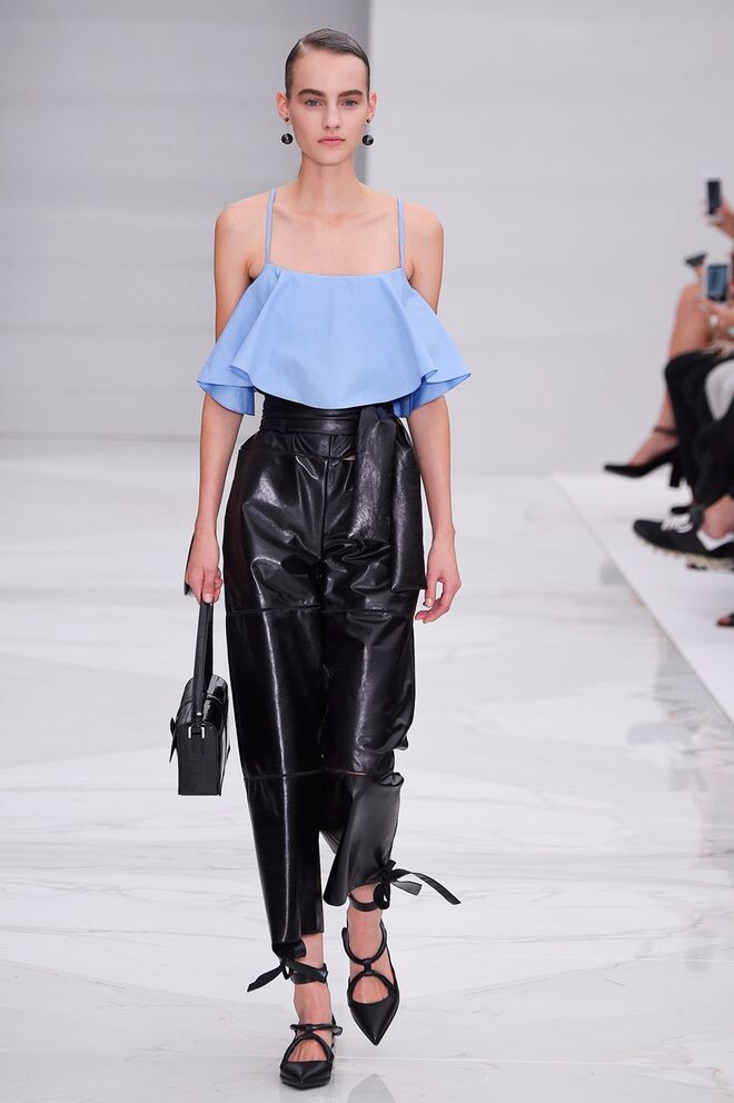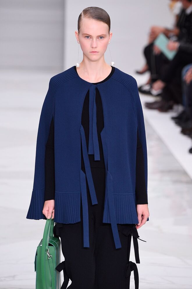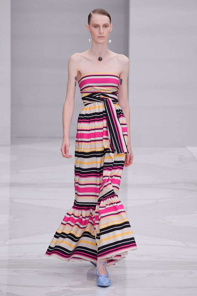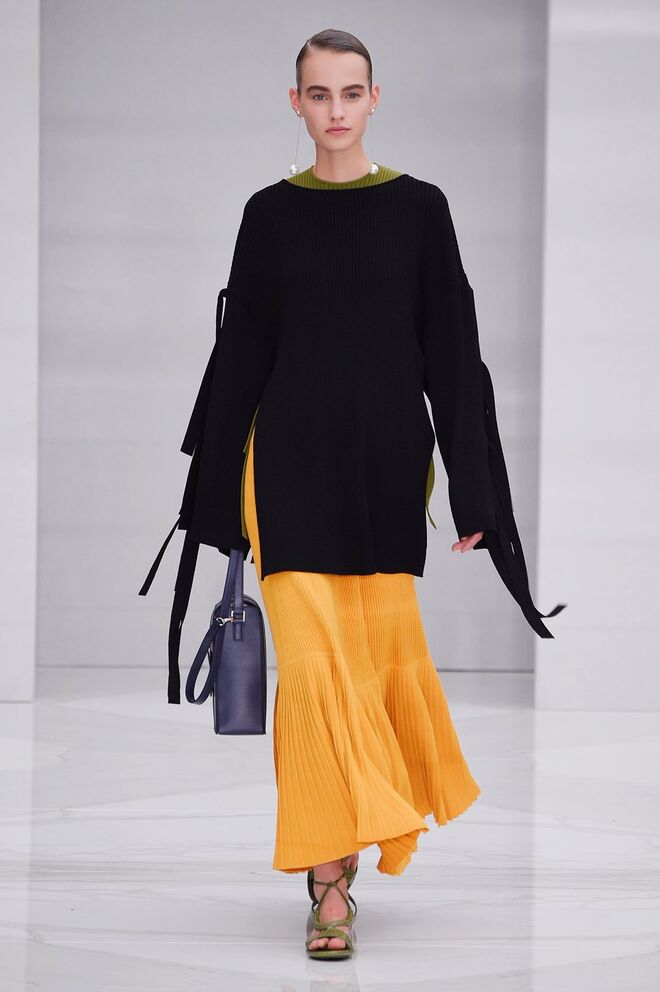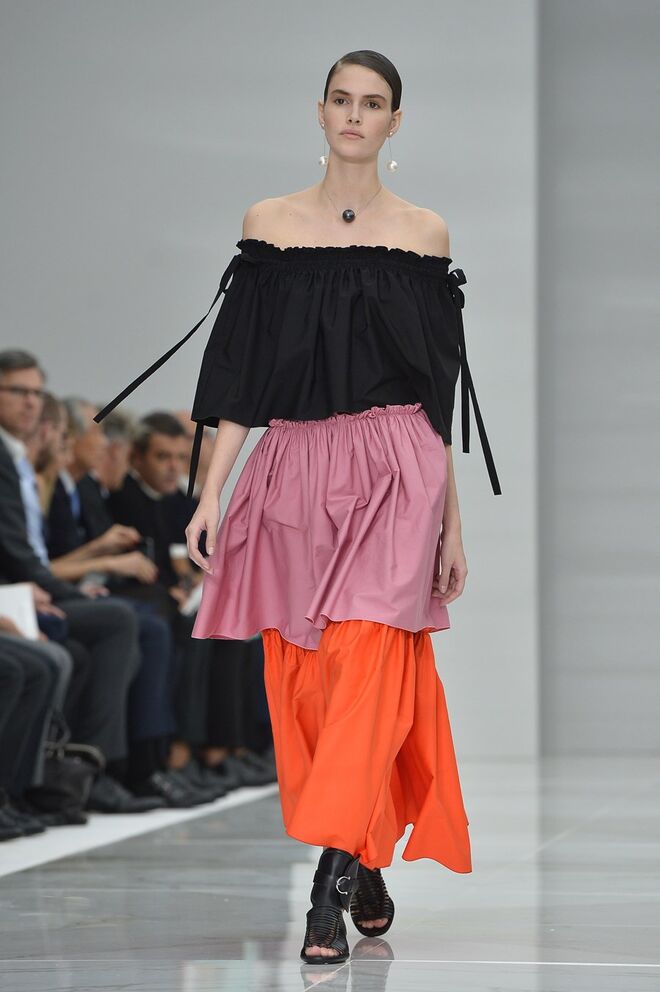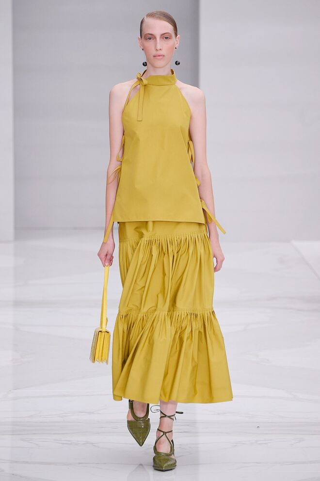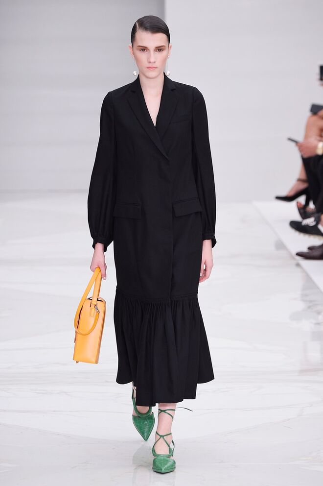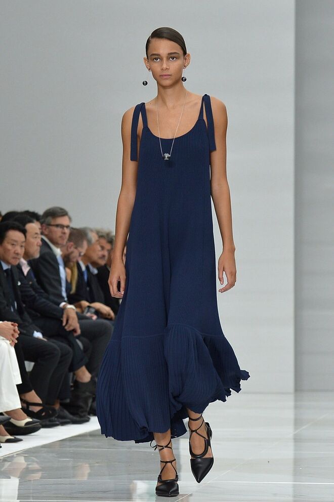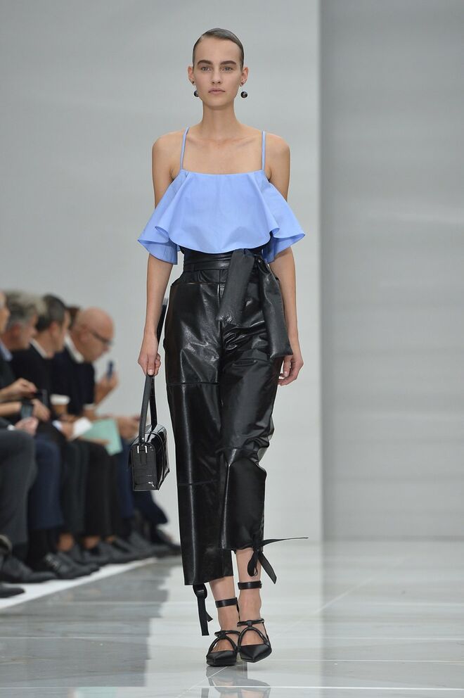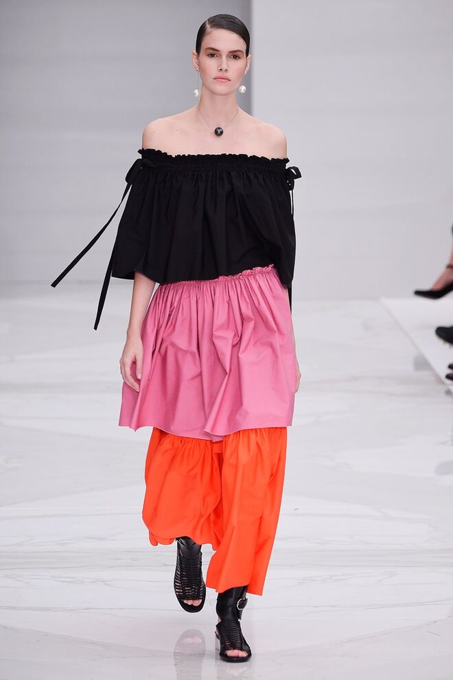 Feminina e romântica, a coleção de Ferragamo faz uso dos plissados e das riscas, introduzindo volume e atitude.