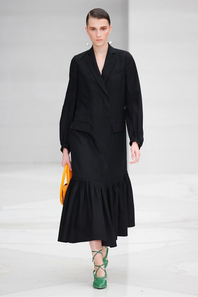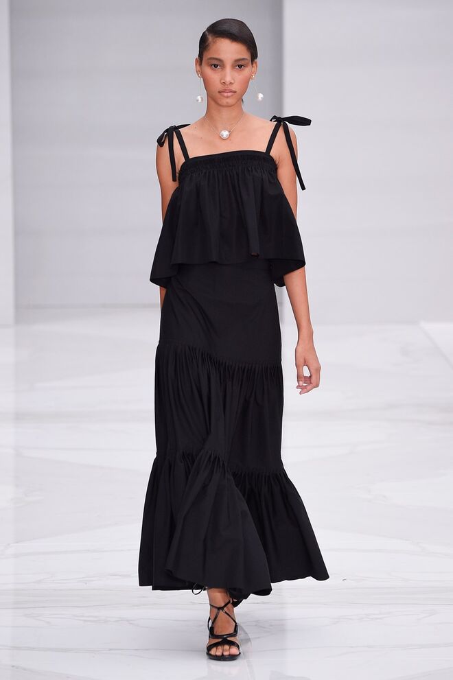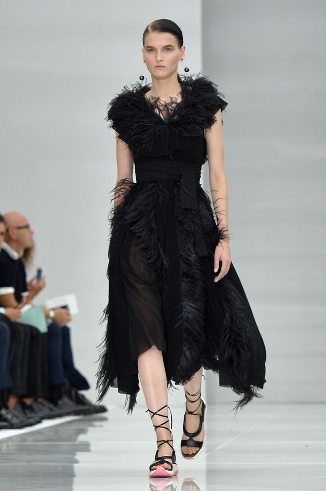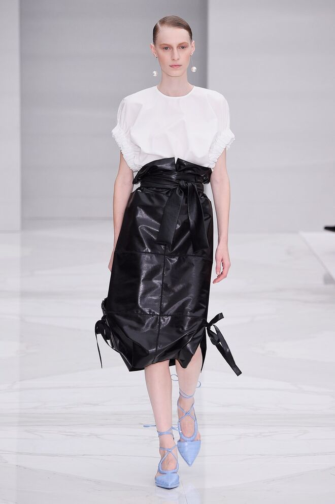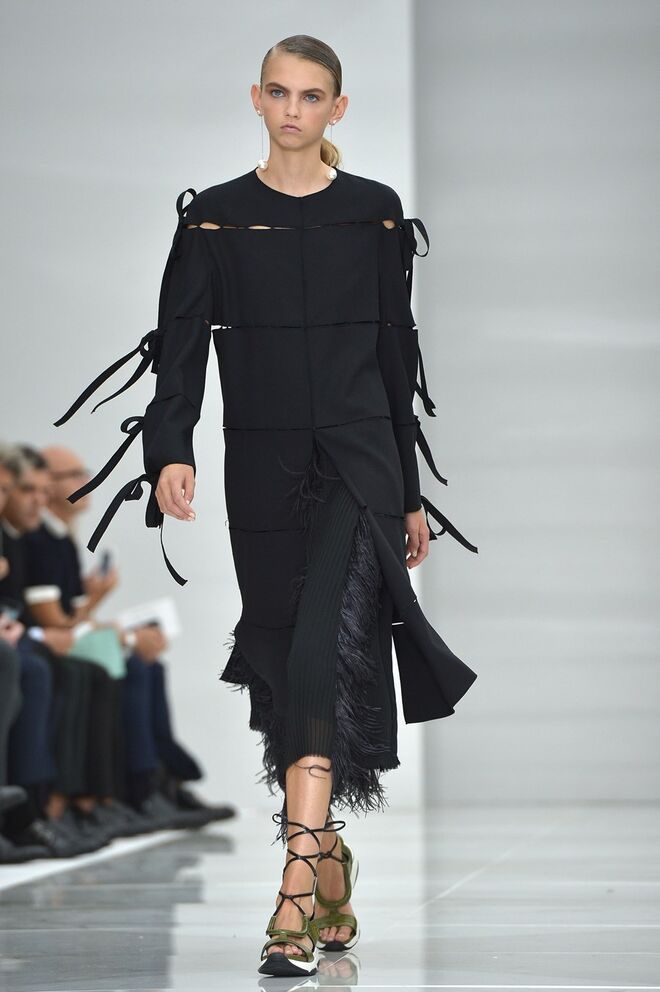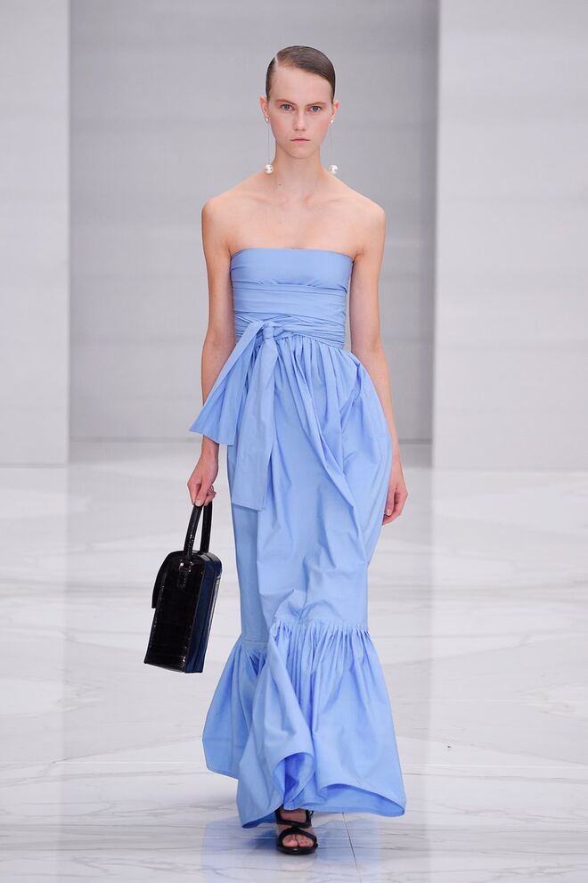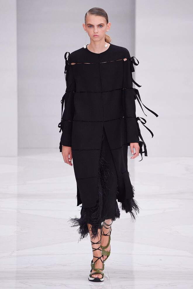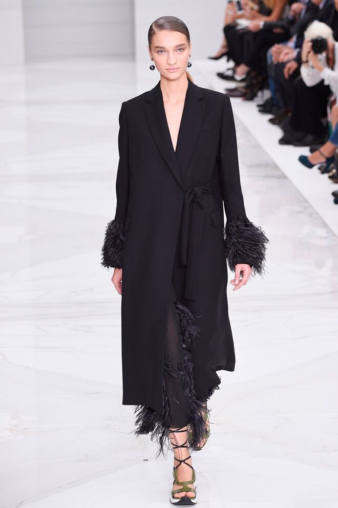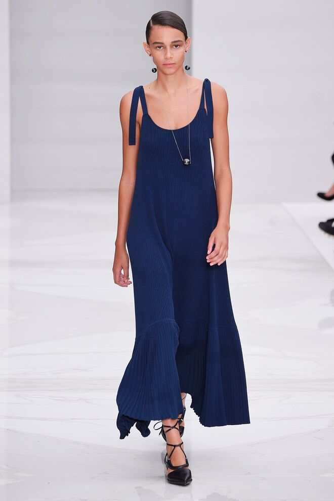 Feminina e romântica, a coleção de Ferragamo faz uso dos plissados e das riscas, introduzindo volume e atitude.
