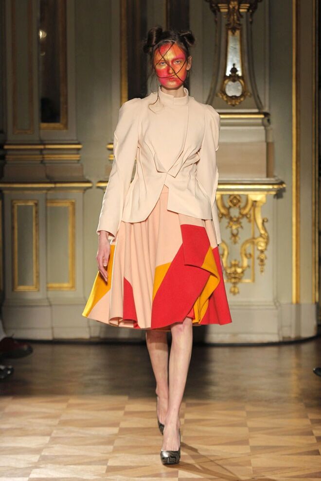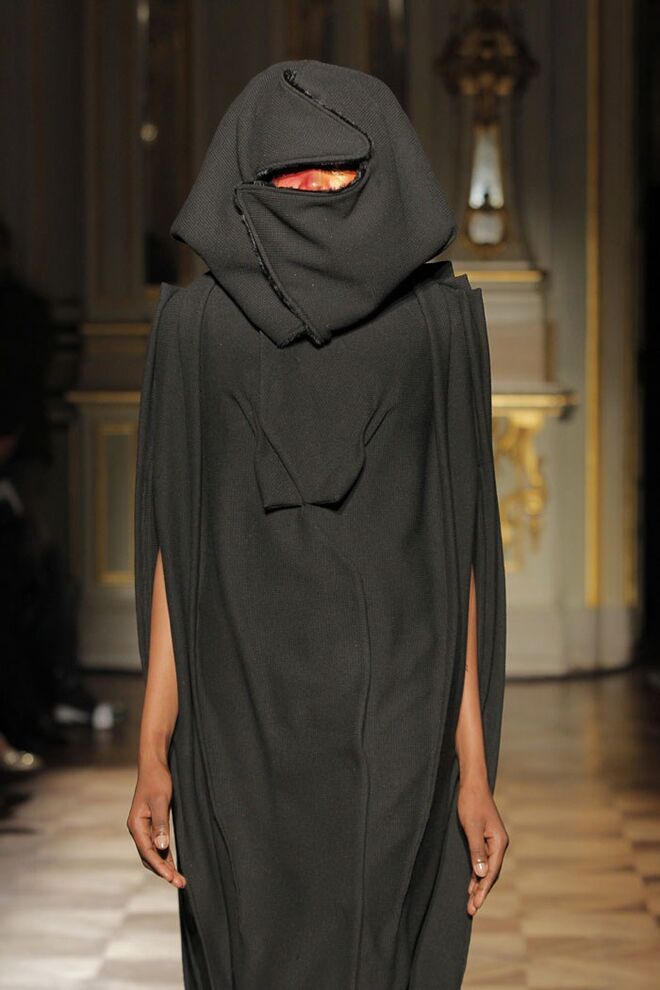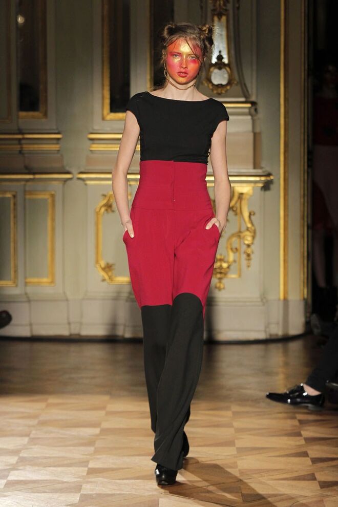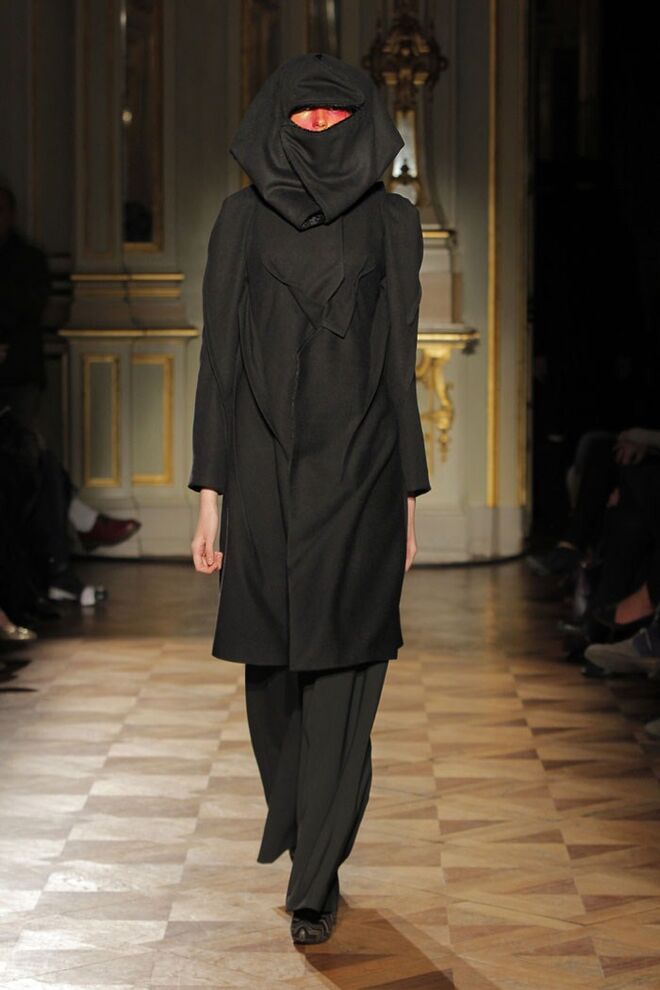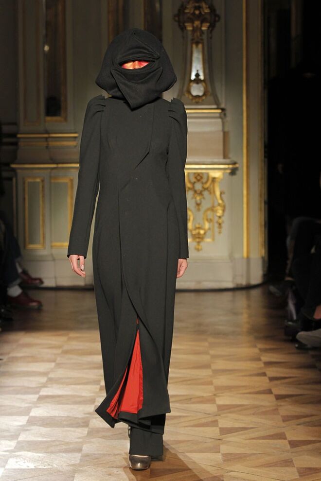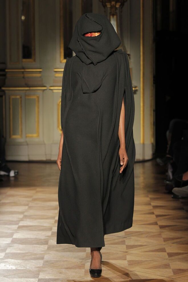 As silhuetas da coleção são recortes e contornos que deixam à mercê da imaginação, que nos enriquece a perceção com associações insólitas de ideias e sensações. Lãs, pelo, algodão, neoprene, fibra são alguns materiais preferidos nesta criação.