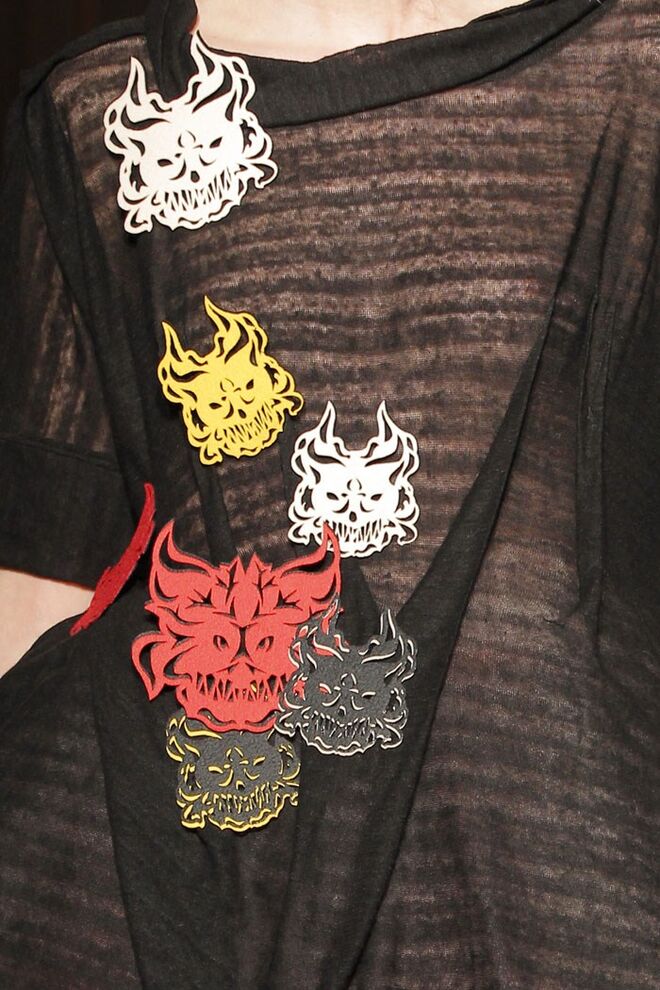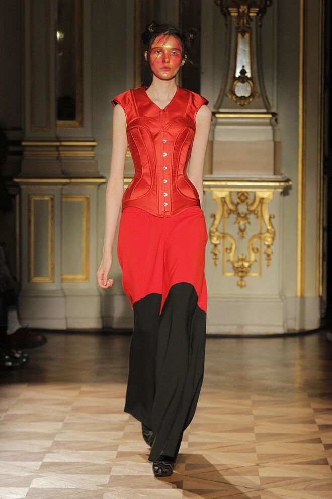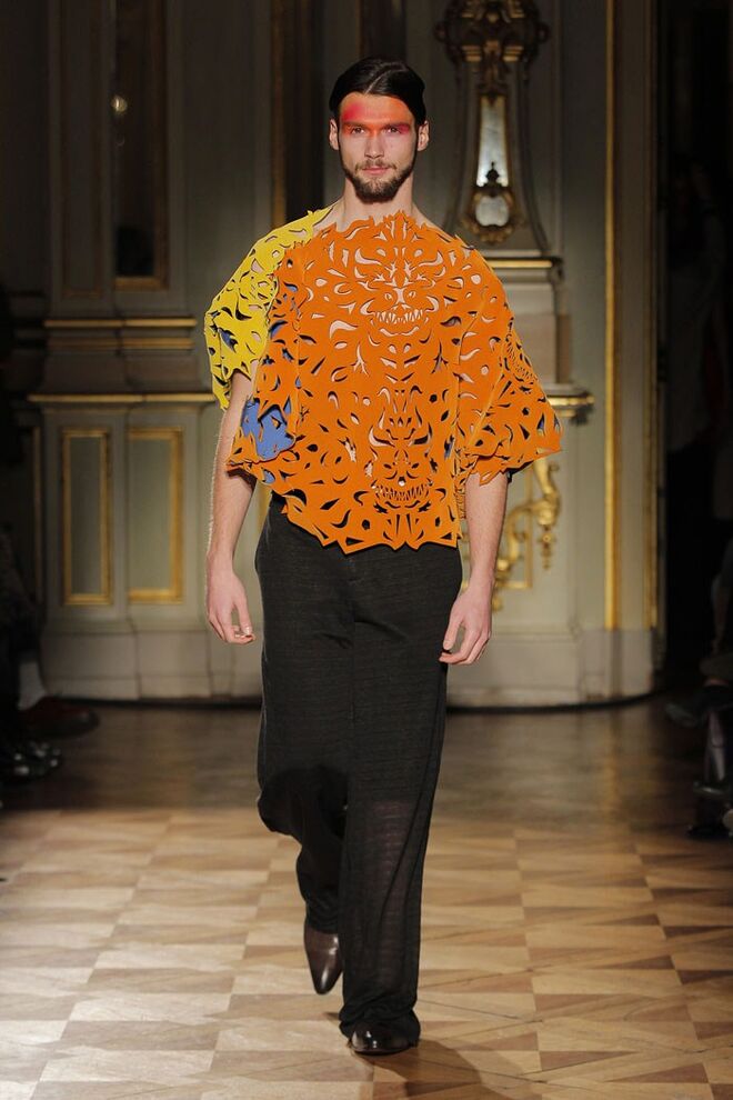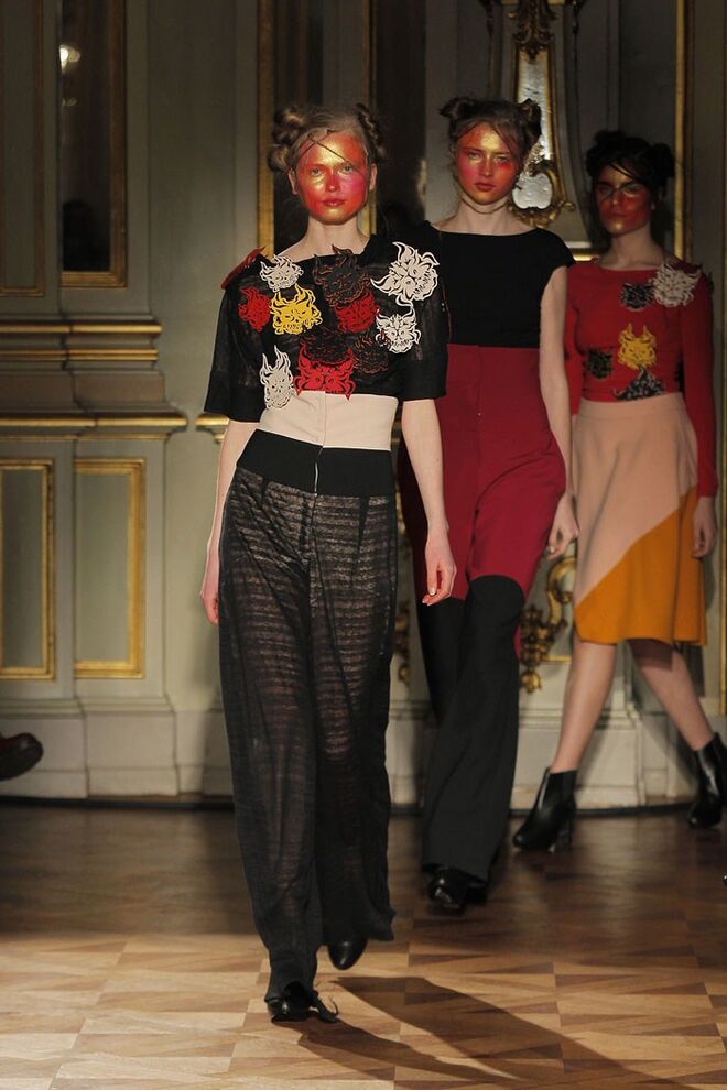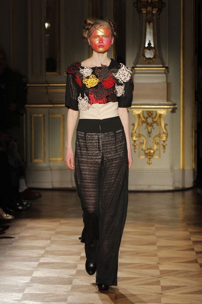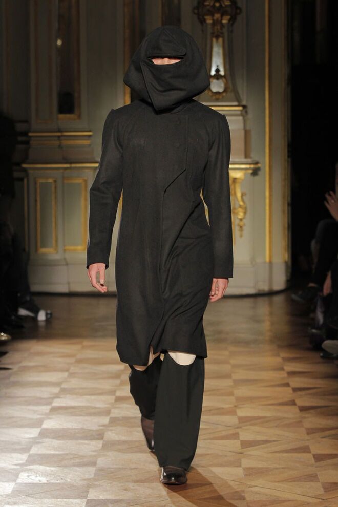 As silhuetas da coleção são recortes e contornos que deixam à mercê da imaginação, que nos enriquece a perceção com associações insólitas de ideias e sensações. Lãs, pelo, algodão, neoprene, fibra são alguns materiais preferidos nesta criação.