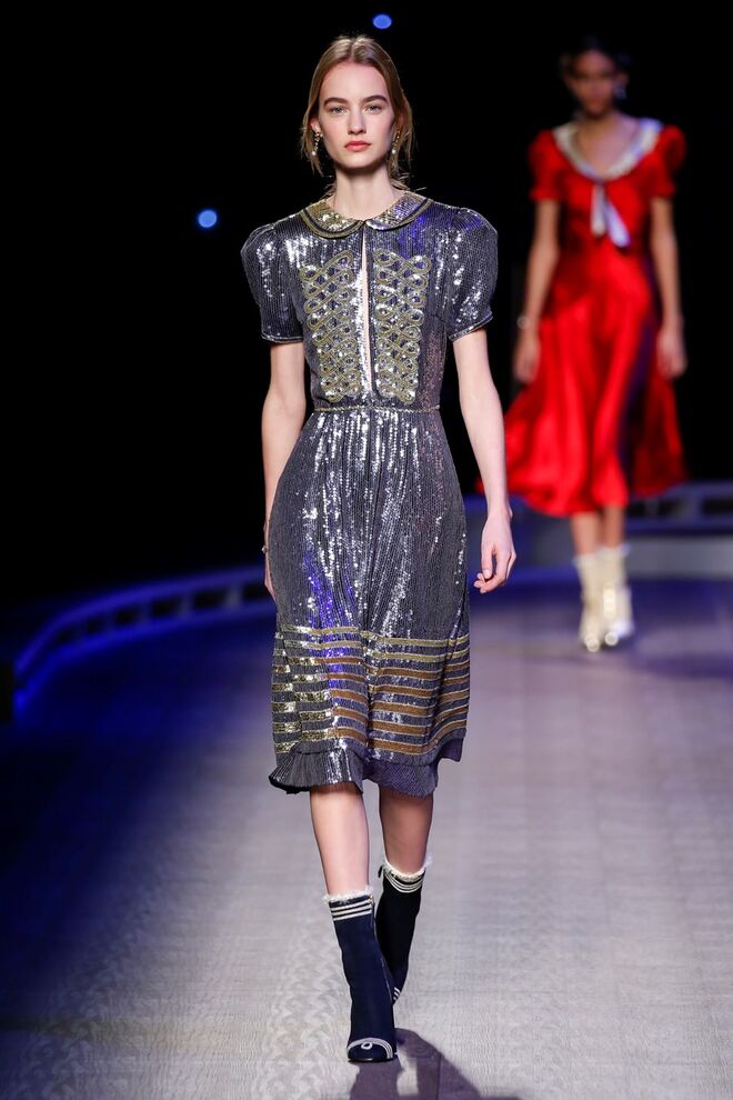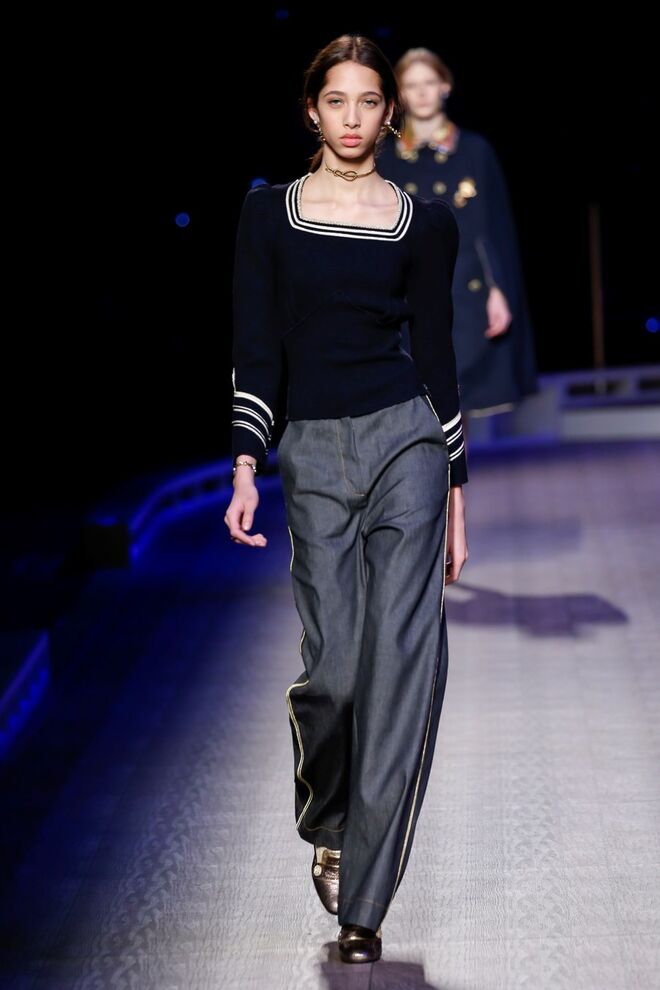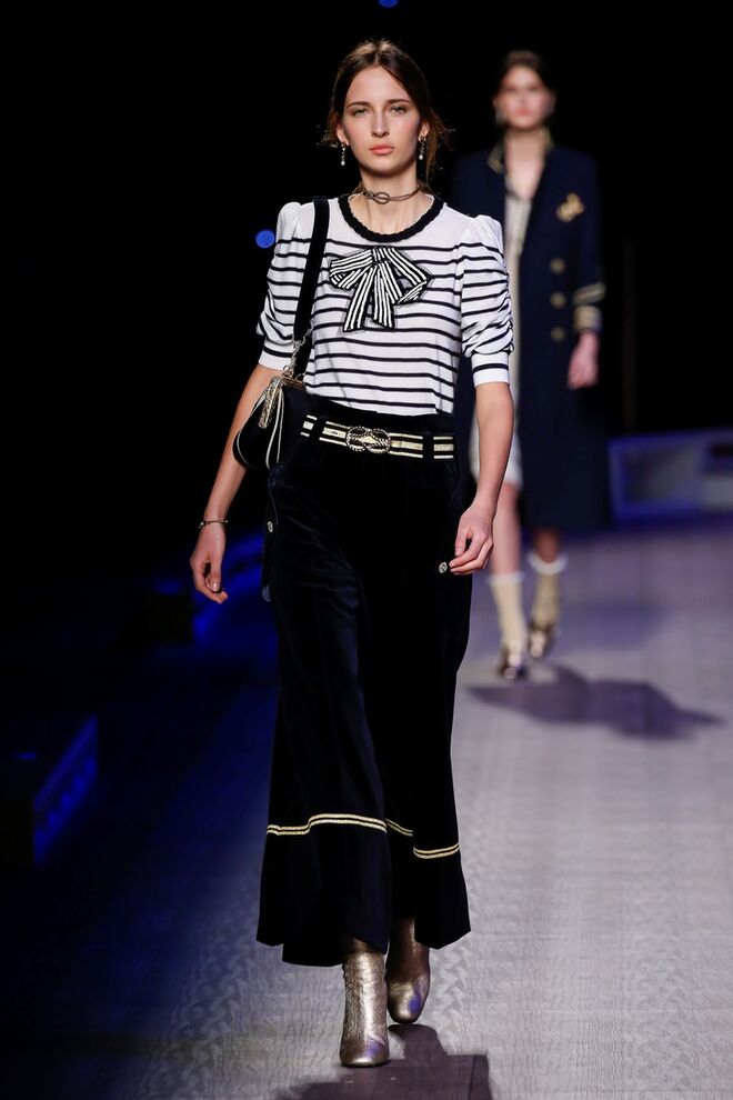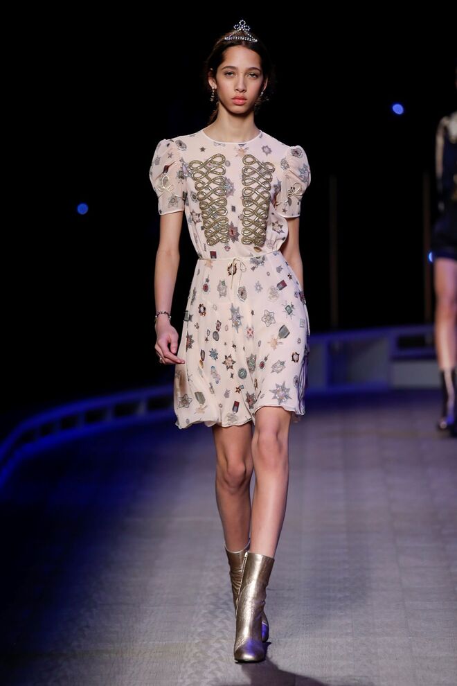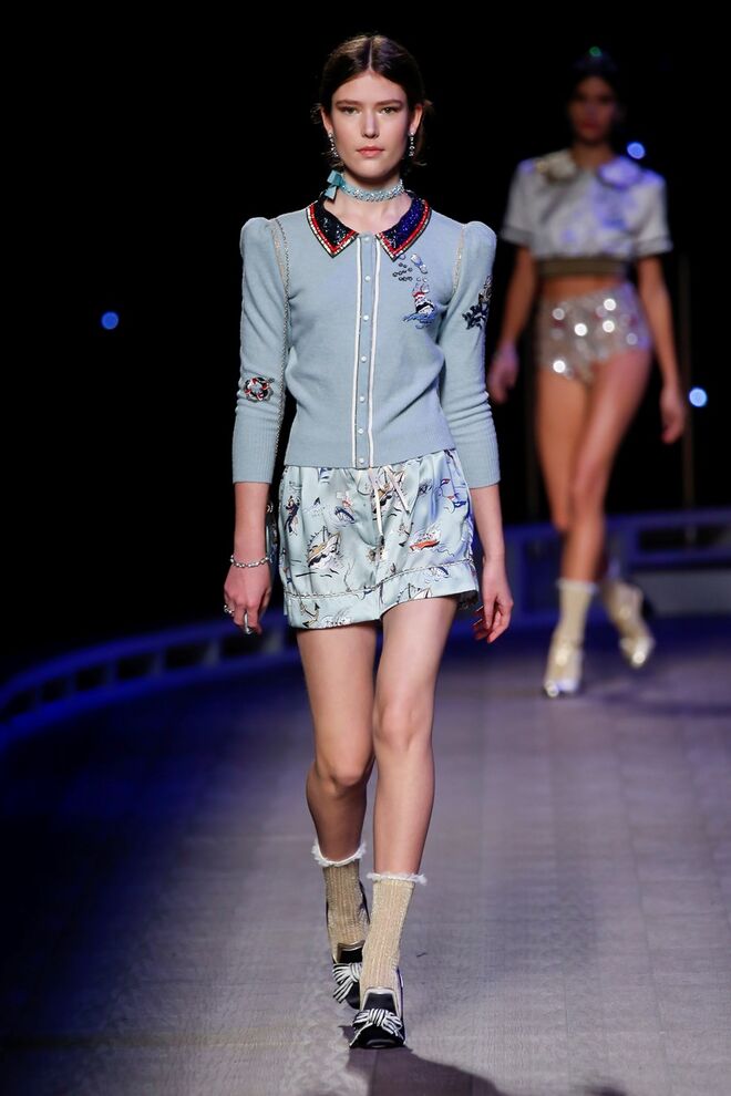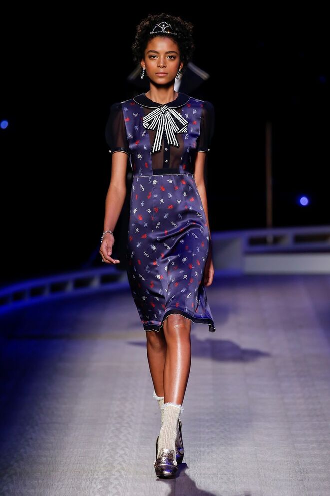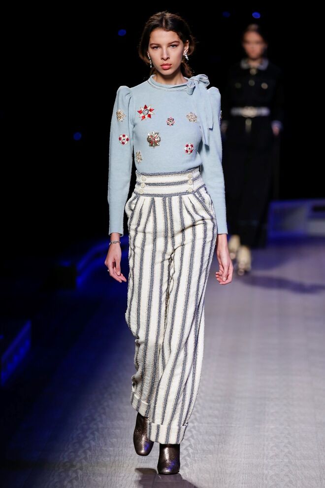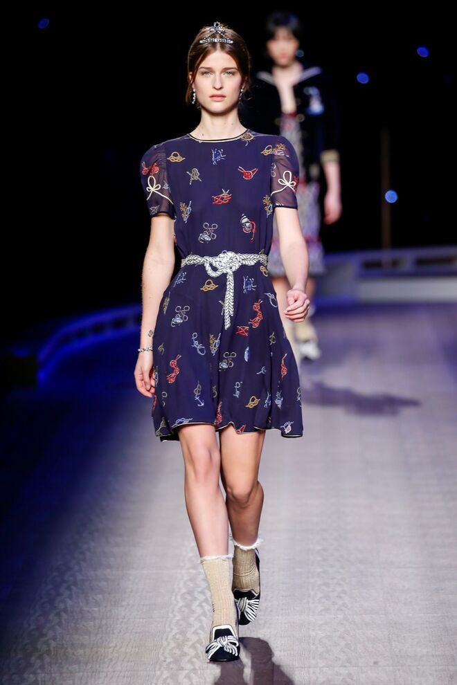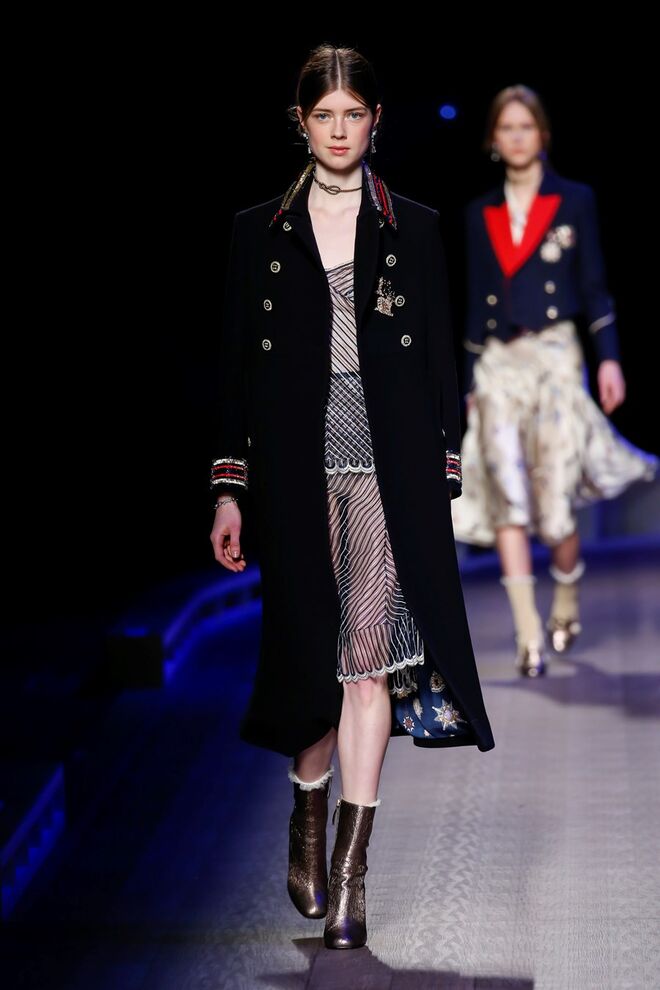 A coleção inspira-se na ideia das mulheres atuais, que encontram o vestido favorito da avó na década de 1940, regressando ao vintage; que vestem os casacos do namorado, e que vestem sem medo sapatos cintilantes antes de sair de casa. O espírito livre está no coração da coleção Outono 2016, derrubando todos os códigos do classicismo de uma forma peculiar. Casacos militares estão mergulhados na tradição com cortes ainda maiores em lã de inverno e adornados com medalhas douradas e metais preciosos. Suéteres em estilo pescador são suavizados com o toque de tule e calças marinheiro com pernas largas surgem em cortes de veludo, a vitrine perfeita para mocassins de salto com grandes laços de lantejoulas. A mistura continua com blusas clássicas cobertas com lantejoulas, pijamas atraentes e vestidos de seda leves com estampas inspiradas nas tatuagens de marinheiros.