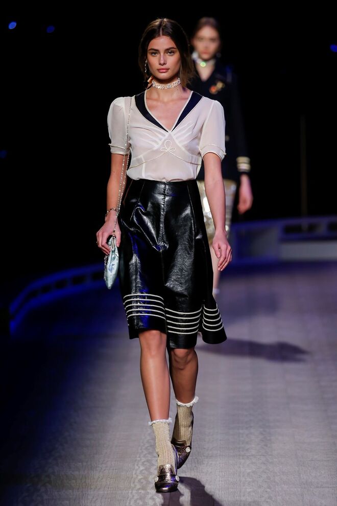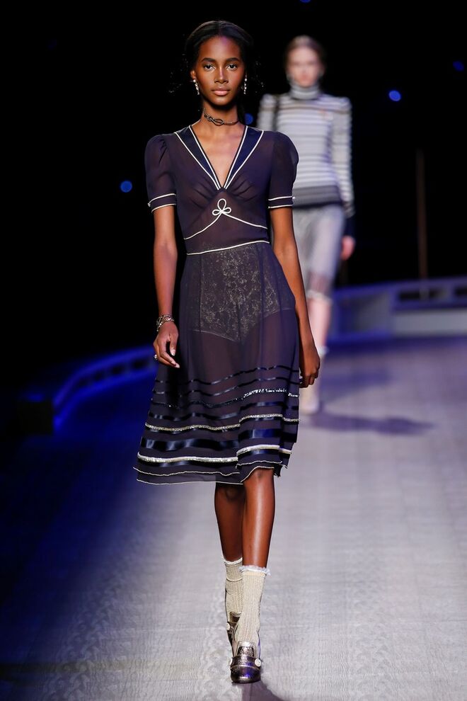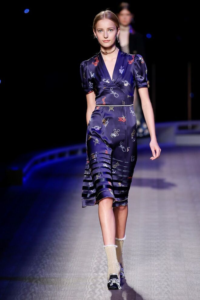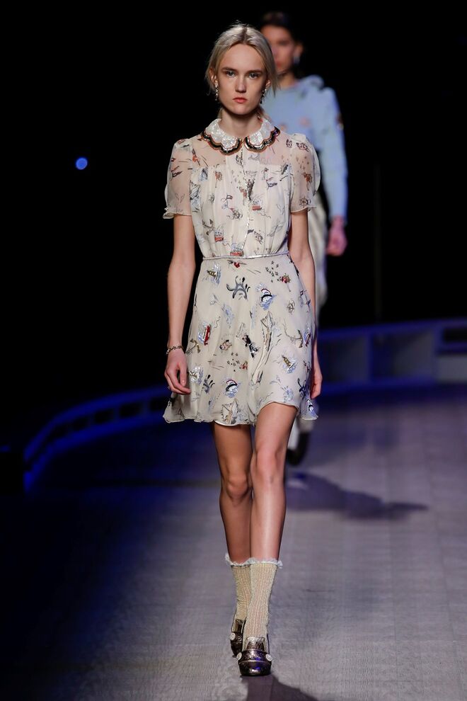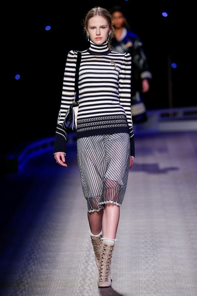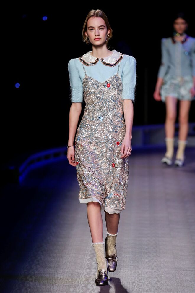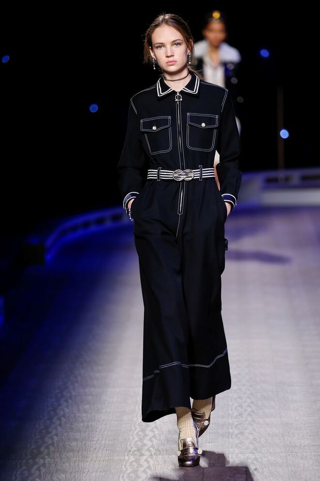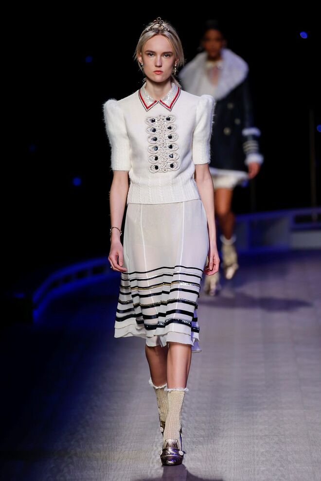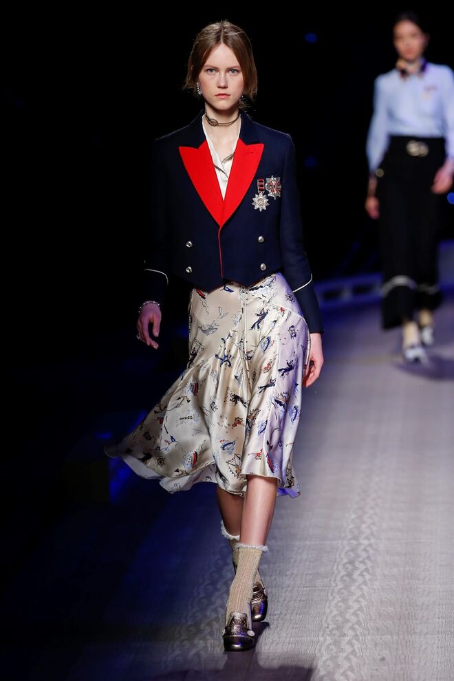 A coleção inspira-se na ideia das mulheres atuais, que encontram o vestido favorito da avó na década de 1940, regressando ao vintage; que vestem os casacos do namorado, e que vestem sem medo sapatos cintilantes antes de sair de casa. O espírito livre está no coração da coleção Outono 2016, derrubando todos os códigos do classicismo de uma forma peculiar. Casacos militares estão mergulhados na tradição com cortes ainda maiores em lã de inverno e adornados com medalhas douradas e metais preciosos. Suéteres em estilo pescador são suavizados com o toque de tule e calças marinheiro com pernas largas surgem em cortes de veludo, a vitrine perfeita para mocassins de salto com grandes laços de lantejoulas. A mistura continua com blusas clássicas cobertas com lantejoulas, pijamas atraentes e vestidos de seda leves com estampas inspiradas nas tatuagens de marinheiros.