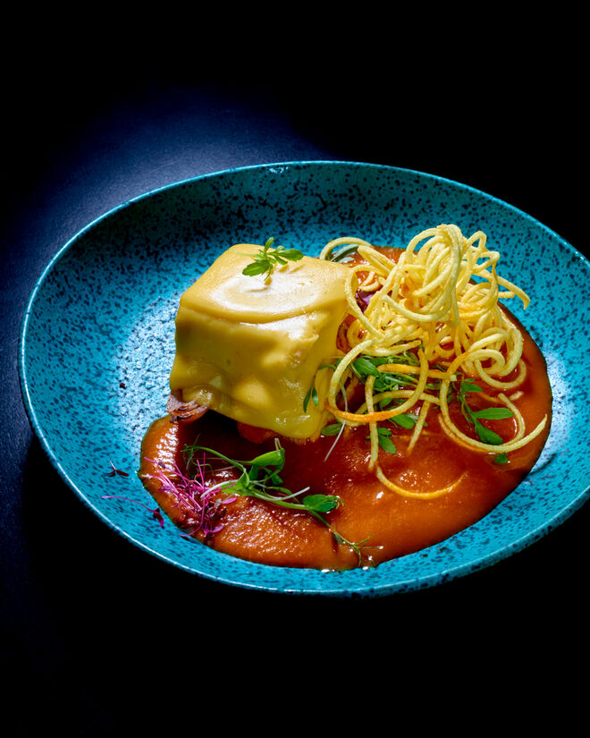 Hoje, estamos a viver um desses momentos de reinvenção, com a chegada recente dos chefs portugueses Henrique Mouro e Pedro Rezende Pereira à cozinha. Juntos, mostram como a química pode acrescentar inovação à nova carta do restaurante, deixando intactos alguns clássicos de sempre. Entre as novidades, destacamos a entrada de caldo verde com couve frita, broa de milho e carapau fumado (€8,50), a de aspic de ostras e sopa fria de pepino e maçã (€13,50) ou ainda a de figos assados com queijo de Azeitão e nozes (€13,50). Entre os pratos sobressaem o de lula e tamboril assados com puré de batata e azeitonas (€24), o pregado no forno com paio alentejano e xerém de amêijoa (€24), passando pelo borrego alentejano e crosta de biscoito de especiarias (€25) ou pelo delicioso leitão assado com laranja, esparregado e batata a murro (€22,50).