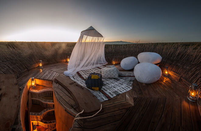 Nos últimos anos, o universo da hotelaria tem-nos surpreendido das mais diferentes formas, sendo capaz de proporcionar as experiências mais exclusivas. A verdade é que, muitas vezes, as mais inesquecíveis não são necessariamente as mais ostensivas. Como quase sempre, basta conjugar a simplicidade com uma indispensável dose de elegância para encontrar uma espécie de receita mágica para dias perfeitos. É assim neste Nay Palad Bird Nest. Instalado no recinto do Segera Retreat, um resort construído nas planícies de Laikipia, um dos 47 condados do Quénia, este é, porventura, um dos mais pequenos hotéis do mundo e, simultaneamente, um dos maiores "ninhos" a céu aberto. A ideia é que depois de um dia de safari os hóspedes se instalem antes do pôr do sol. O "ninho" é então iluminado com lanternas, criando-se a atmosfera ideal para uma refeição delicada, na qual não faltará a efervescência do melhor champanhe. Depois é tempo de optar pelas camas instaladas a céu aberto ou dentro do abrigo, tendo a certeza de que ambas serão feitas com os melhores linhos, a garantia de uma noite de conforto e a tranquilidade em plena imersão com a Natureza. O despertar faz-se ao ritmo da selva e sem outra distração que não a presença de vizinhos, tais como os elefantes ou as girafas que se passeiam à beira-rio. Desenhado pelo arquiteto Daniel Pouzet, o autor do Nay Palad Hideaway, nas Filipinas, o Bird Nest foi concebido para um casal, mas acomoda facilmente uma família com quatro elementos. Um refúgio paradisíaco e belissimamente encaixado entre dois ecossistemas marinhos.