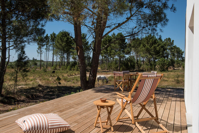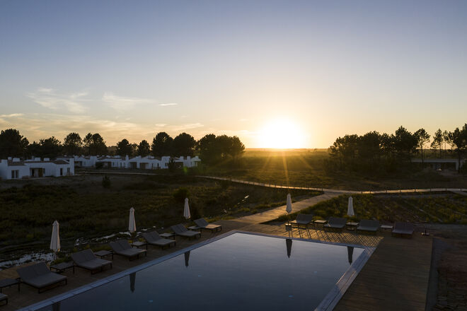 "Não gostamos nada daqueles hotéis que excluem as crianças, mas a verdade é que sabe muito bem desfrutar do sossego de um sítio reservado a adultos…" O desabafo nada envergonhado foi feito, em jeito de desculpa, pelo casal que sorrateiramente espreitava pela porta do meu quarto. Havia uma razão para a aparente invasão: nesta que foi a minha primeira visita ao Craveiral Farmhouse fiquei alojada no Cravo – o mais recente de quatro núcleos de apartamentos que, naquele fim-de-semana, ainda não estava oficialmente aberto ao público. Coube-me a honra de testar o conforto de um dos novos estúdios equipados com televisão, wi-fi e kitchenette e bem decorados com peças de mobiliário contemporâneo (de marcas como a DAM ou a WeWood) para optar por aproveitar o embalo do silêncio alentejano e prolongar as manhãs numa cama branca e fofa (coisa que, sendo eu a mãe cansada de uma bebé de um ano, acreditem, muito agradeci). Estava já a fazer a mala para regressar à cidade quando fui interrompida pelo sussurrar do tal casal. Portugueses, simpáticos, trinta e muitos anos, pais de três filhos em fim de semana romântico. Andavam a explorar a propriedade de nove hectares e foram atraídos pela piscina silenciosa, em redor da qual foram construídos estes novos apartamentos, criados precisamente a pensar em pessoas como eles (e como eu) que adoram crianças mas que, às vezes, só precisam de silêncio, um livro e uma piscina. Este turismo de natureza dá-lhes tudo isso e mais um pouco.